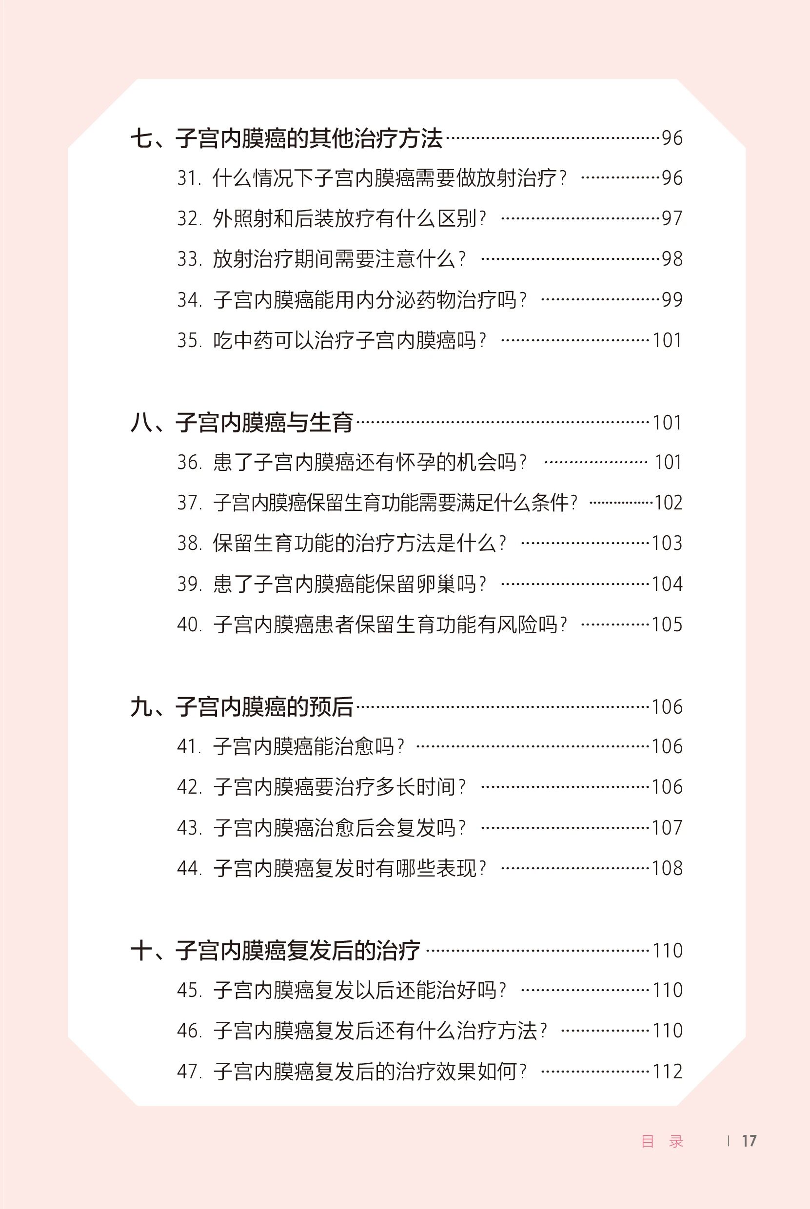 本书为畅销书《卵巢癌百问百答》姊妹篇。对威胁女性健康的子宫体肿瘤(包括子宫肌瘤、子宫内膜癌、子宫肉瘤和妊娠滋养细胞肿瘤)常见的疑问,提供系统全面、科学专业的就医答疑指导。