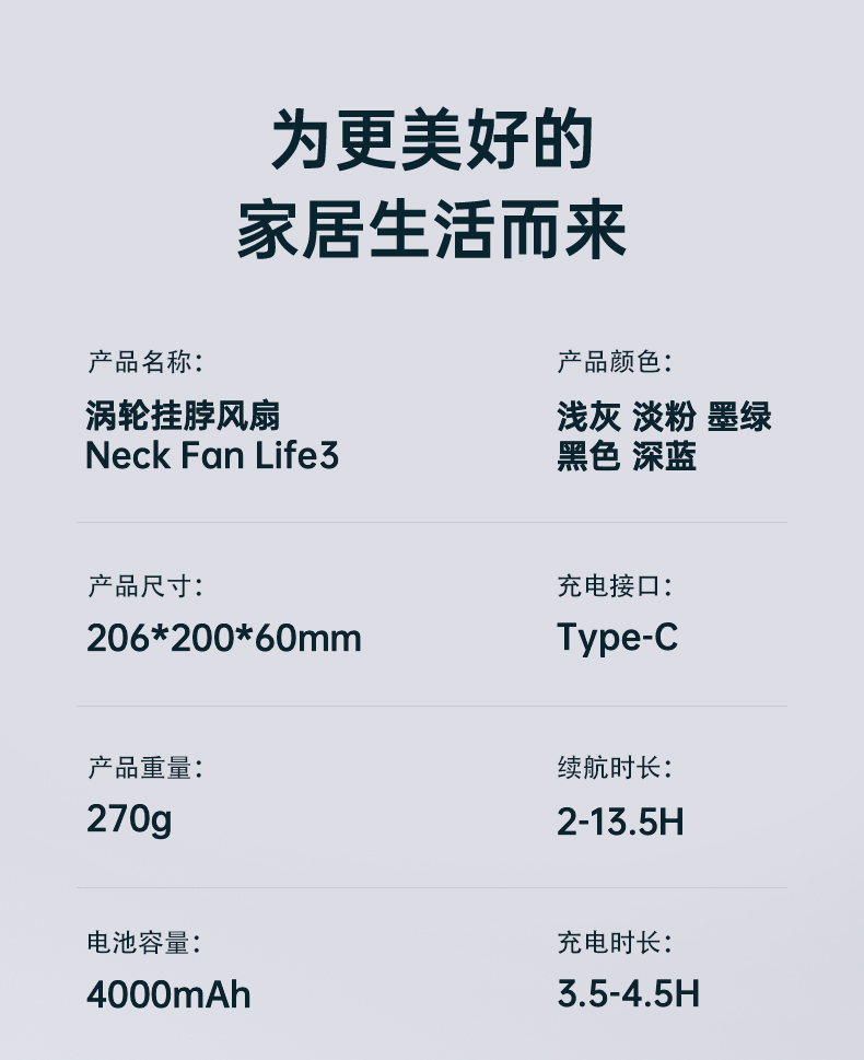 几素涡轮无叶挂脖风扇Neck Fan Life3(FA14第二代)/Neck Fan Life4 便携式迷你懒人随身学生USB轻音可充电随声小型夏天电扇降温户外制冷