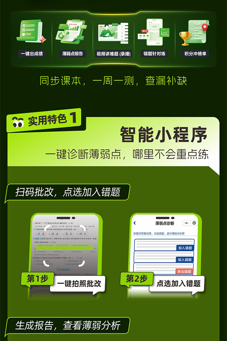 2、智能诊断小程序(展示薄弱点报告手机界面)