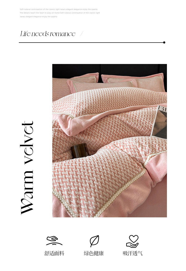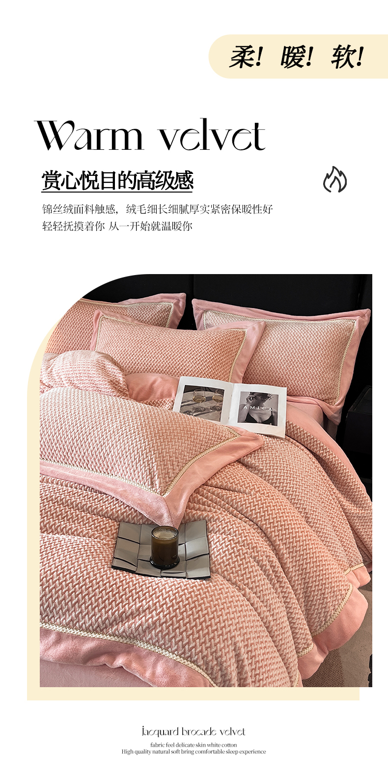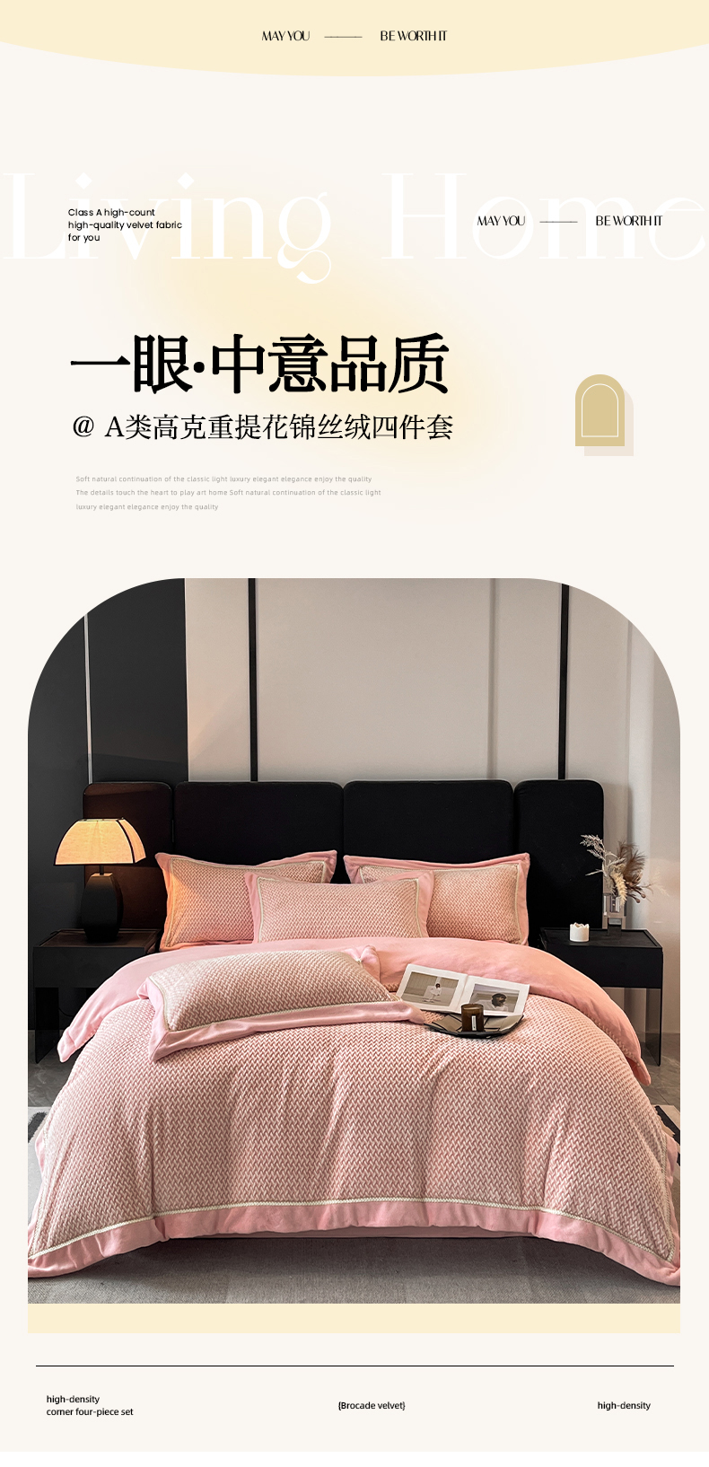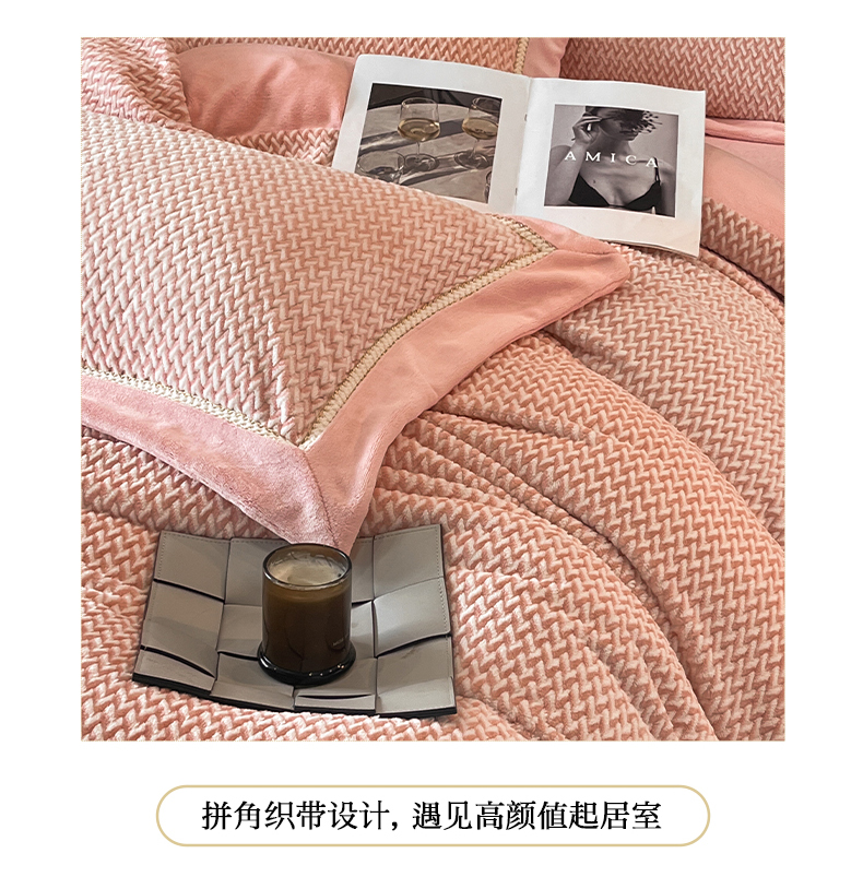【清仓189元起】【一套约9斤重】轻奢高档230g提花锦丝绒拼角织带四件套【不支持退换货】