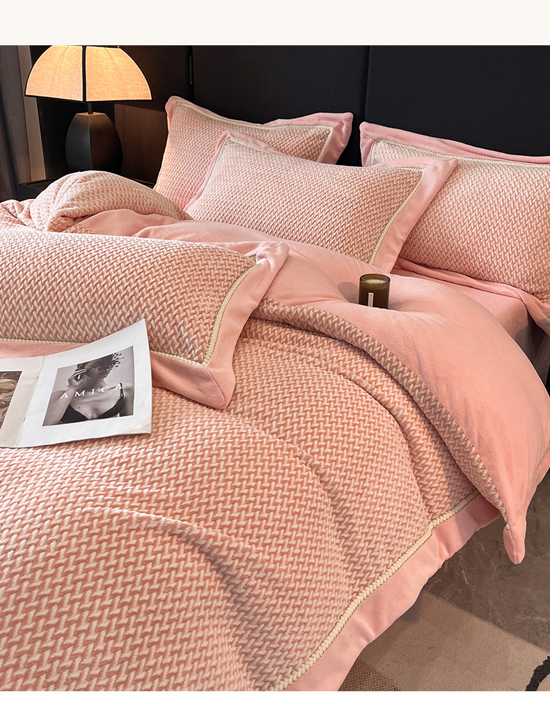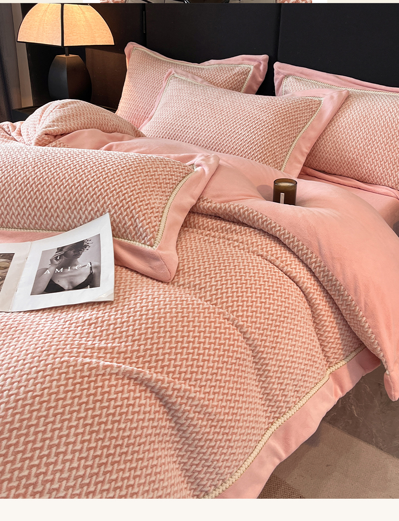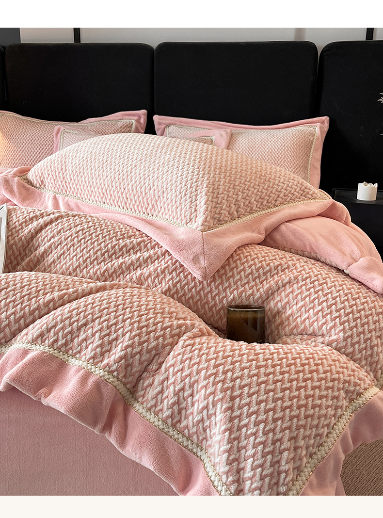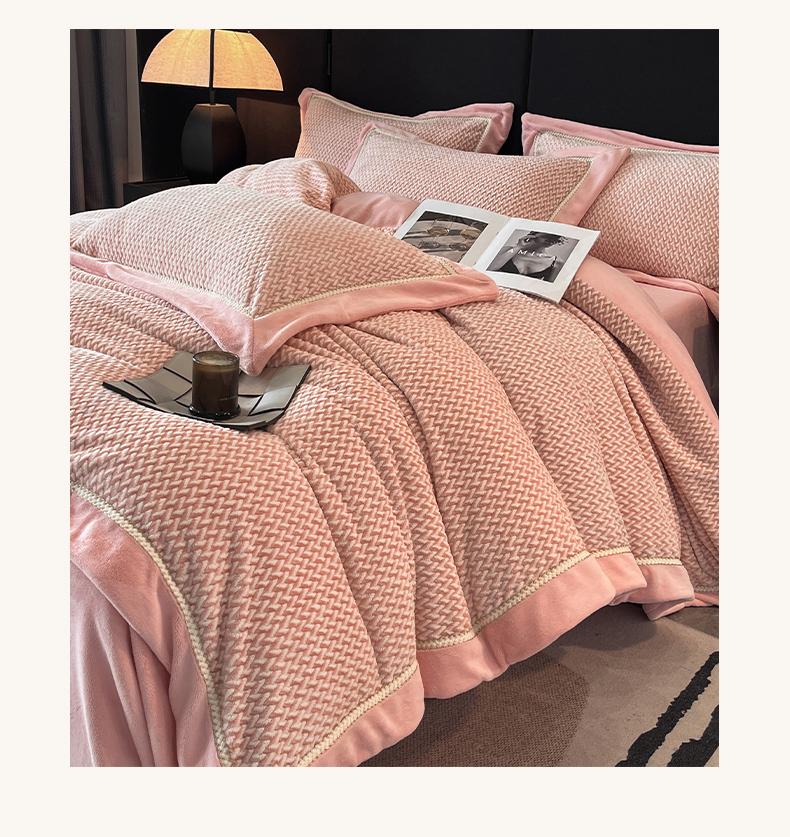 【清仓189元起】【一套约9斤重】轻奢高档230g提花锦丝绒拼角织带四件套【不支持退换货】