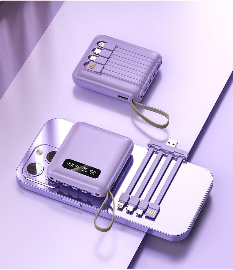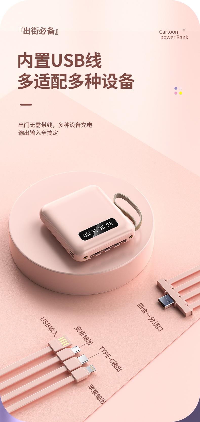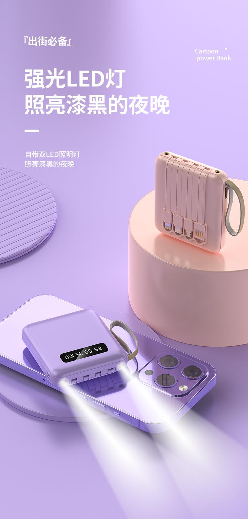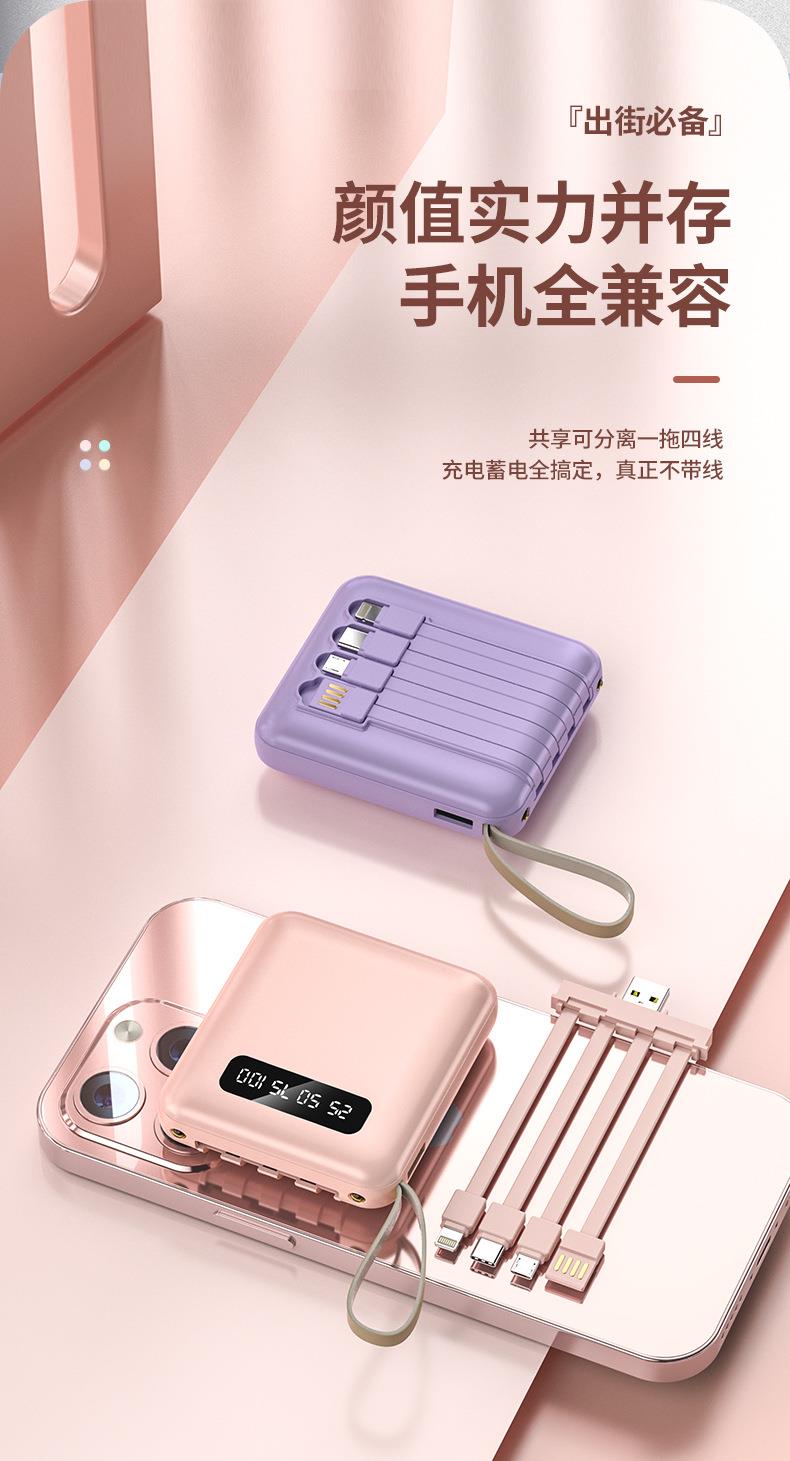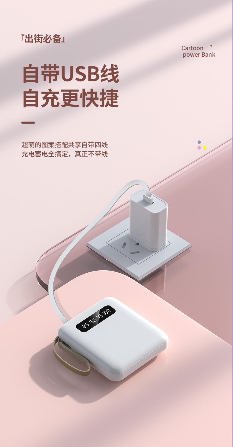 新款便携自带线充电宝 20000mAh数显镜面移动电源带挂绳