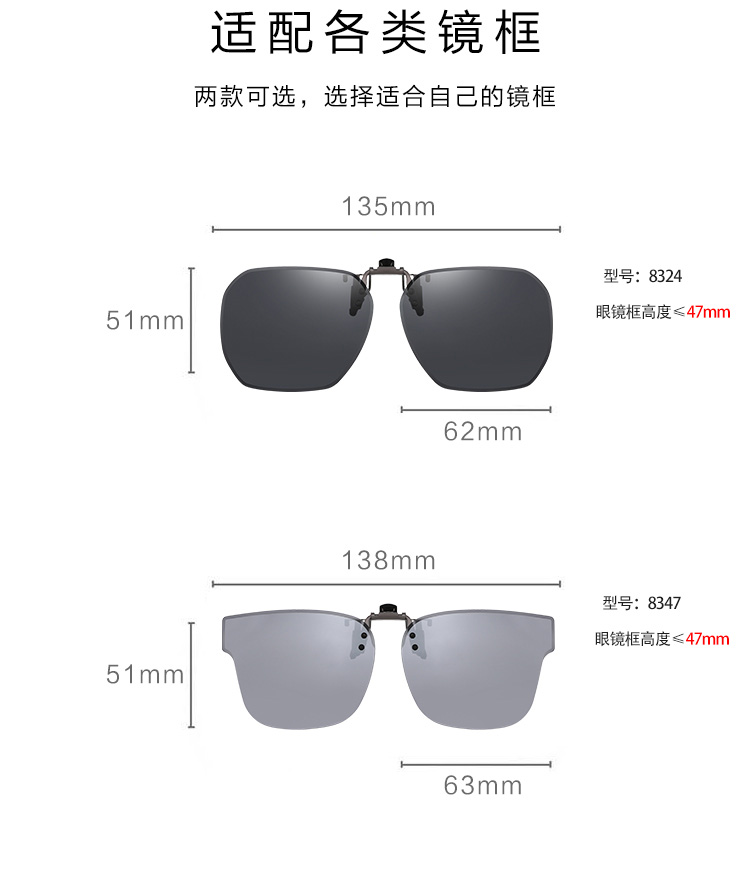 ZERSER姿森偏光墨镜夹片男女新款钓鱼驾驶防紫外线夹片式太阳眼镜8324/8347