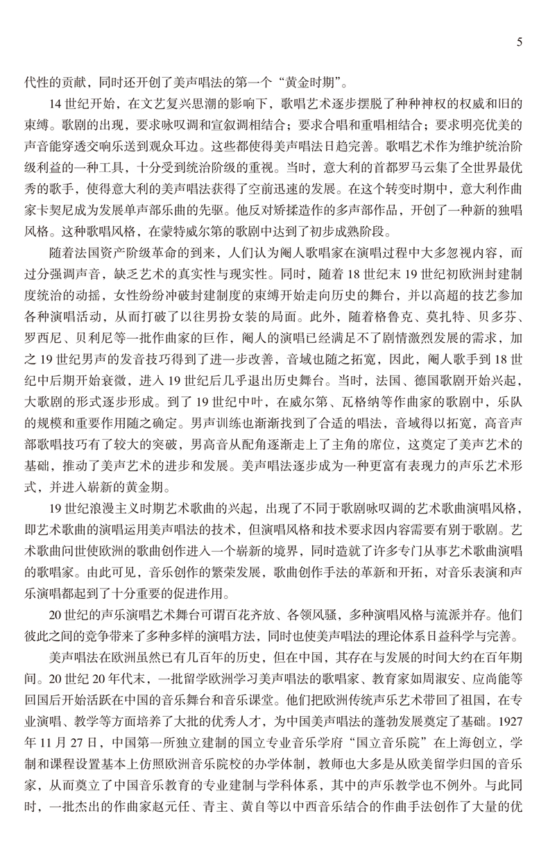 本卷教材以遵循声乐教育规律为宗旨,以学生身心发展为依据,以培养高素质、高技能的实用性音乐表演人才为目的,在编写过程中突出专业性和实用性,强调理论与实践相结合,尤其重视实践教学,尽量做到深入浅出。此次五卷系列教材的出版,能很好地提高艺术高职院校学生的实际应用能力,增强其就业竞争力及岗位适应能力,并弥补了全国艺术职业院校声乐专业暂缺规范、系统教材的遗憾,对实现高等艺术职业教育的培养目标具有积极地促进作用。