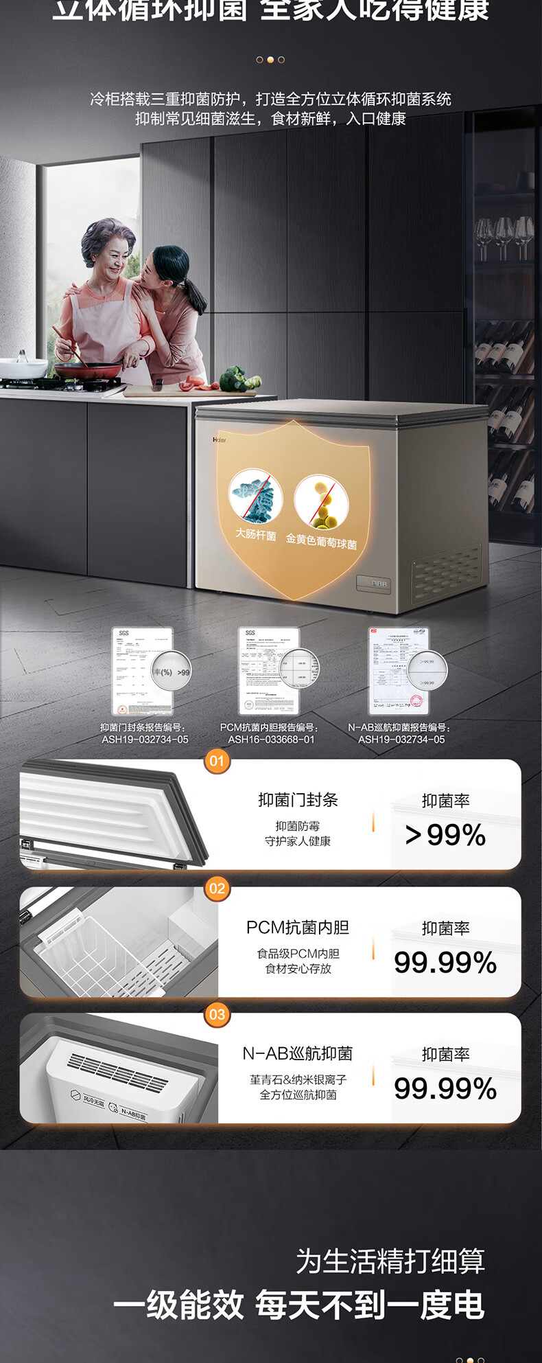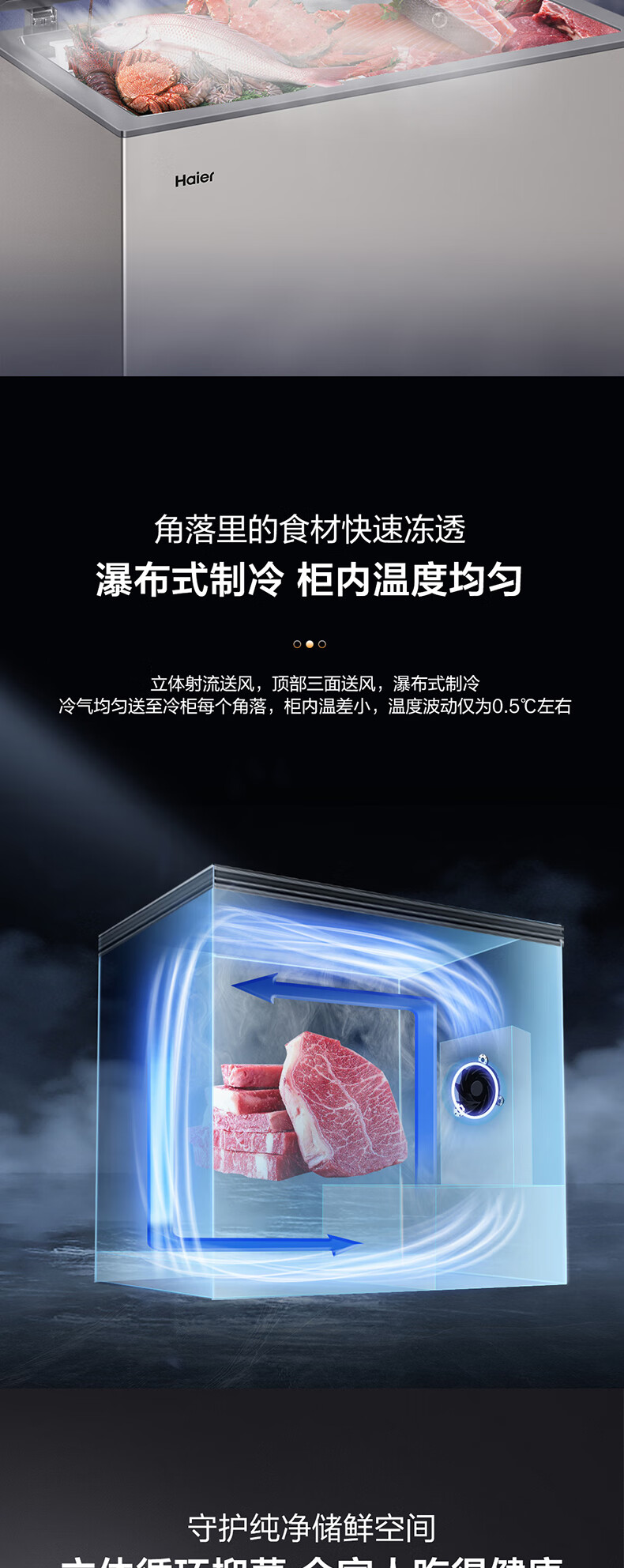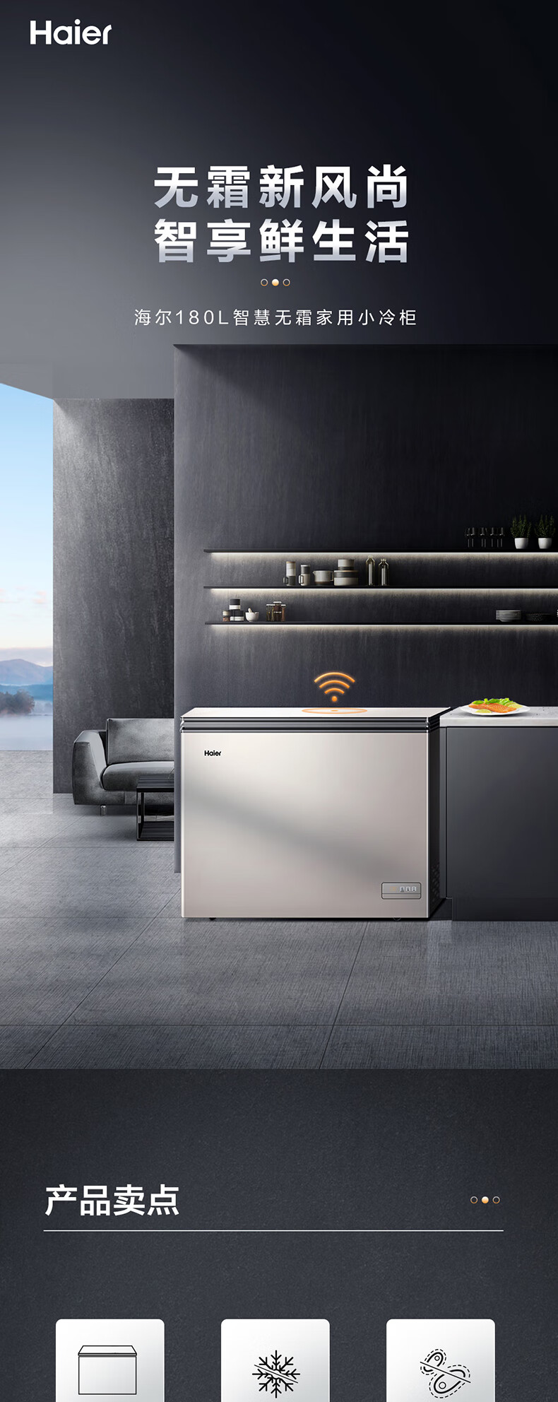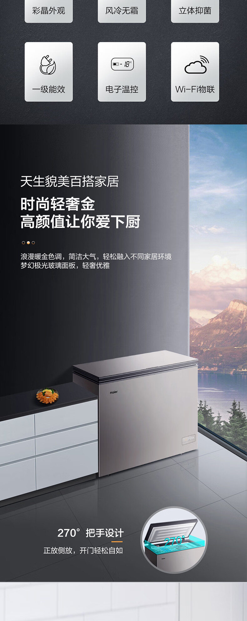 海尔(Haier)180升-38℃彩晶风冷商用家用冰柜 冷藏冷冻小冰柜家用小型冷柜