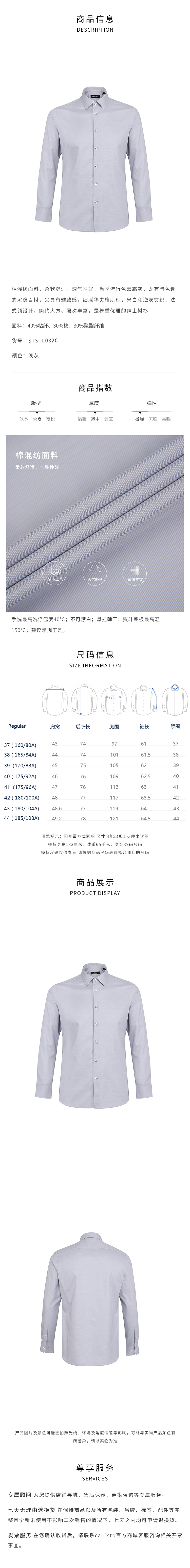 callisto浅灰粘纤混纺长袖衬衫 STSTL032C