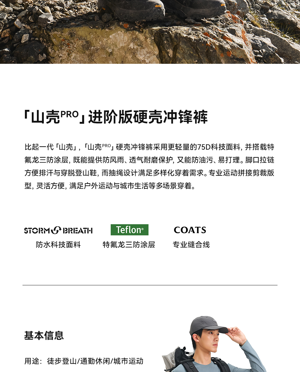 【山壳PRO】伯希和户外硬壳冲锋裤男2025新款三防全压胶登山裤女