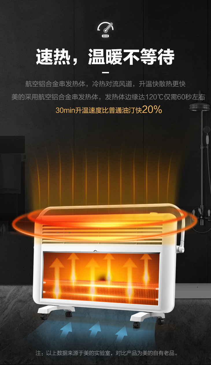 美的(Midea)(509389)NDY-DN 取暖器对流式对衡式欧式快热家用速热防水四级2000W内置加湿整机IPX4级防水居浴两用(对流式取暖器)