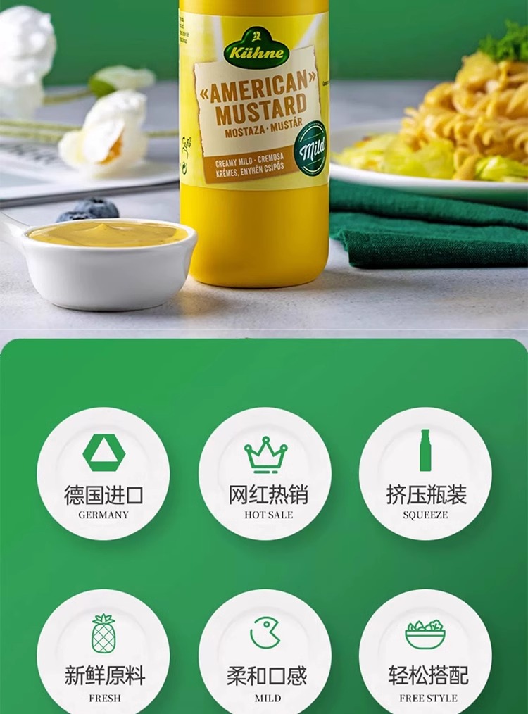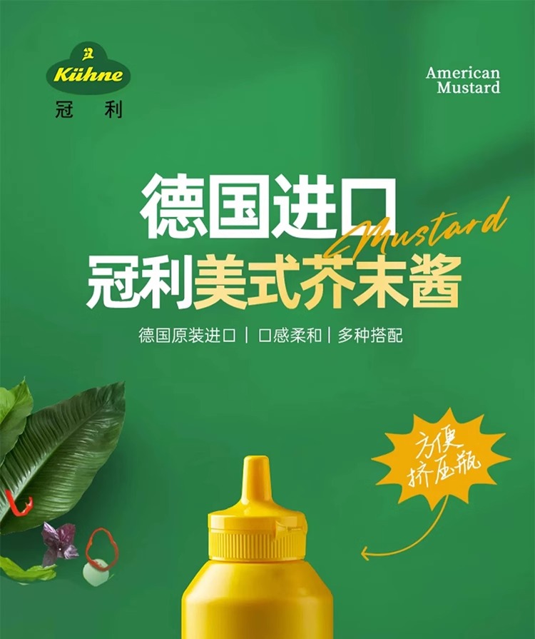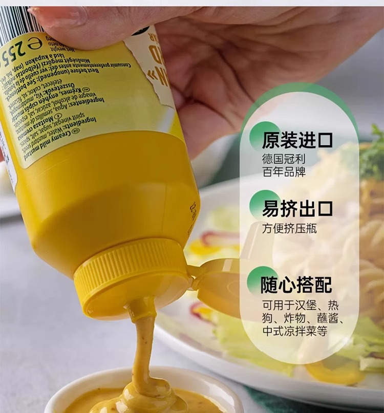 【中欧班列精选】德国冠芥末酱 原装进口利挤压式美式炸鸡汉堡三明治热狗涂抹蘸酱 255g /瓶