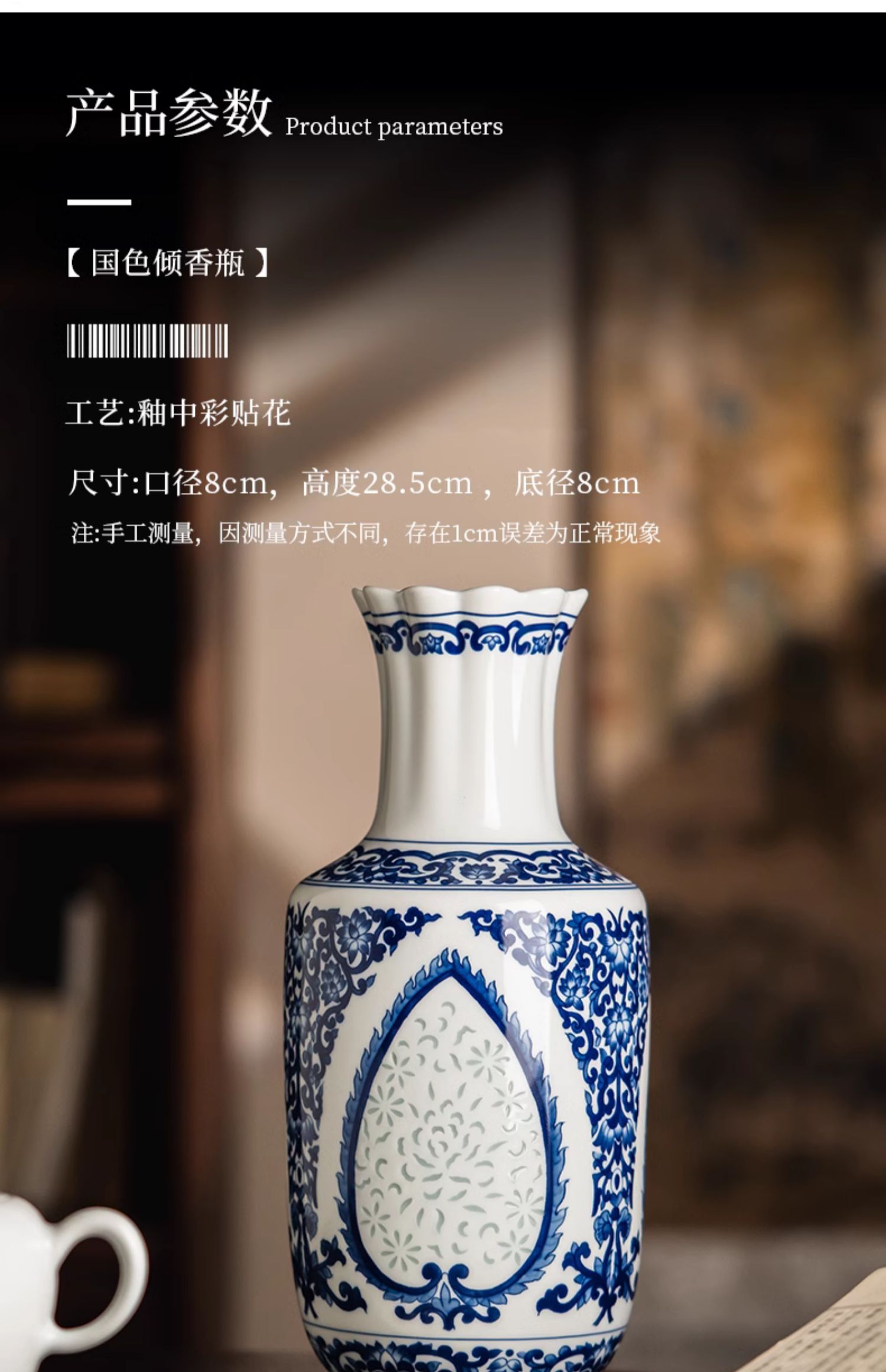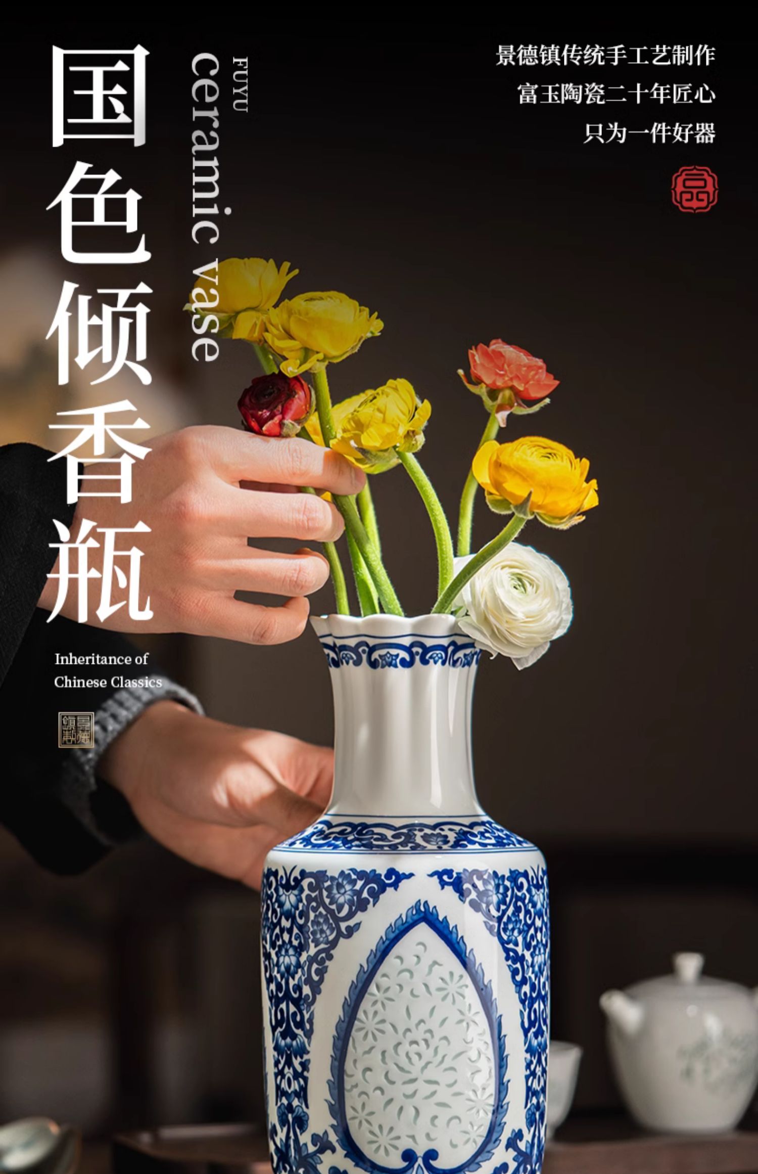 富玉 景德镇陶瓷花瓶插花中式现代卧室客厅装饰摆件礼物国色倾香瓶