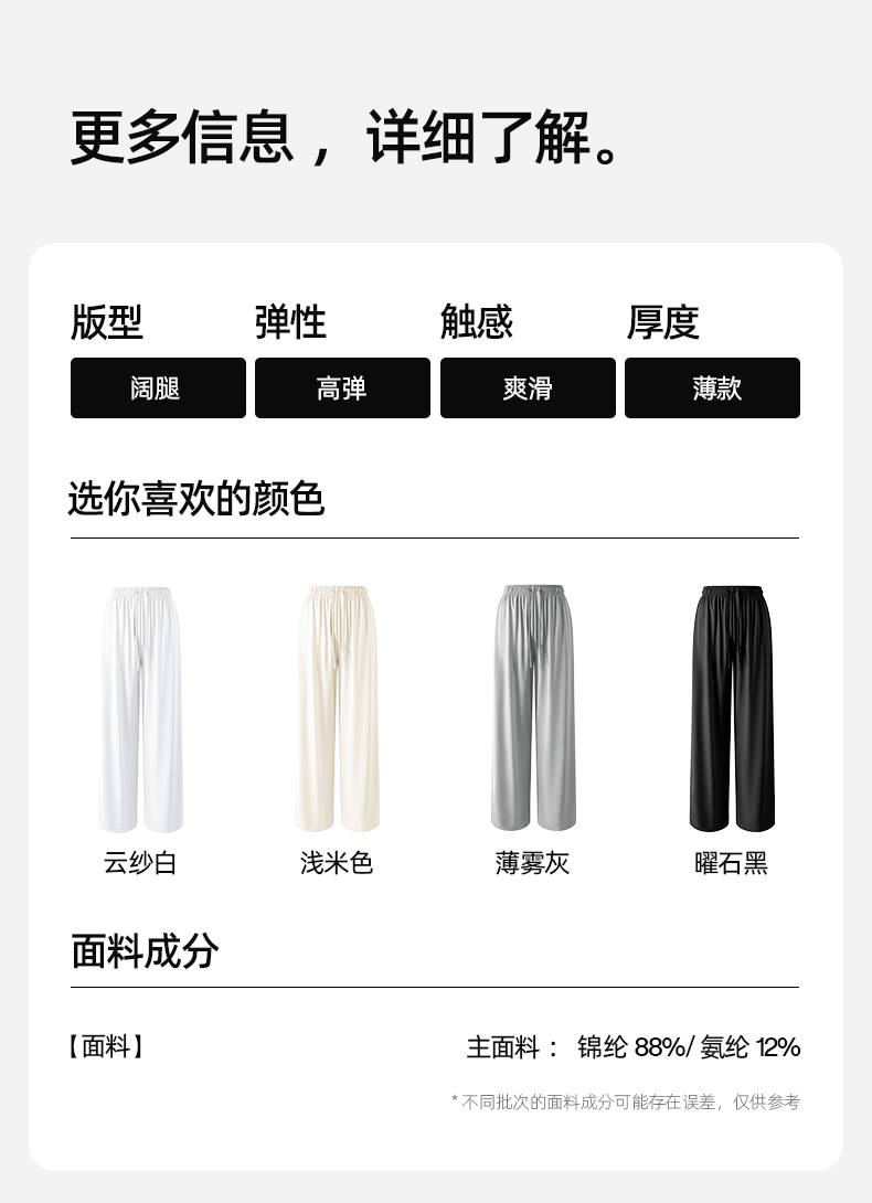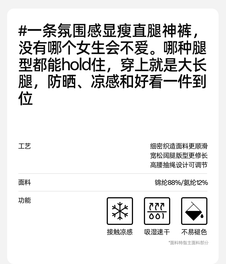 【品牌直发】小野和子冰丝阔腿裤 防晒裤女夏新款透气休闲薄款冰丝裤宽松凉感裤25SS0016