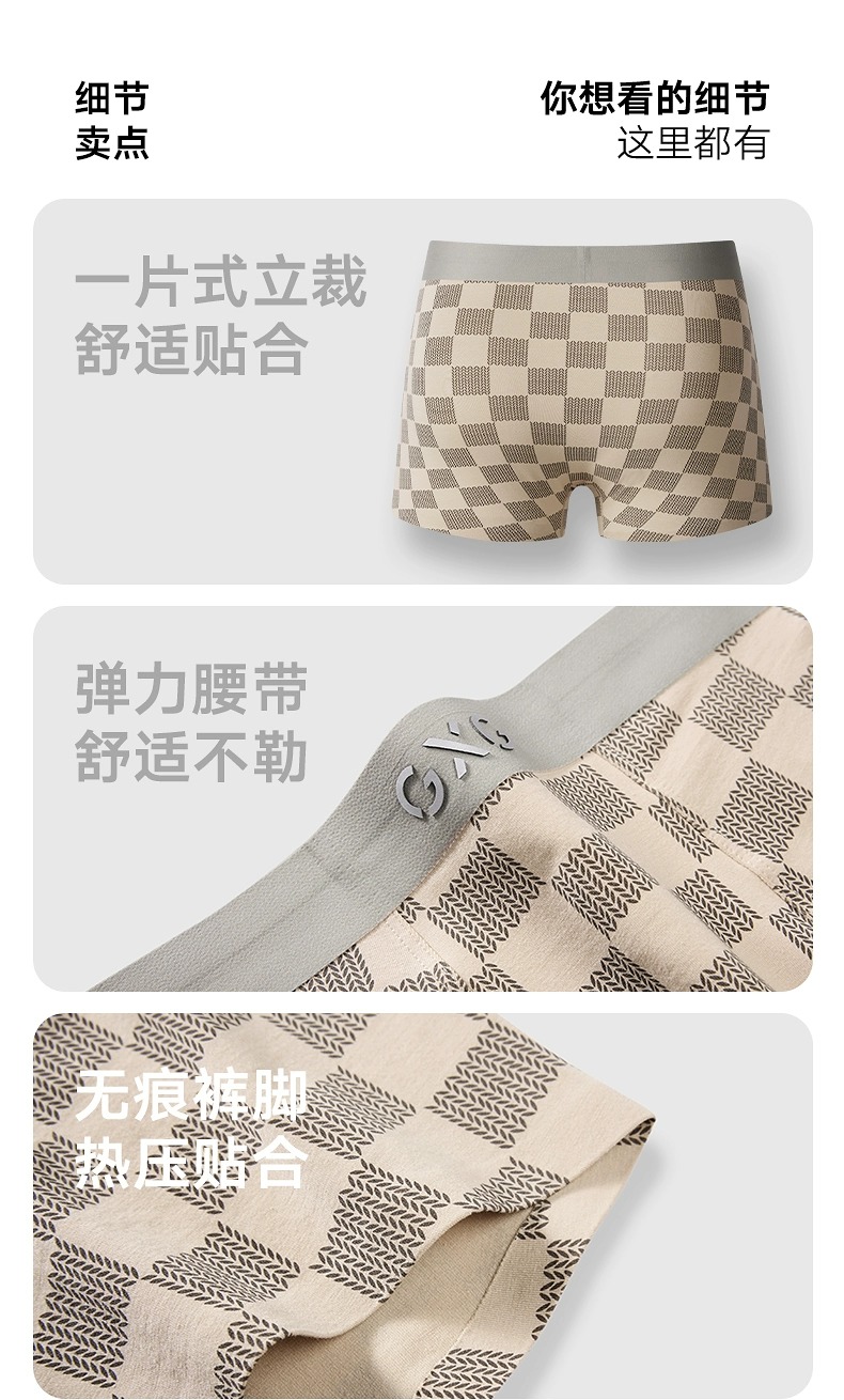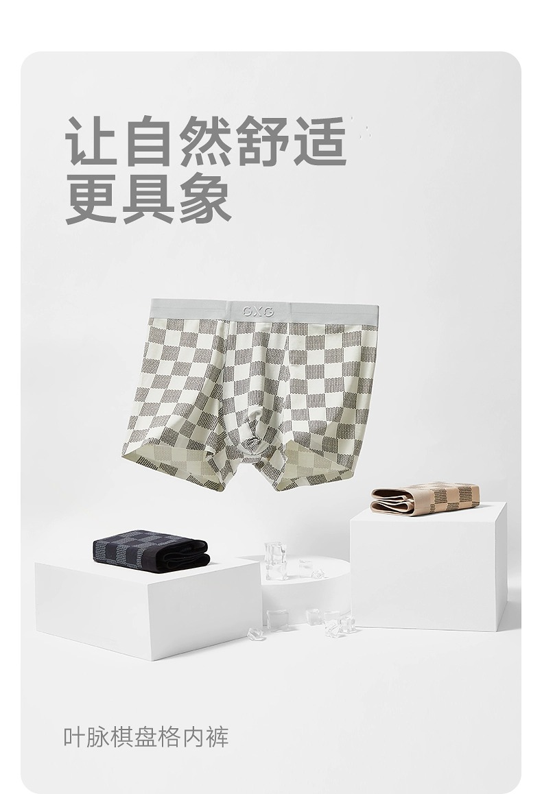 GXG内裤 【3条装】莫代尔冰丝内裤男棋盘格短裤夏季新品