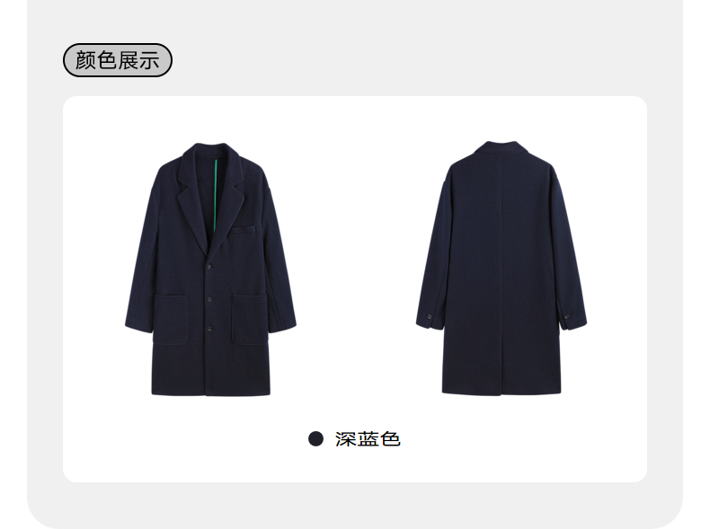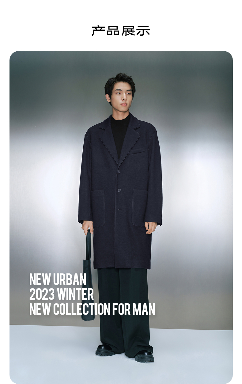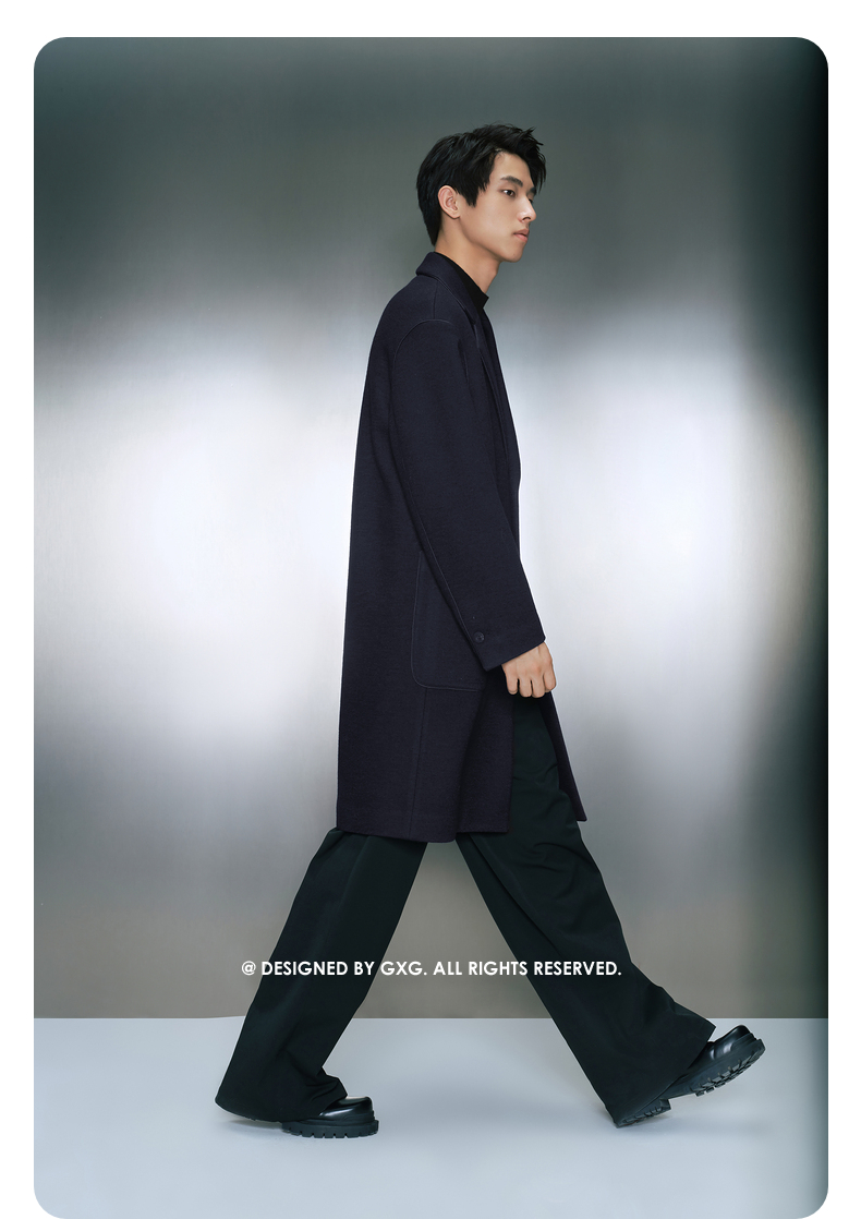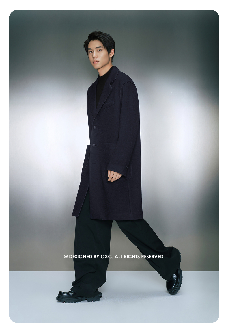 GXG男装深蓝色针织呢料长款大衣 冬季热卖气质大衣GEX12629034