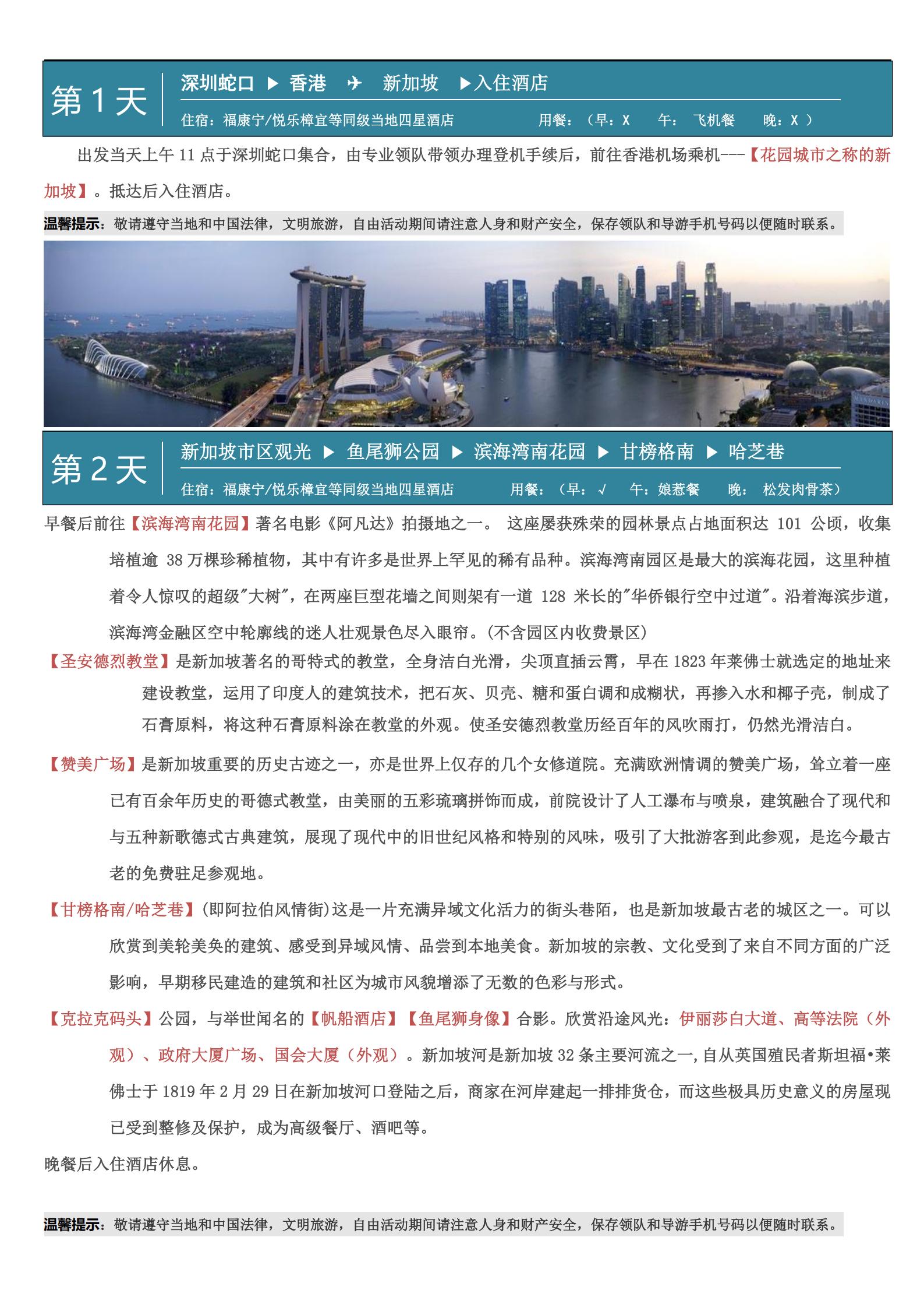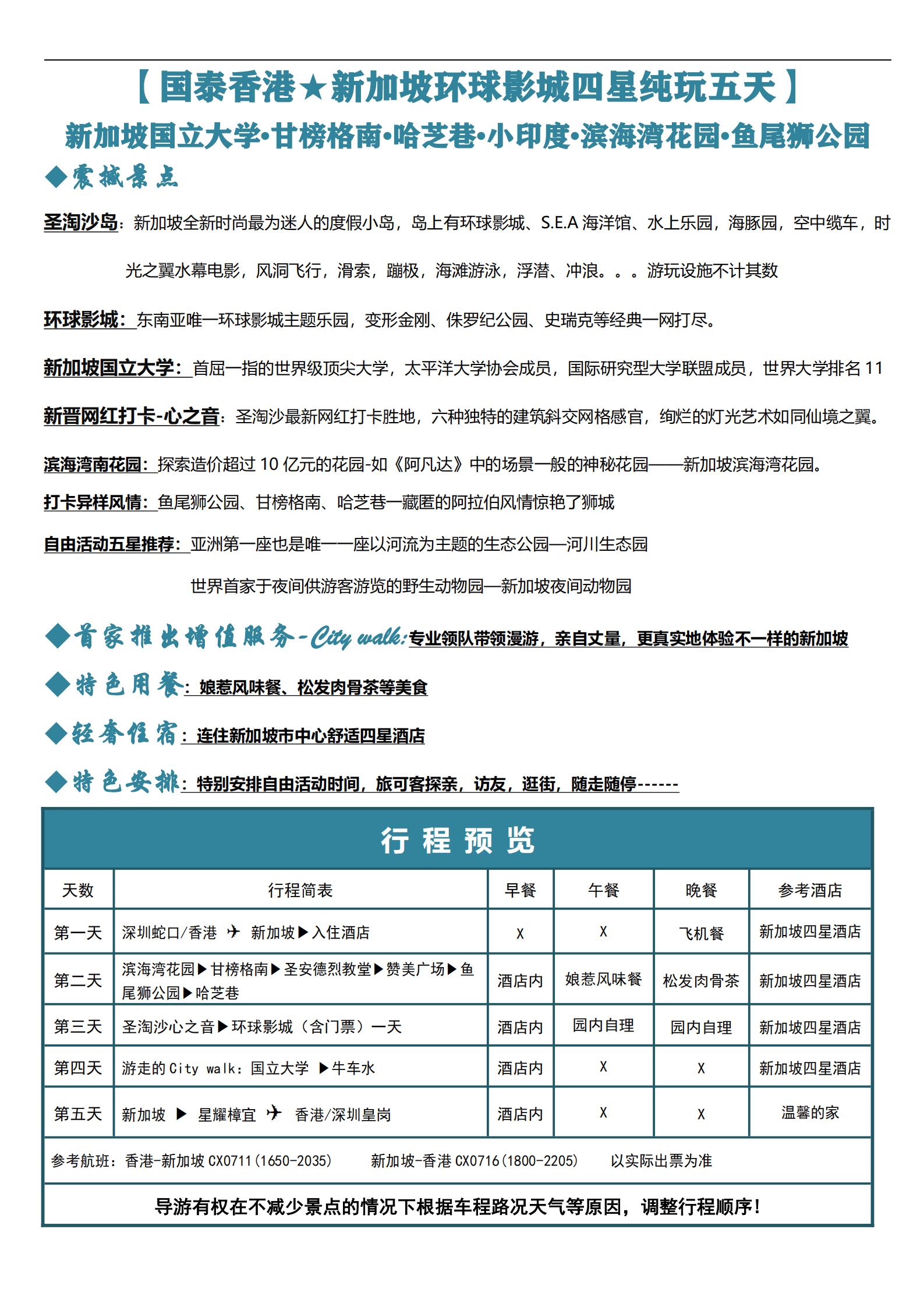 【五一】<新加坡5天纯玩团-深圳口岸起止>滨海湾南花园、鱼尾狮公园、甘榜格南、 哈芝巷、圣淘沙岛、 环球影城 、国立大学、牛车水