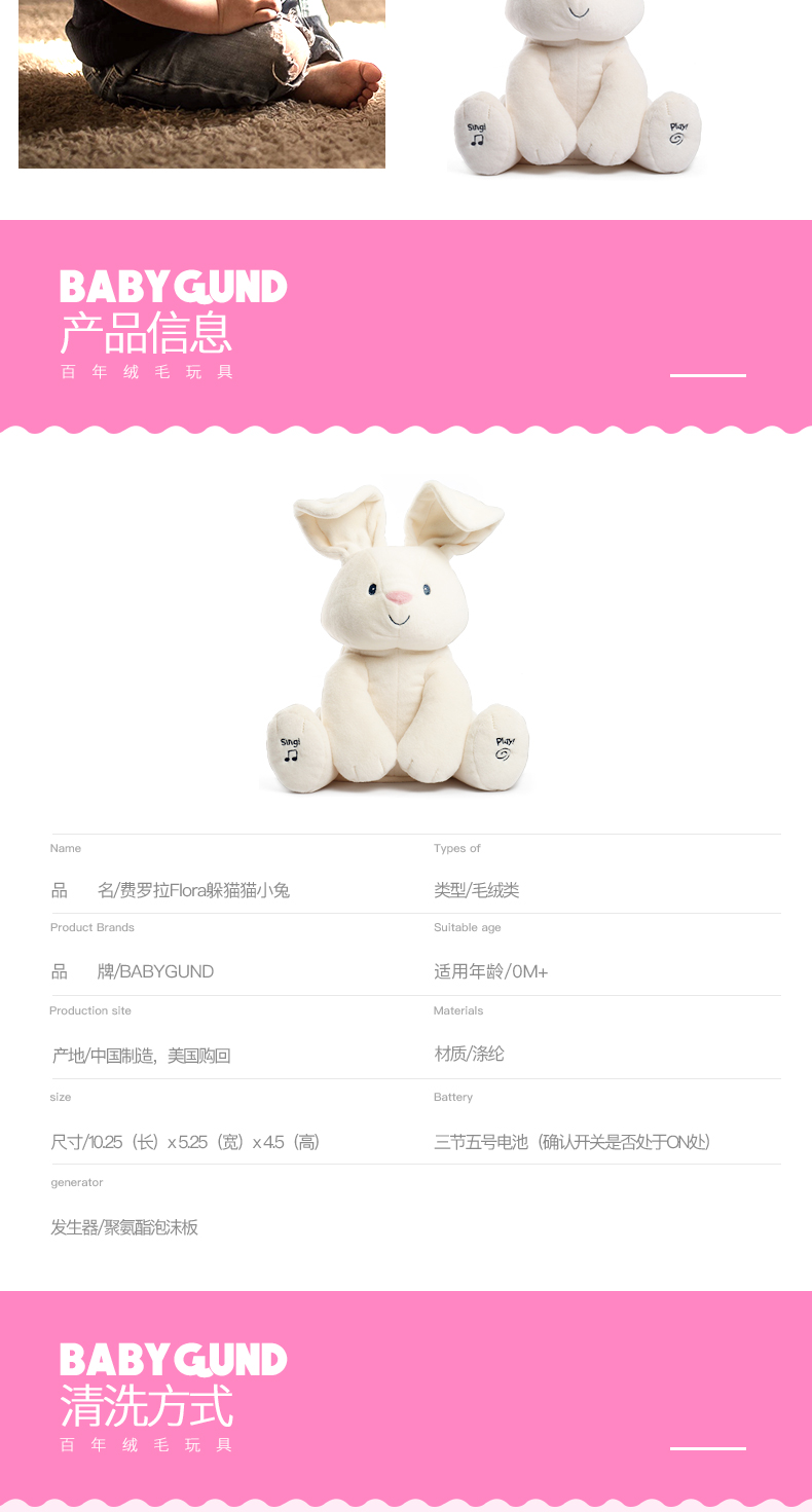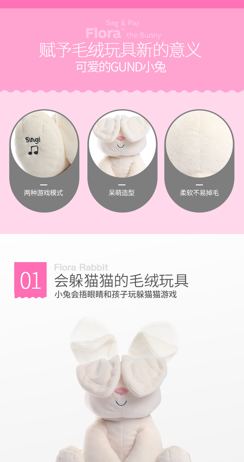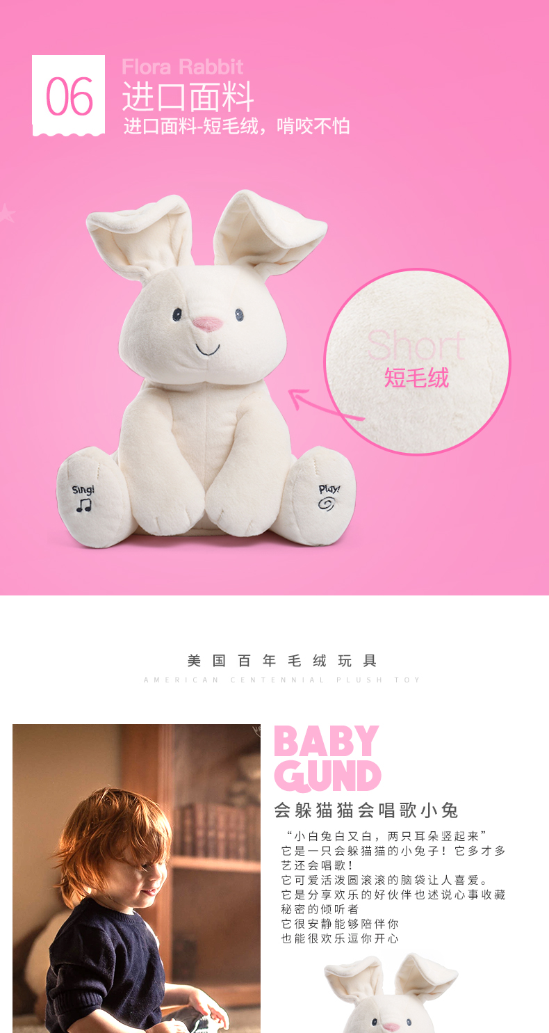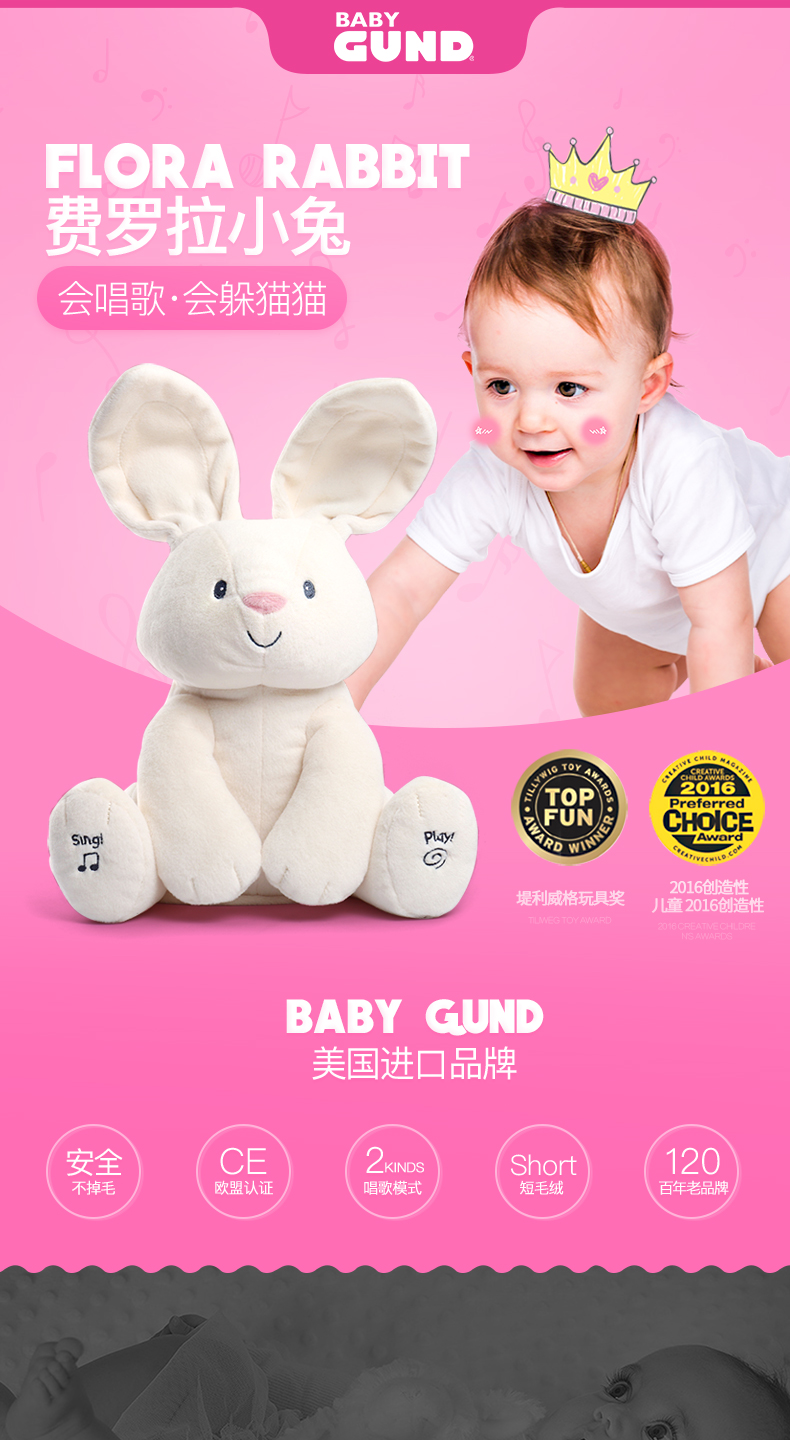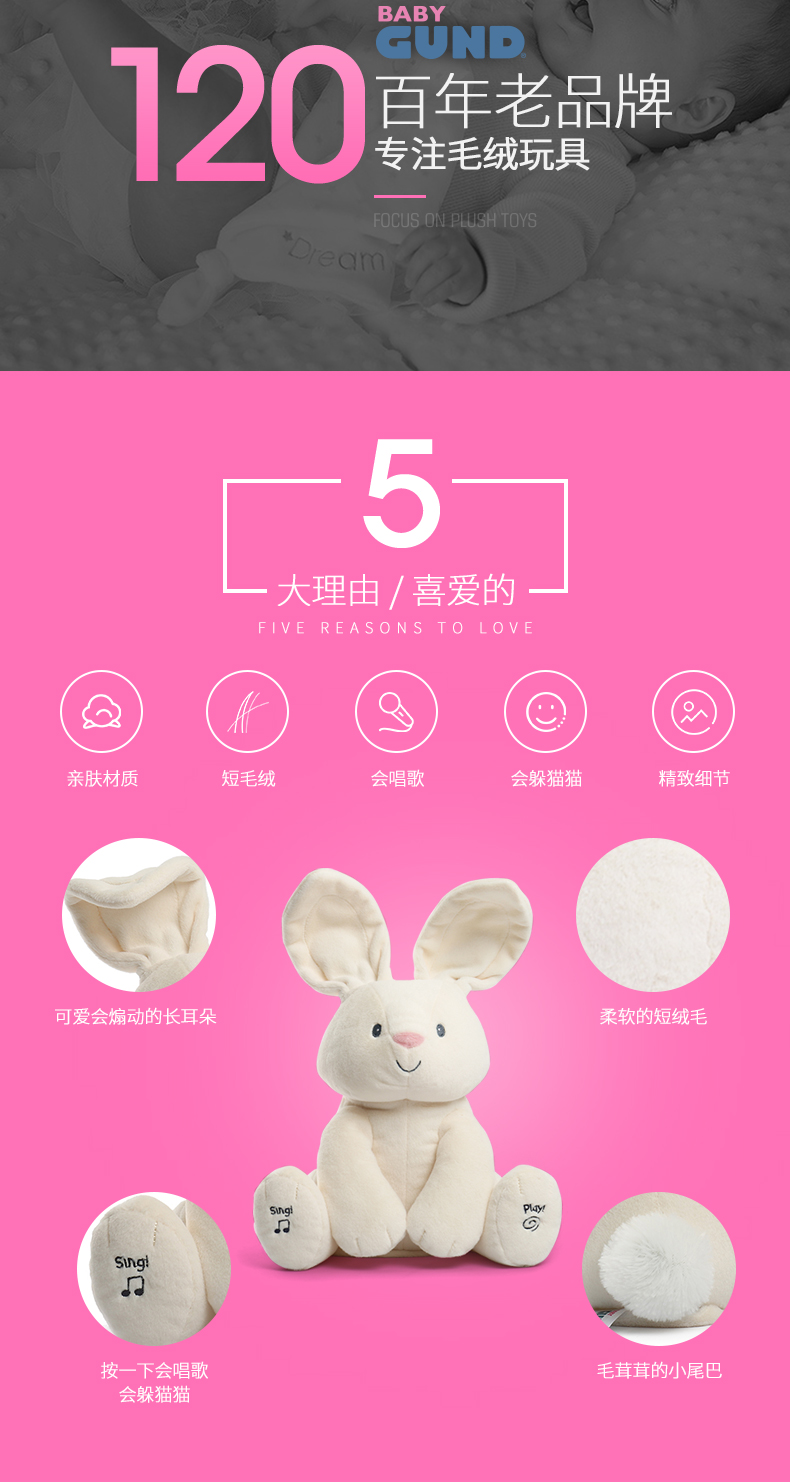 美国Baby Gund网红小兔 婴儿安抚玩具毛绒公仔玩偶躲猫猫害羞小兔