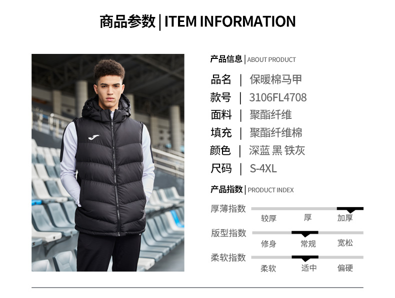 SFS荷马Joma正品 运动马甲秋冬棉服足球保暖背心加厚训练外套坎肩
