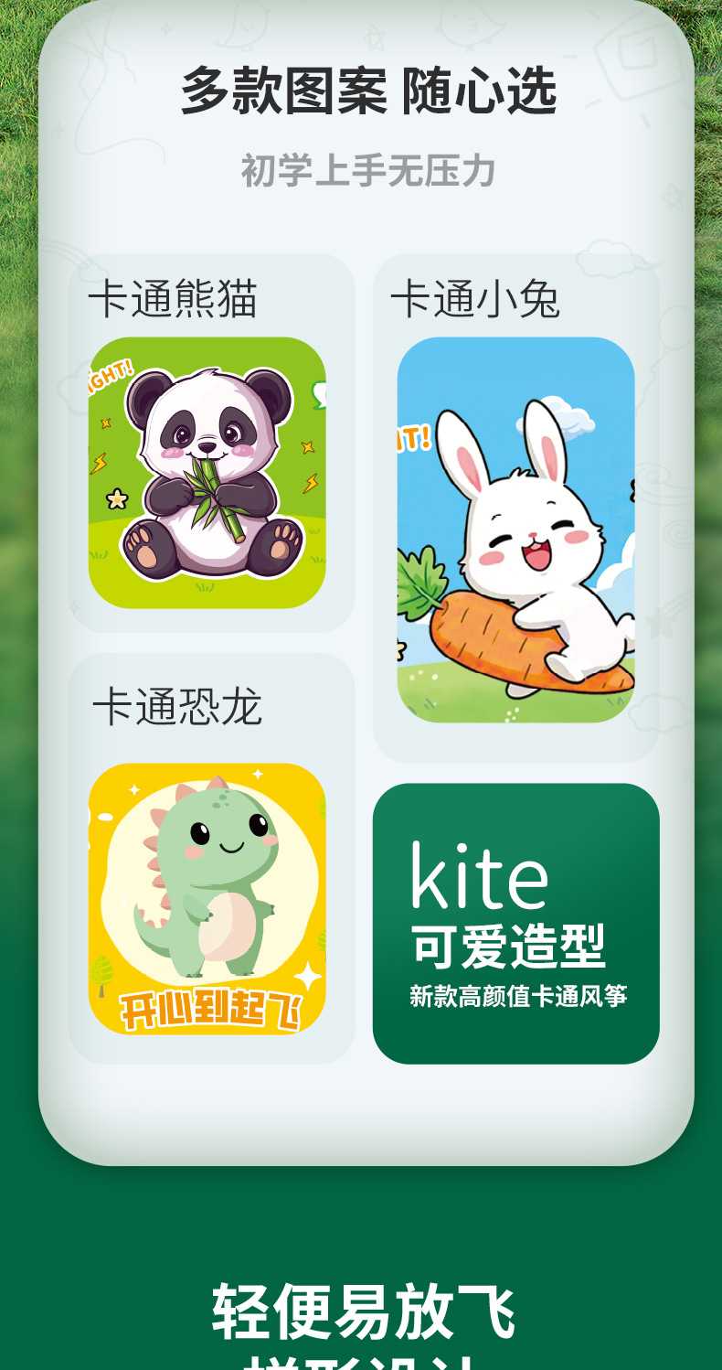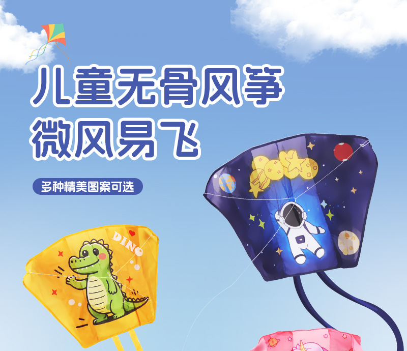 【新手放飞无压力】儿童户外手持风筝 微风易飞 可爱卡通 口袋收纳便携 无骨布风筝
