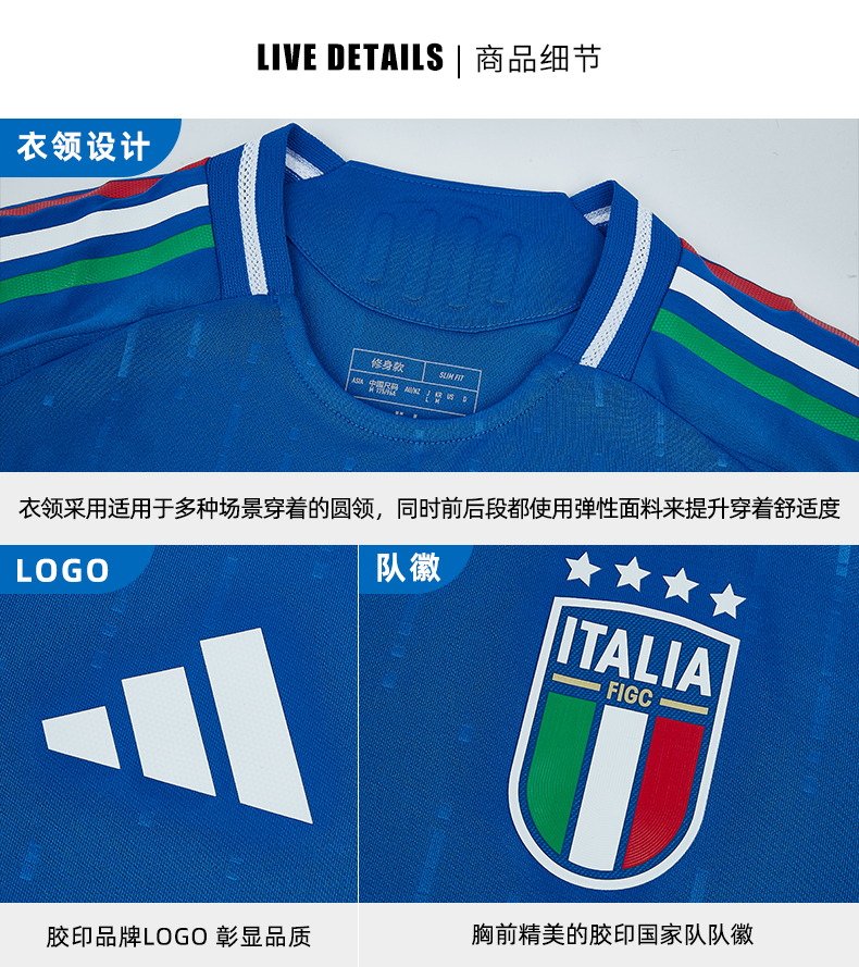 【连印号臂章】SFS阿迪达斯Adidas 2024欧洲杯意大利主场球员版球衣足球服IN0658