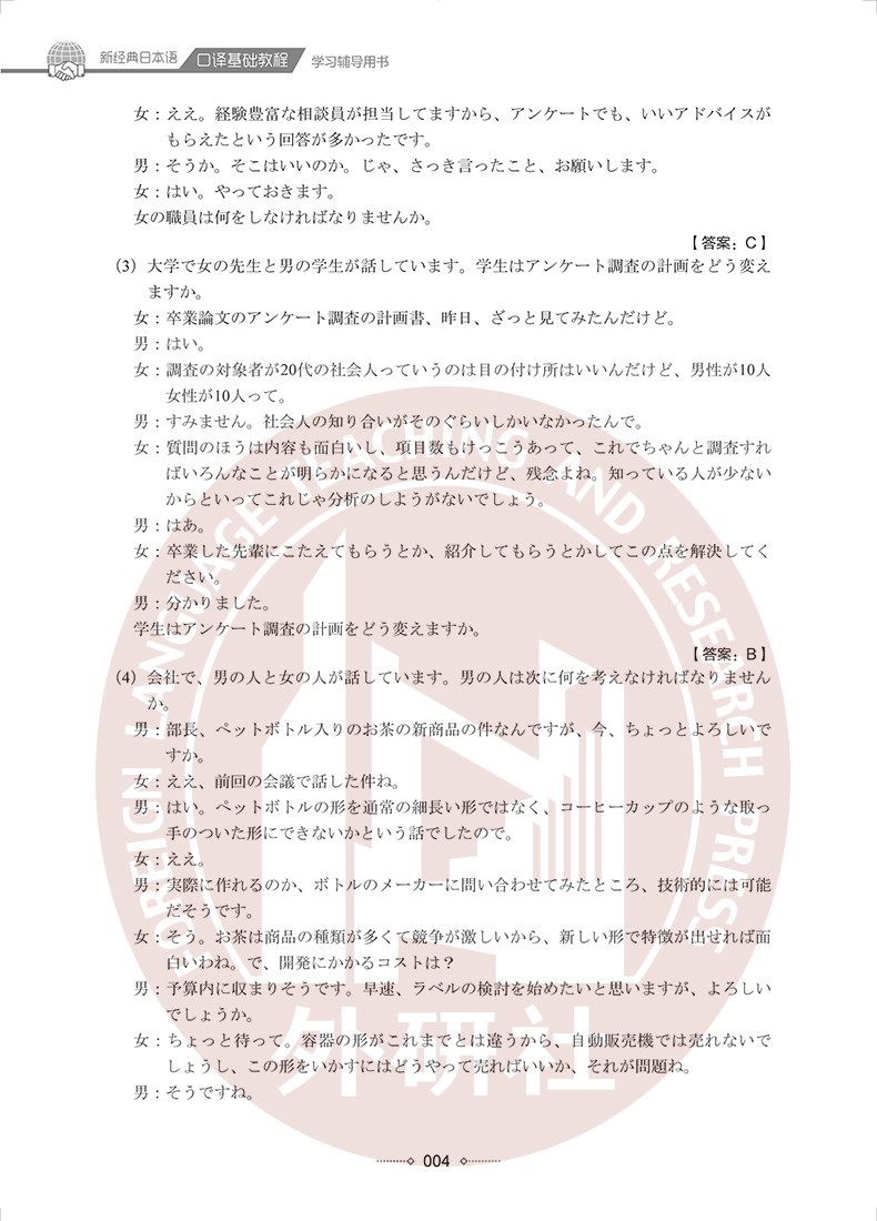 《新经典日本语口译基础教程学习辅导用书》供日语专业高年级或具有同等日语能力的学习者使用,在编写中主要体现了以下几个特点: