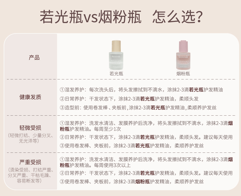 其实这样分开还蛮细心的,若光瓶和烟粉瓶可以搭配起来用,这样去修护头发的话也会更精准更全面一些。