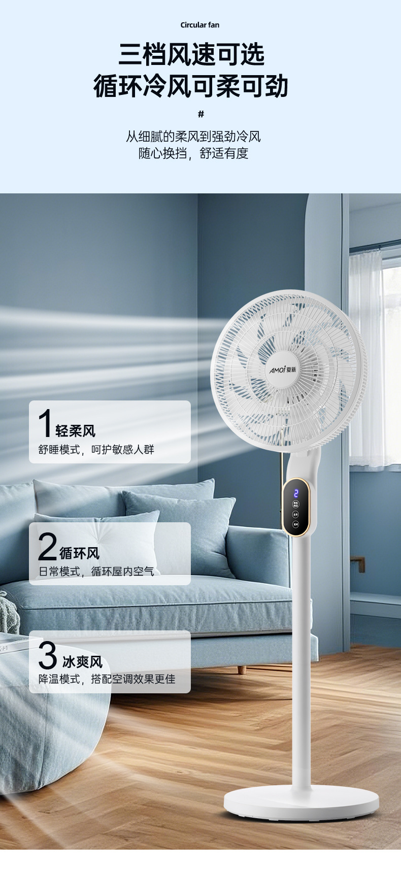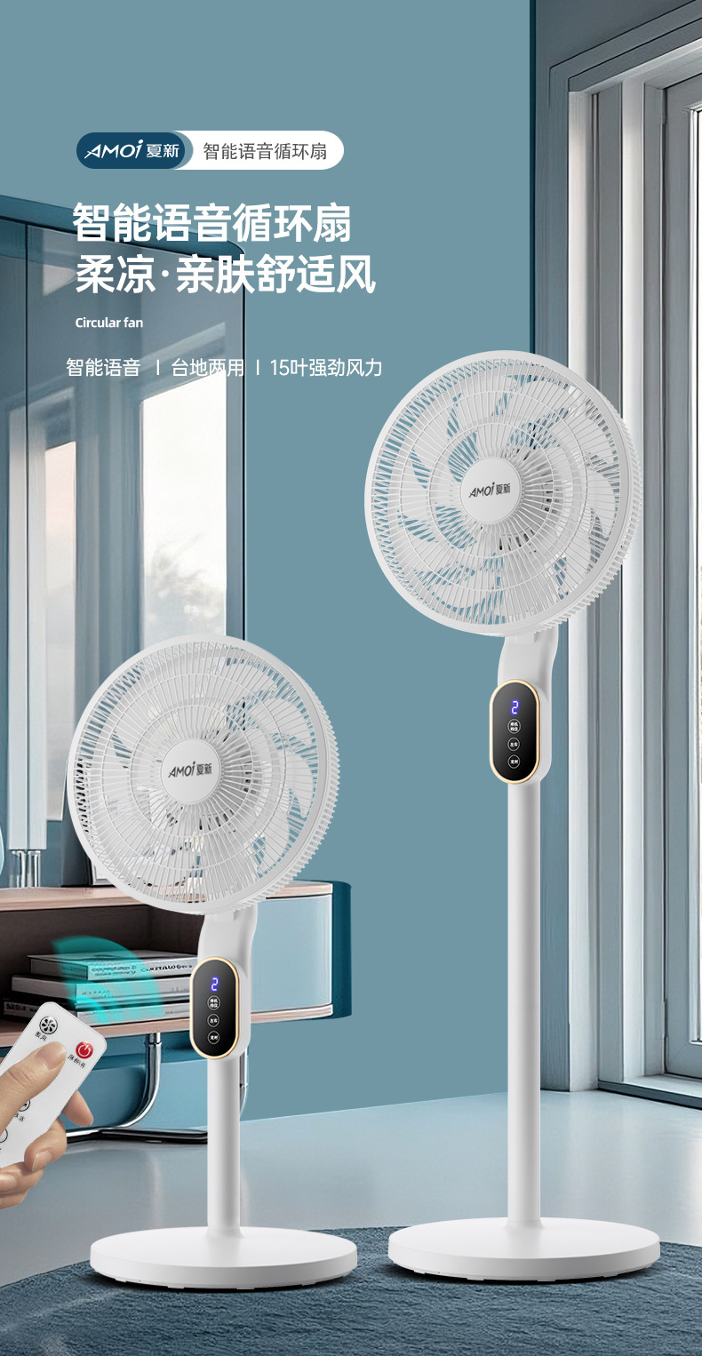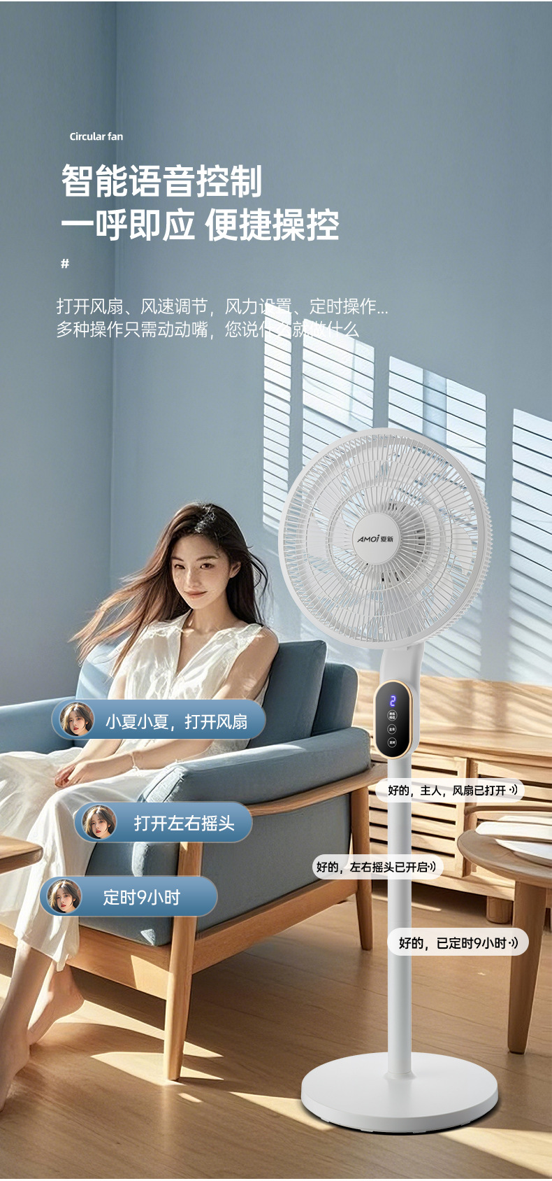 【电风扇新款家用落地风扇】大风力静音智能摇头循环扇 语音遥控款电扇