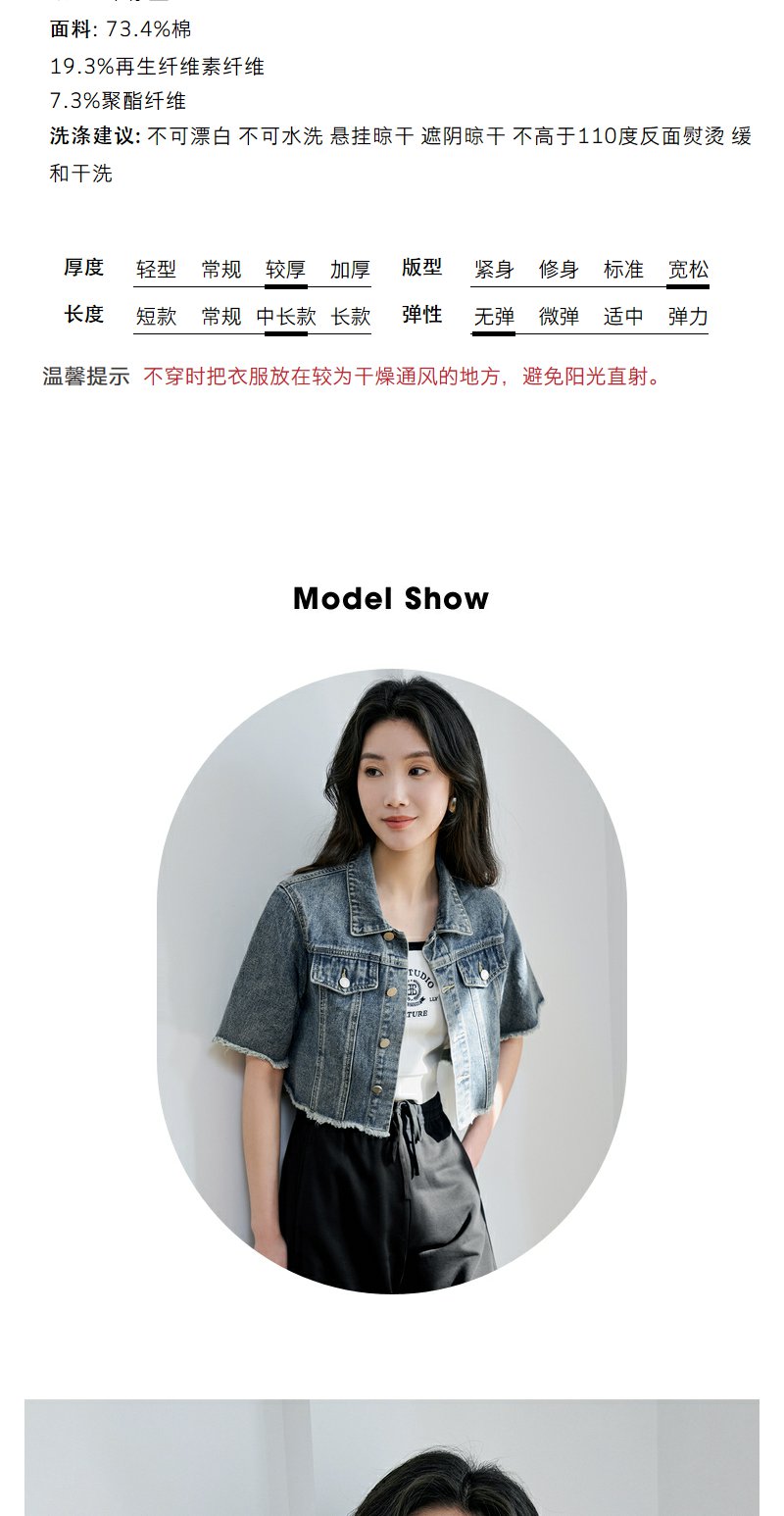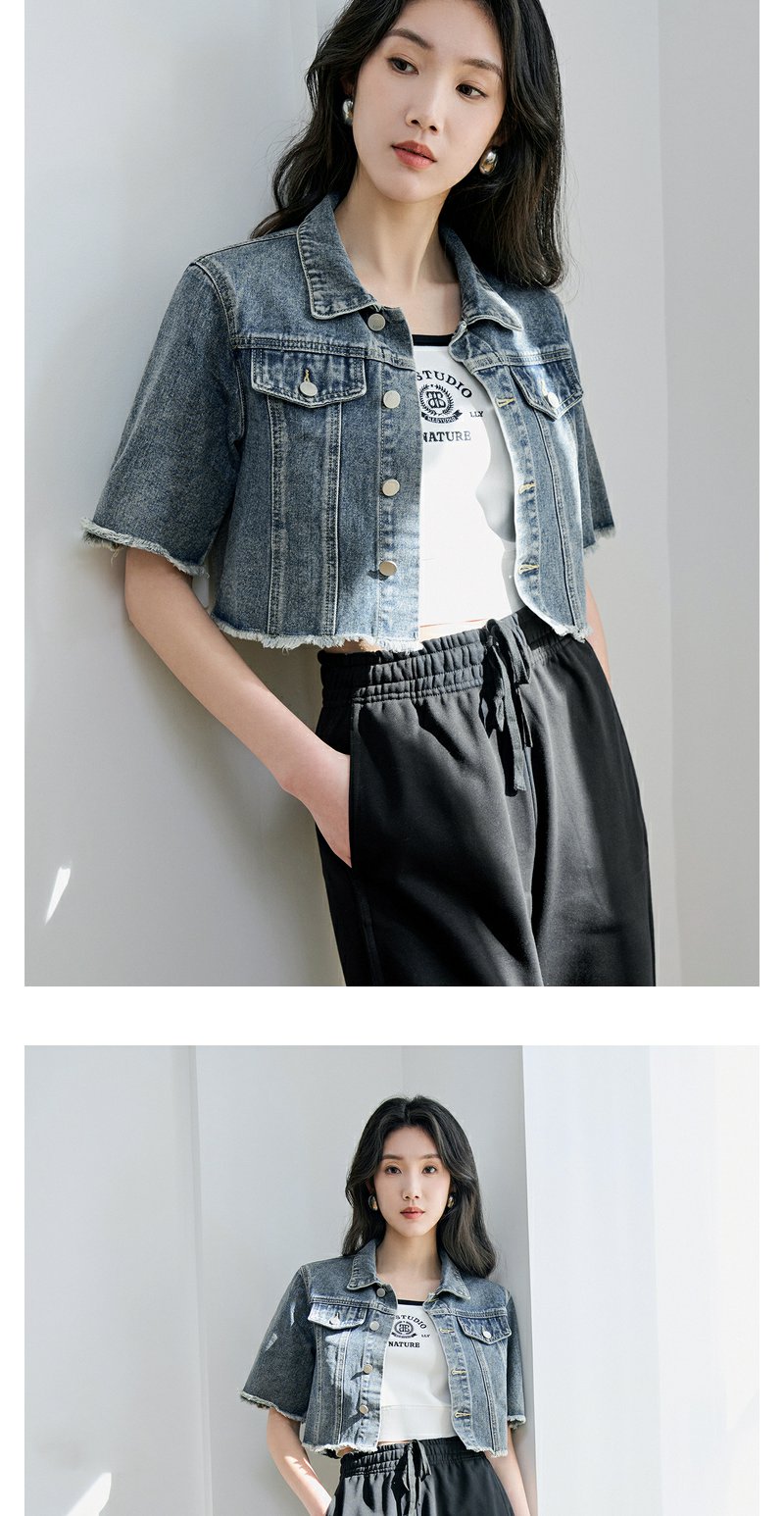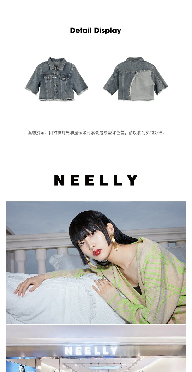 NEELLY纳俪商场同款时尚毛边牛仔外套女流苏高腰百搭短款夹克上衣N23074C07720