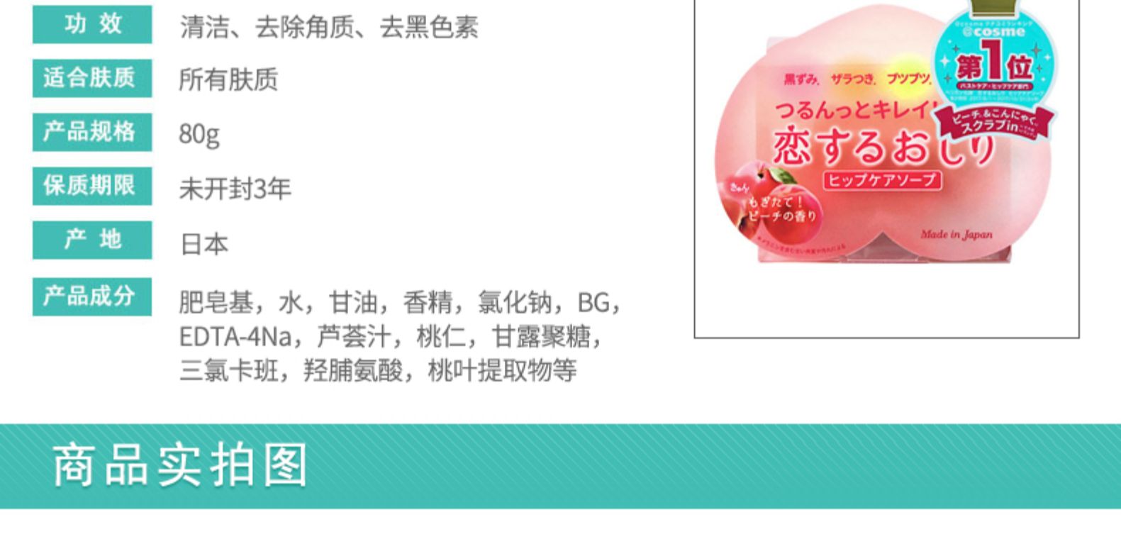 pelican去角质桃皂80g