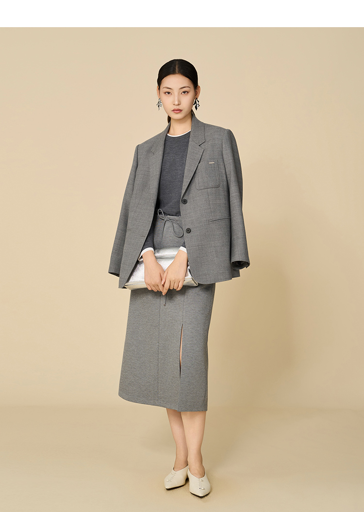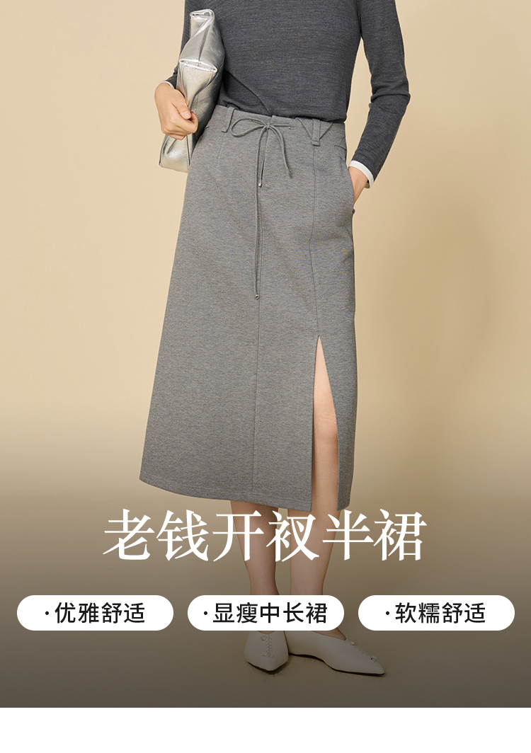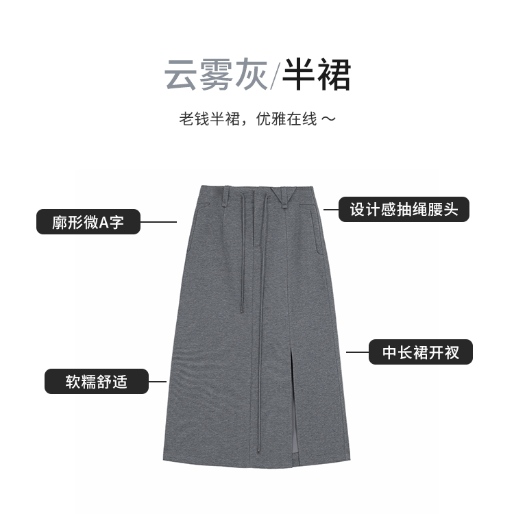 【商场同款】CNS5904 “ 老钱半裙 ” 廓形微A,包容显瘦不挑身材 开叉显腿长 智性灰色半裙