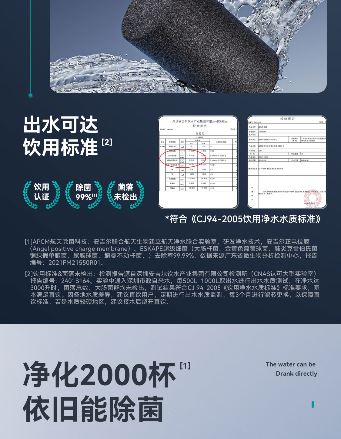 安吉尔E-Tech3800 净水器反渗透RO膜家用直饮