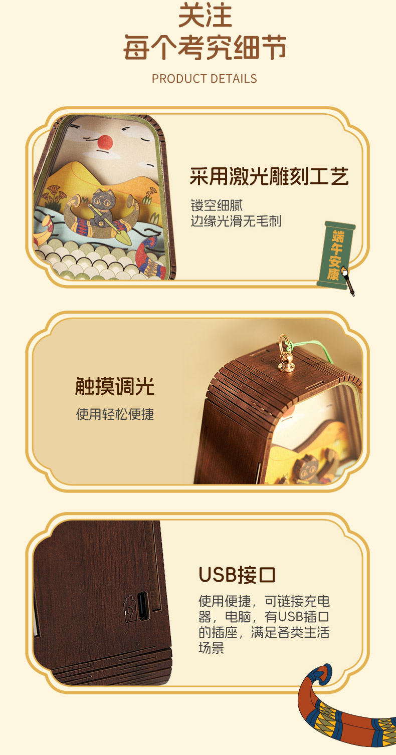 大英博物馆 盖亚·安德森猫和她的朋友们系列 端午安康 木雕灯 摆件