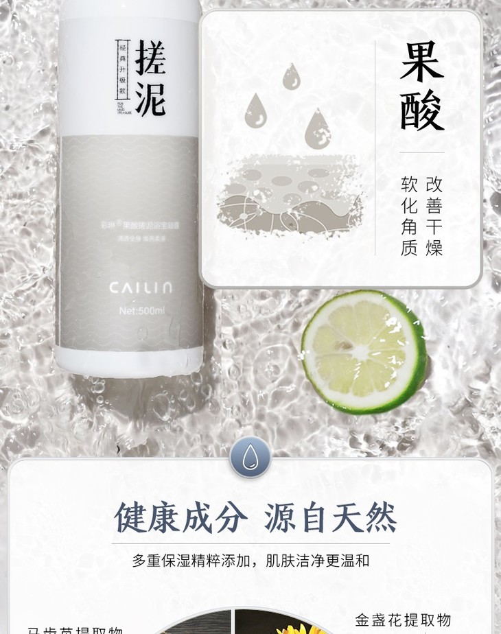 买一送一!彩琳海盐果酸搓泥浴宝凝露500ml