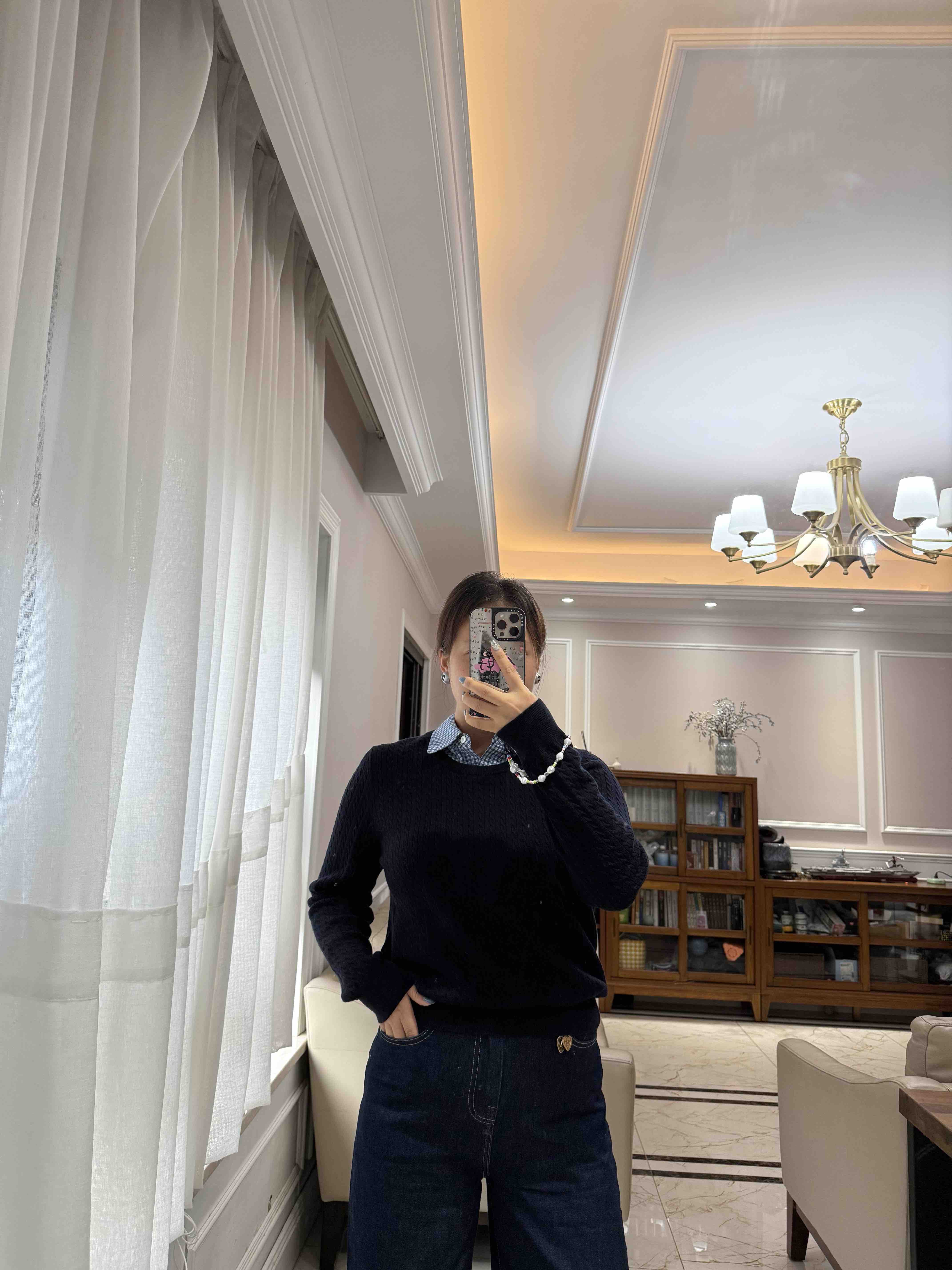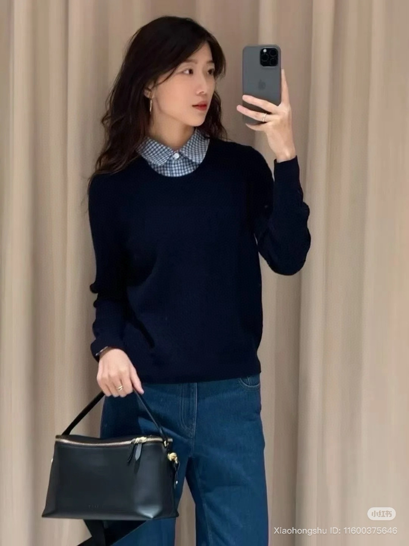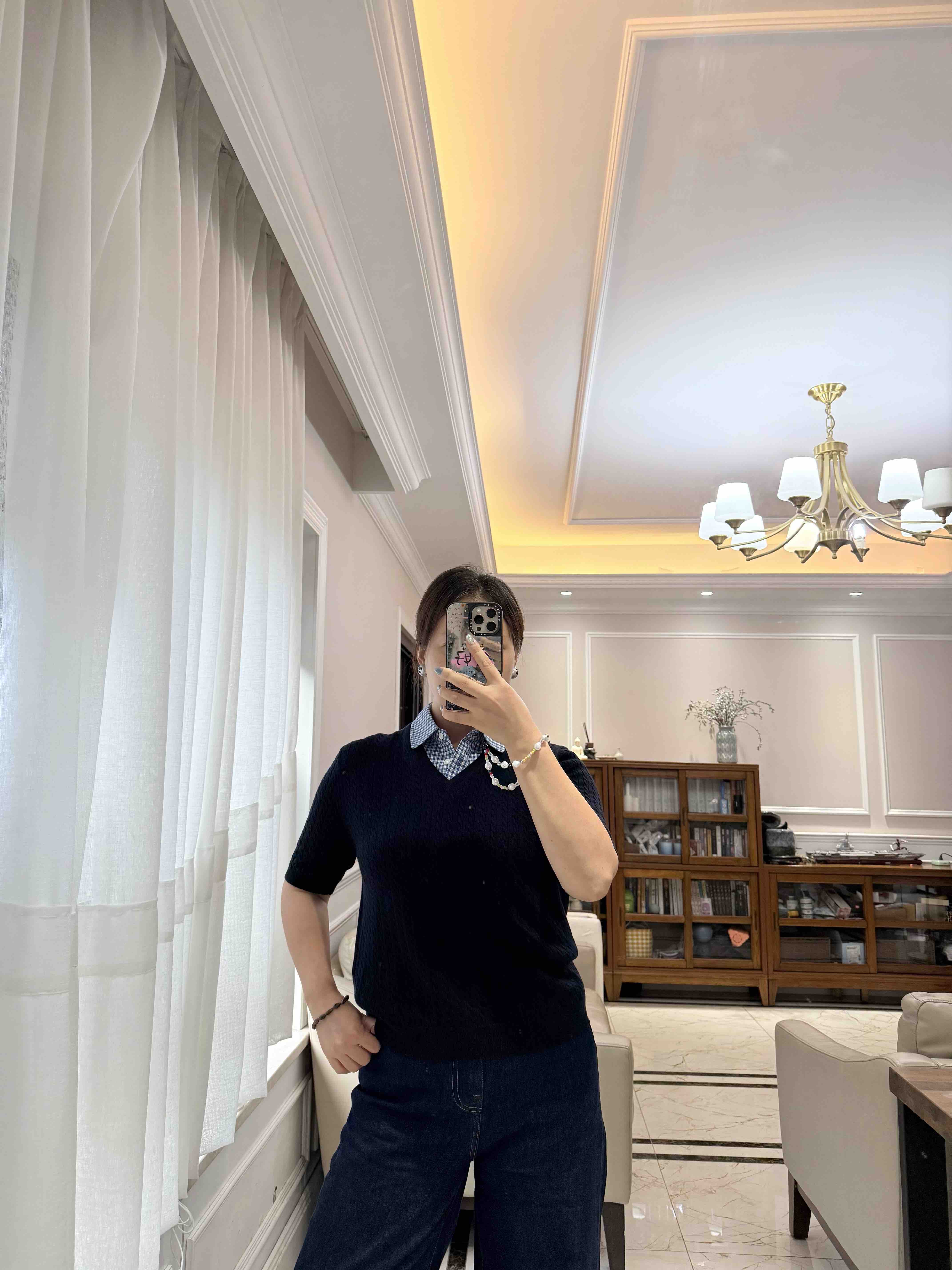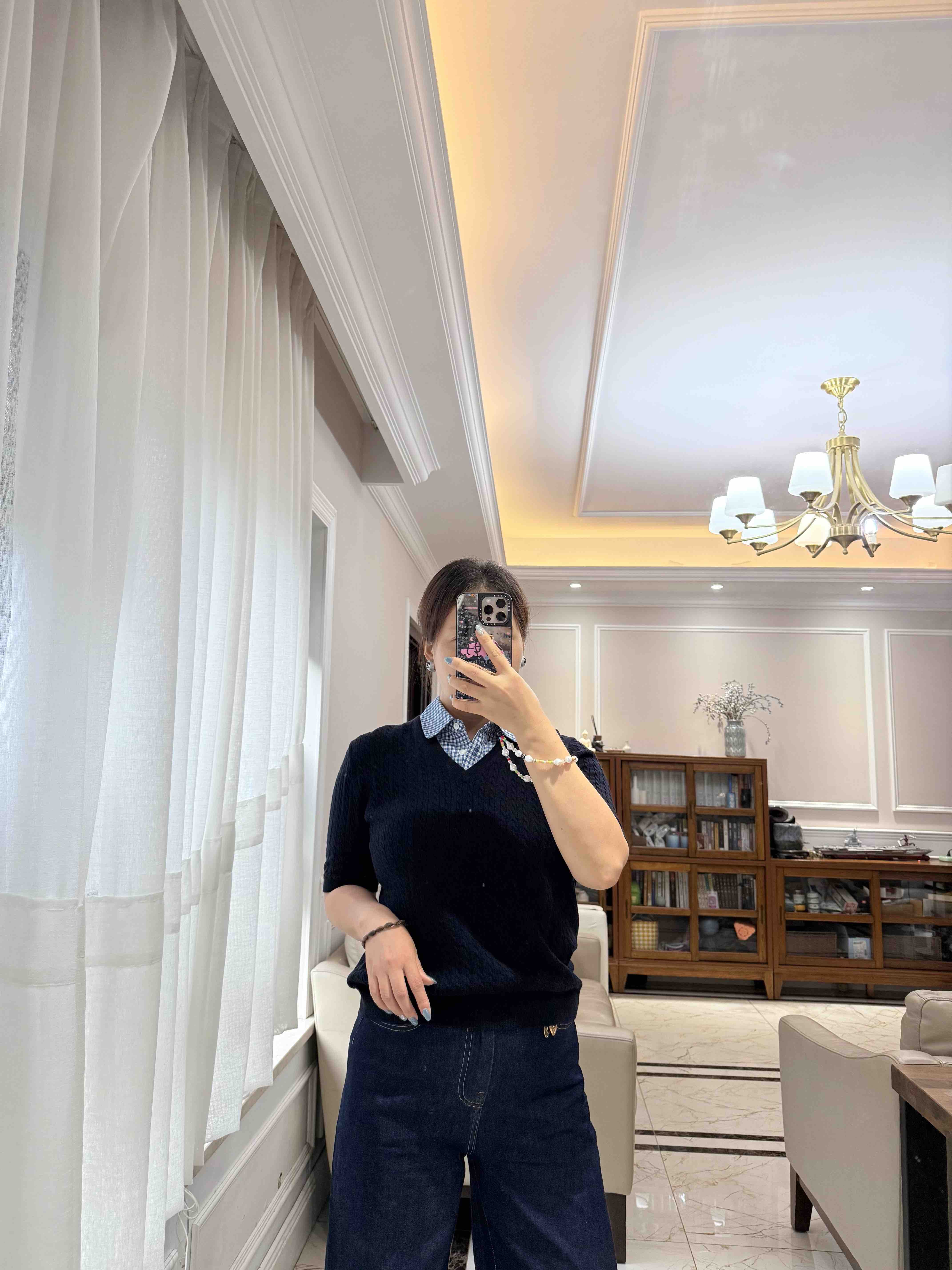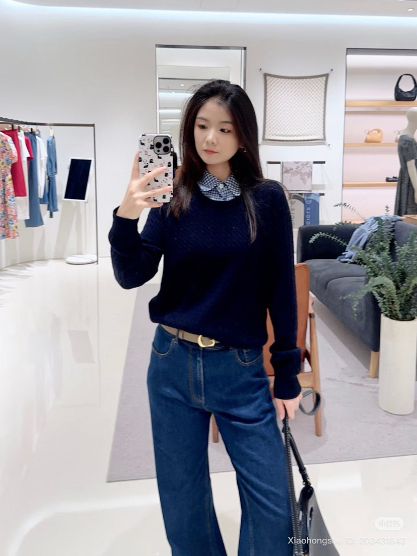 小禾 假两件 衬衫领针织长袖,真的有点miu的那种叠穿感觉。