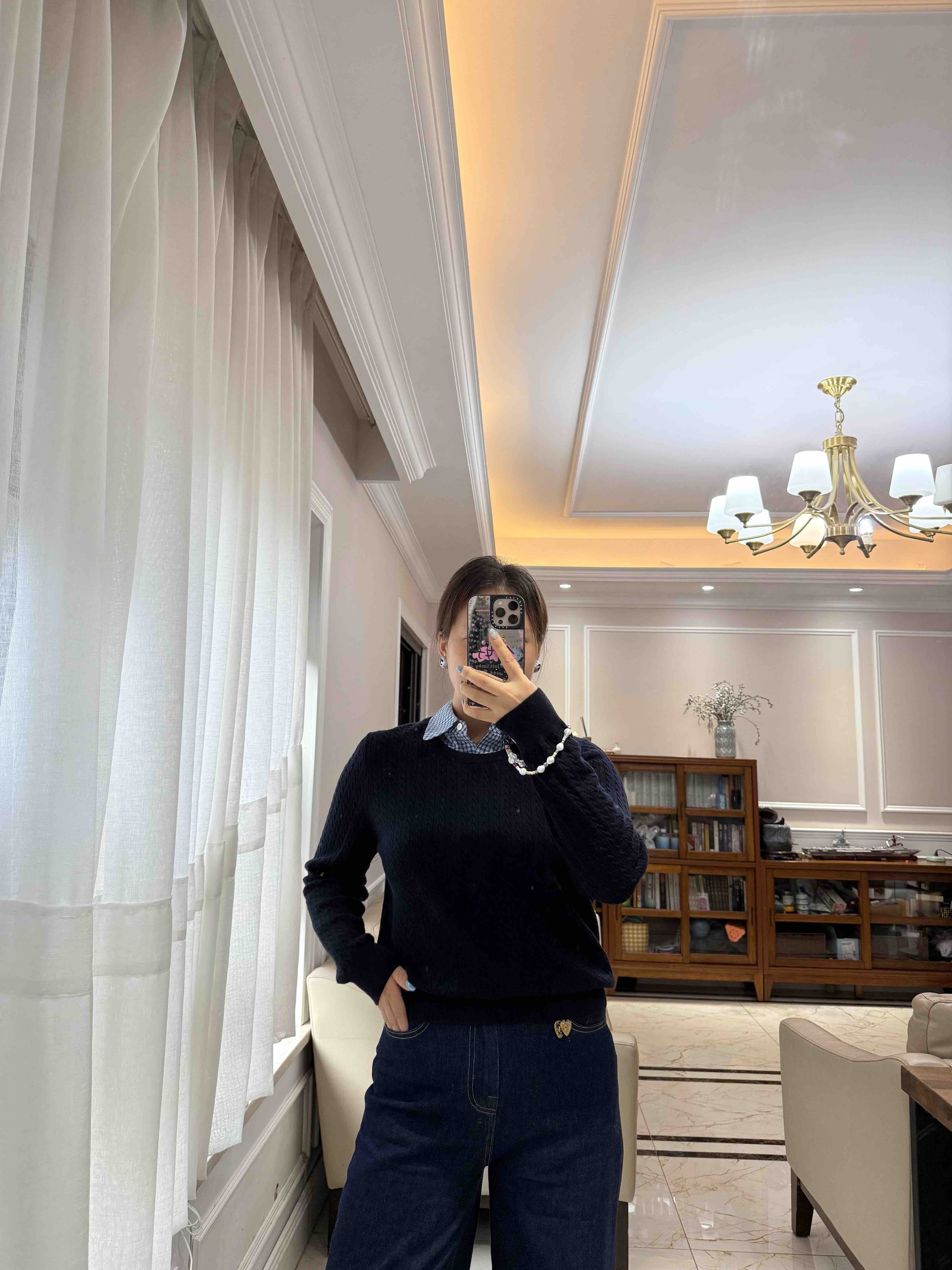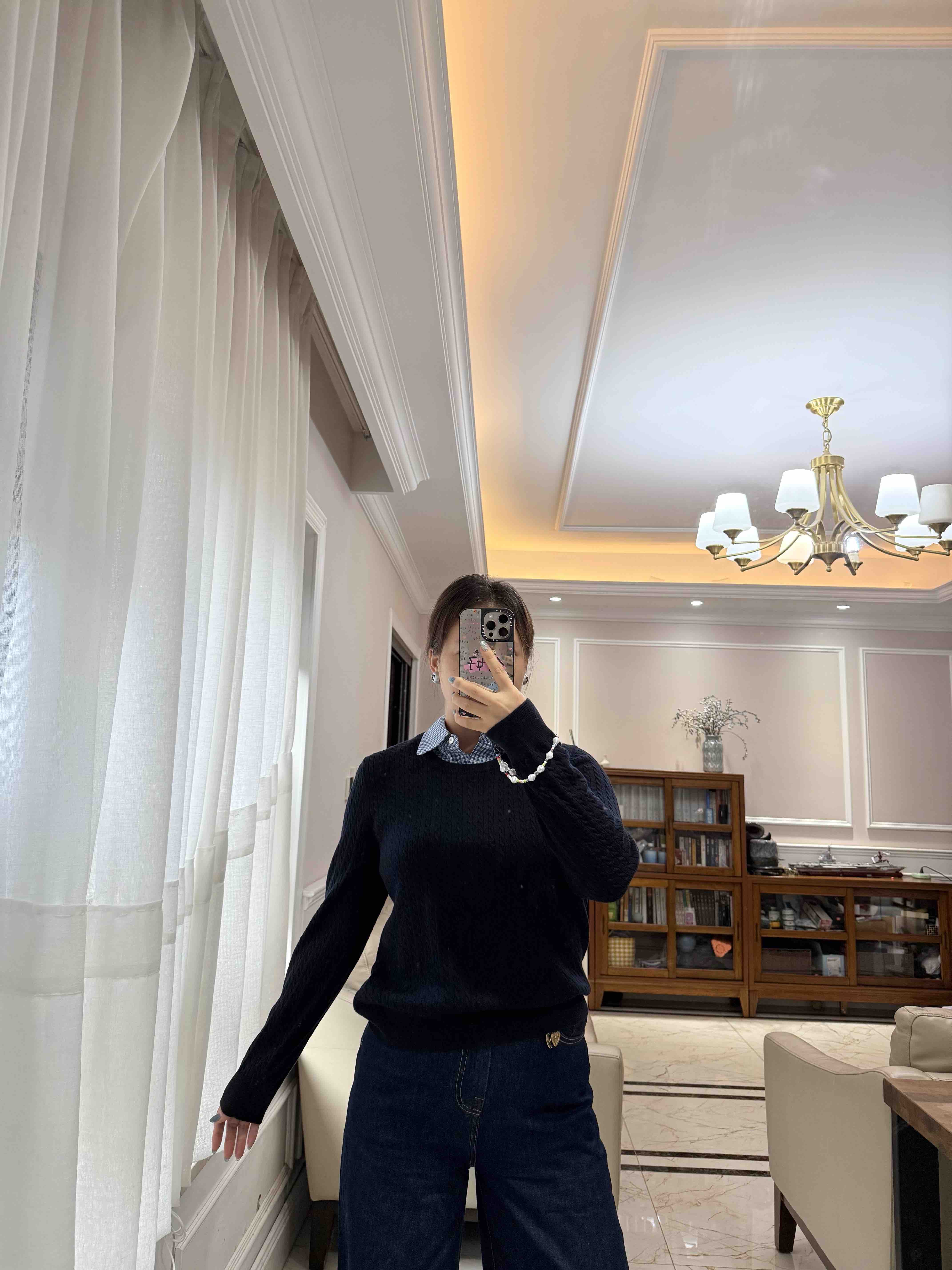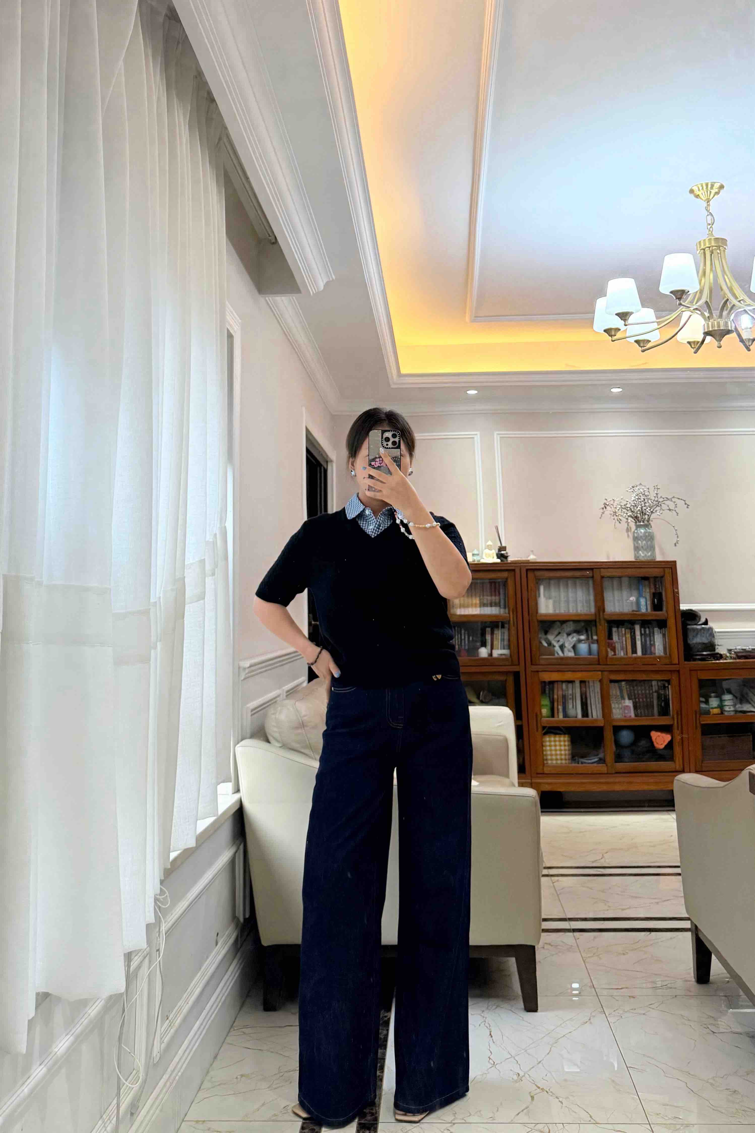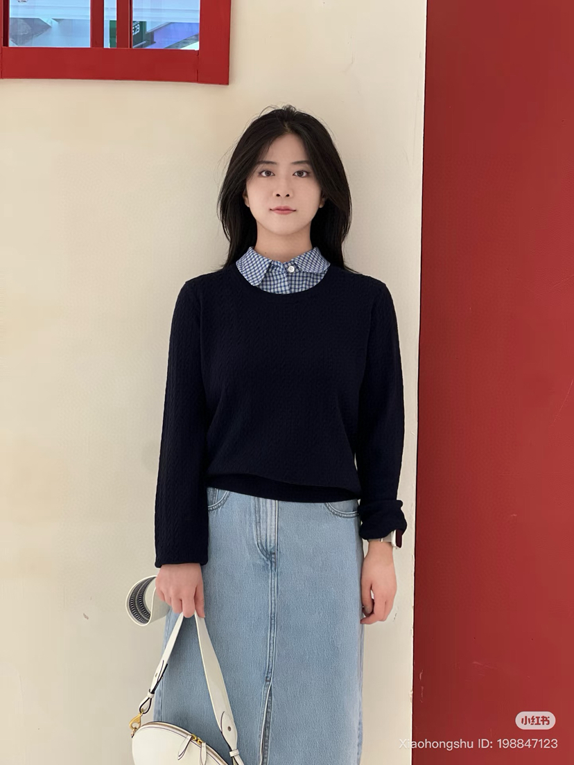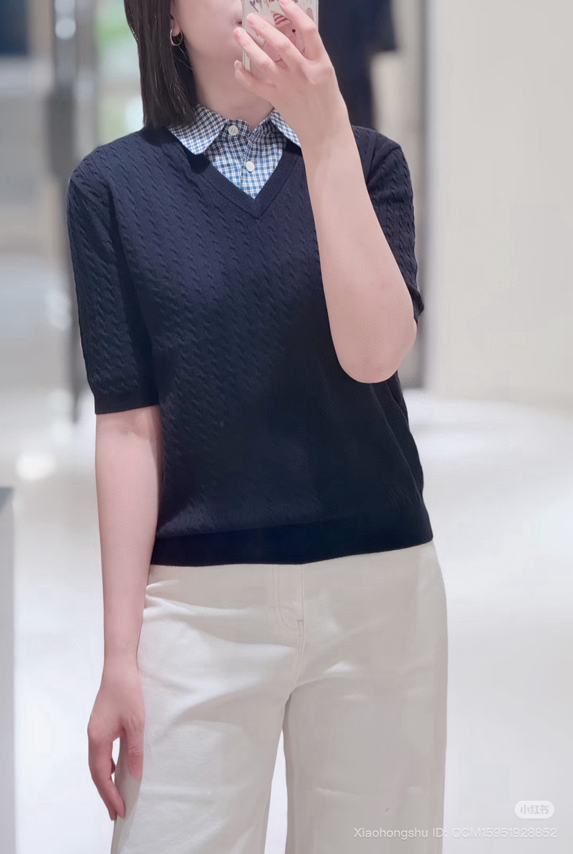小禾 假两件 衬衫领针织长袖,真的有点miu的那种叠穿感觉。