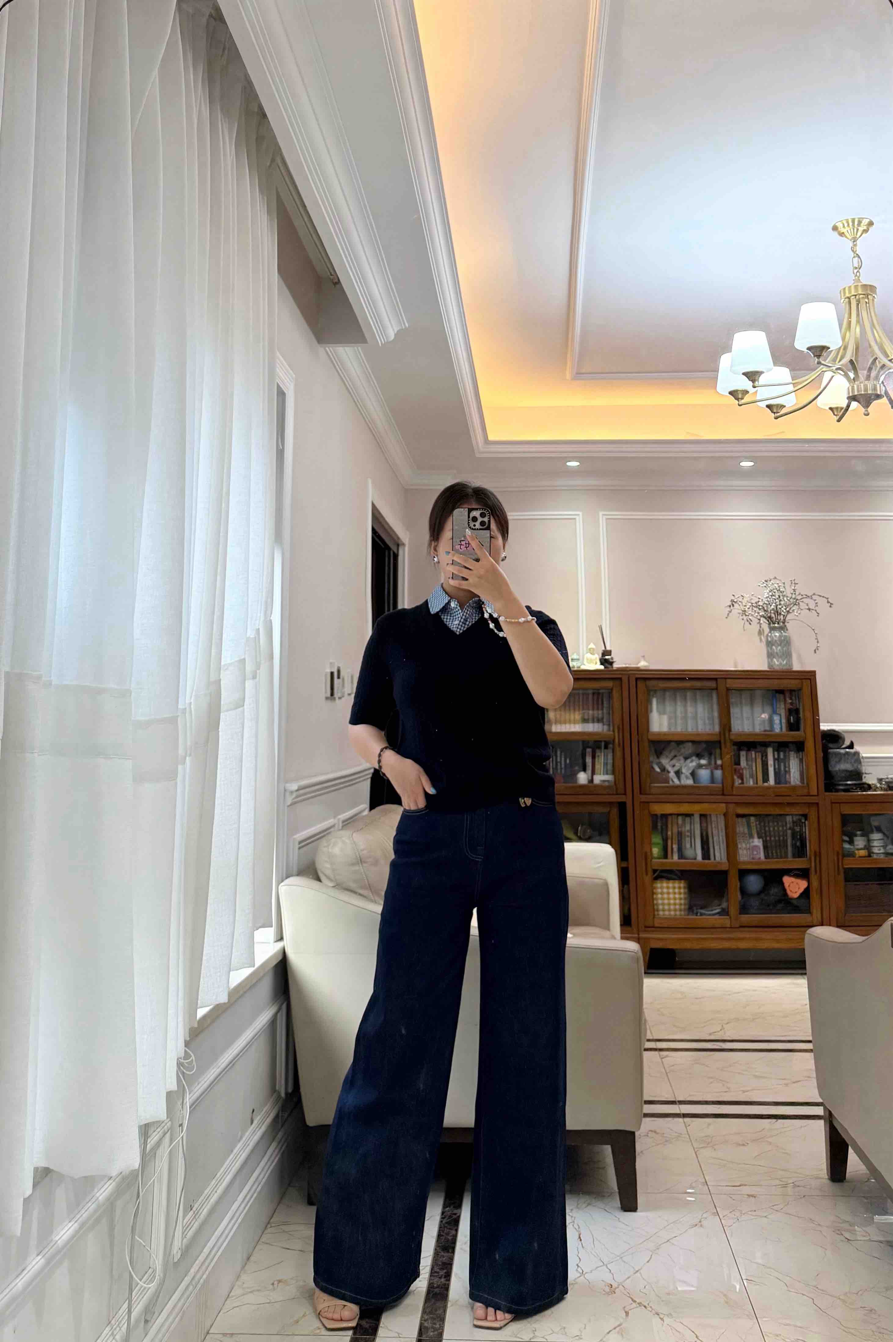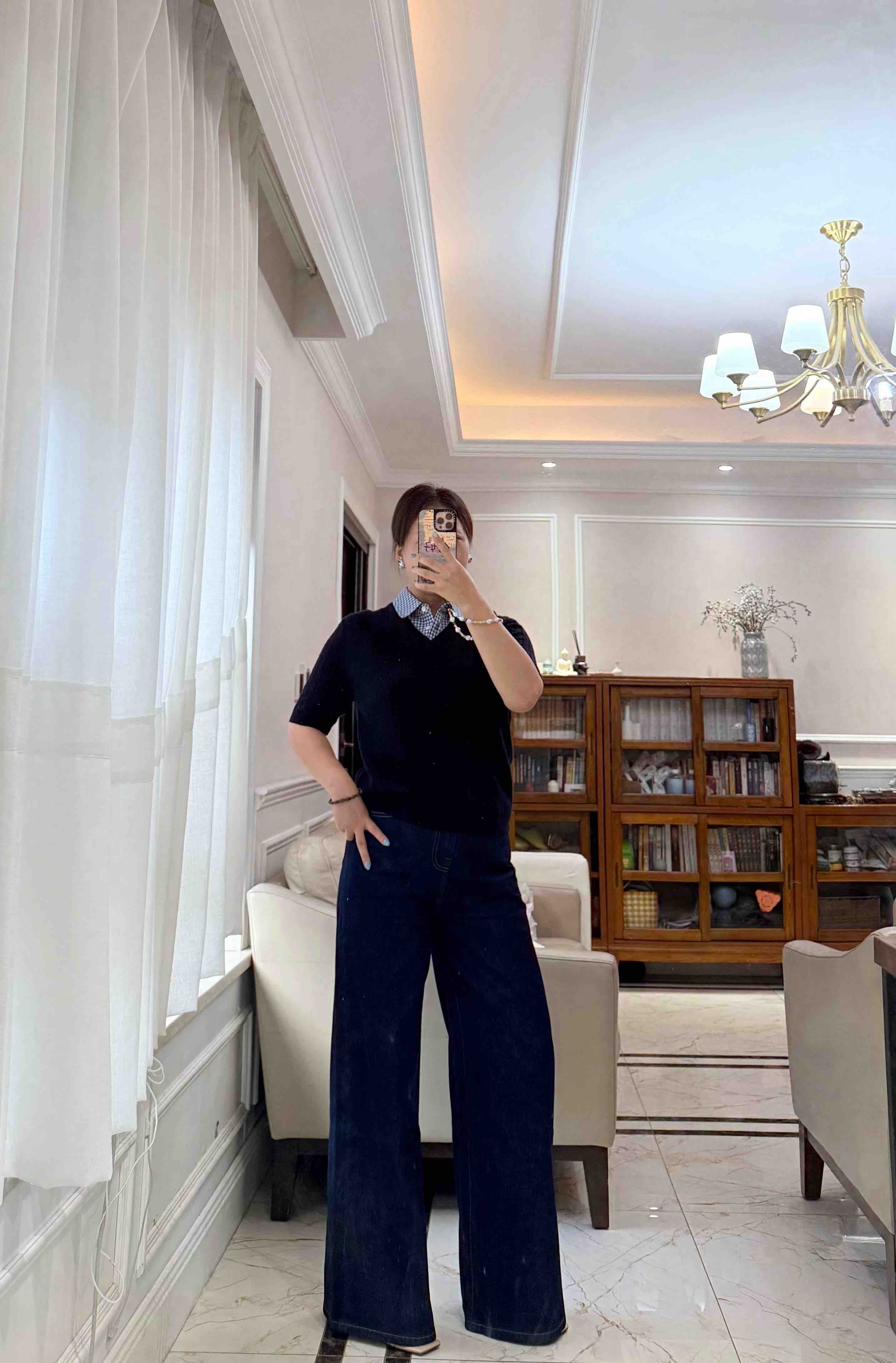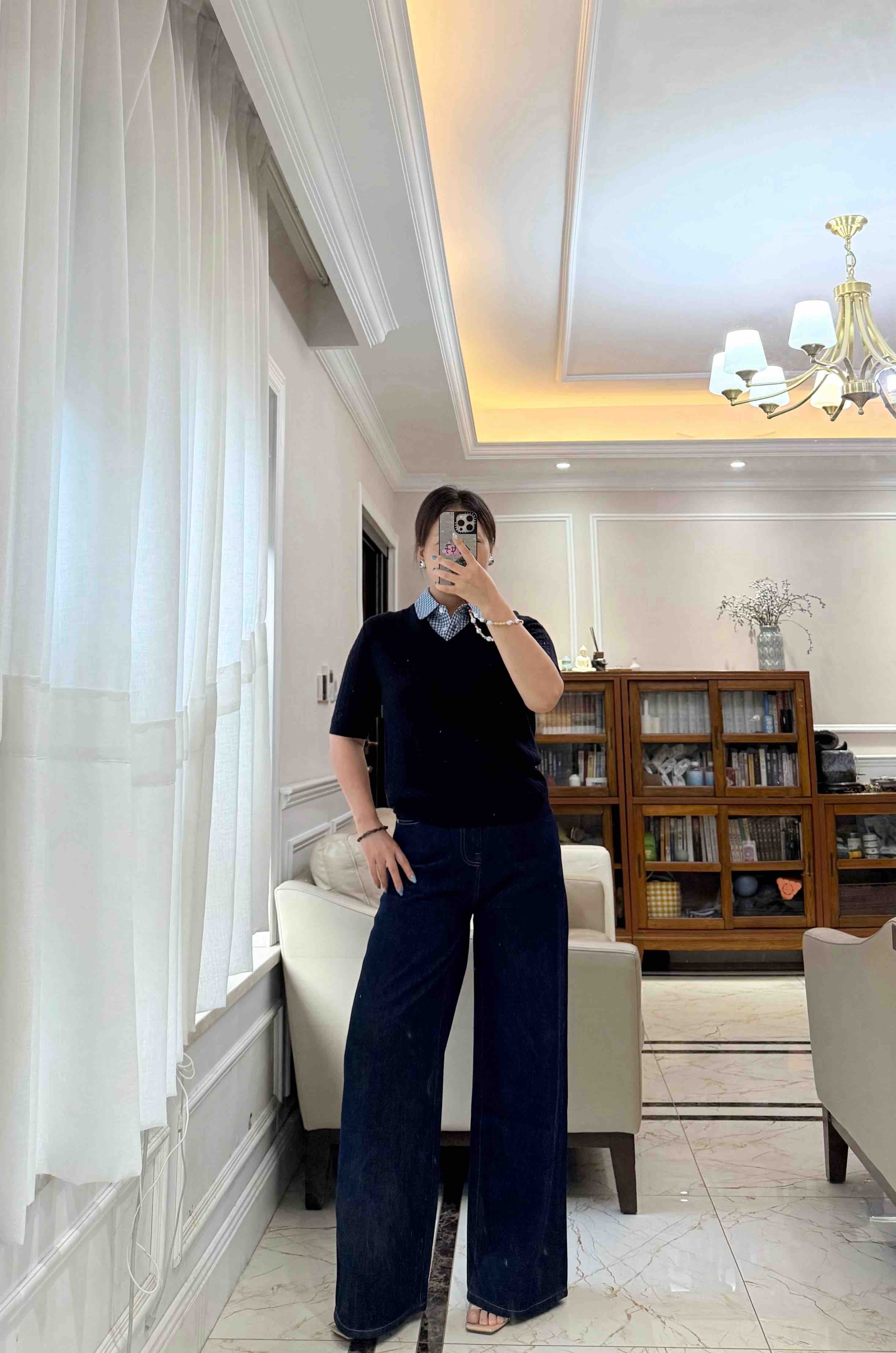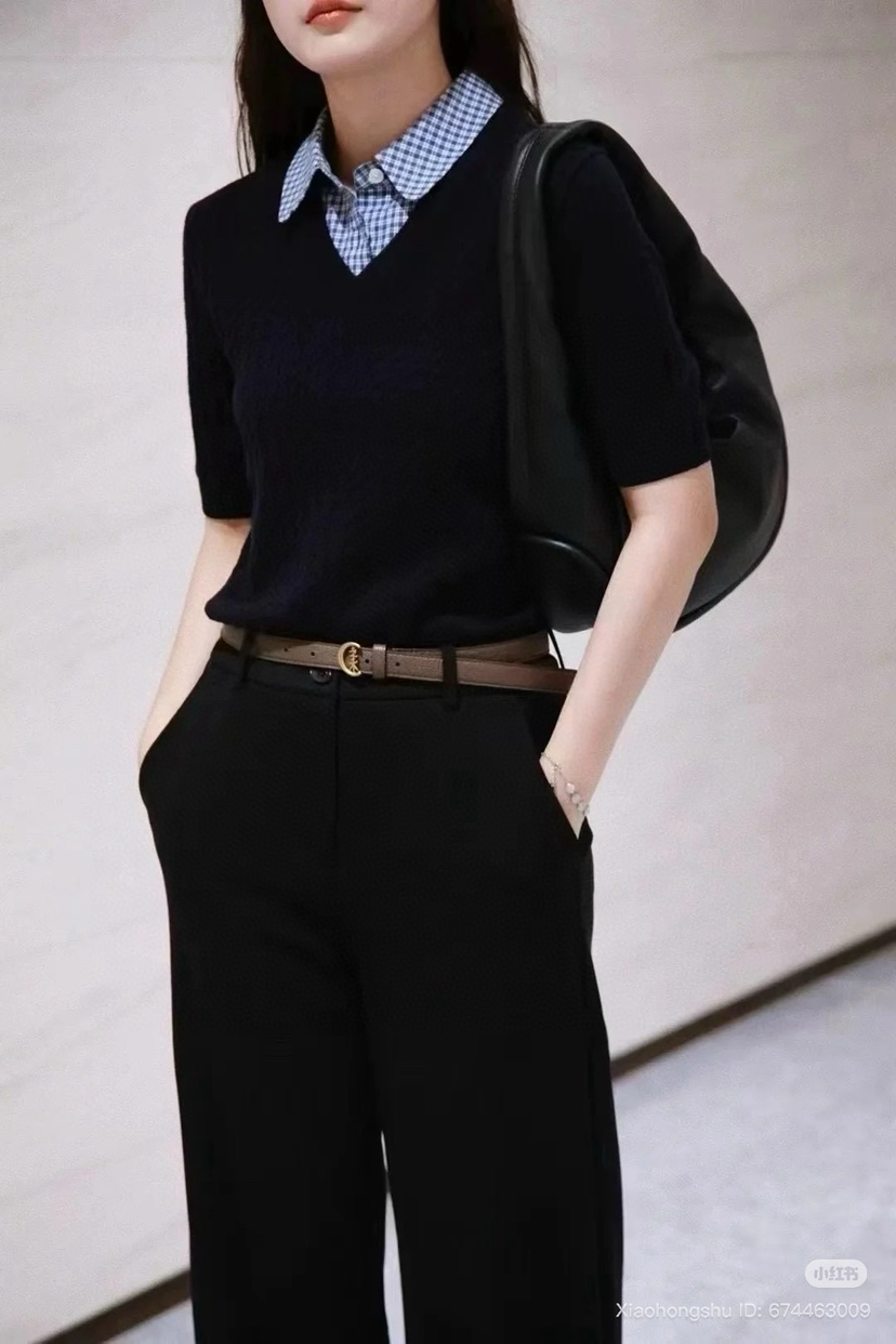 小禾 假两件 衬衫领针织长袖,真的有点miu的那种叠穿感觉。
