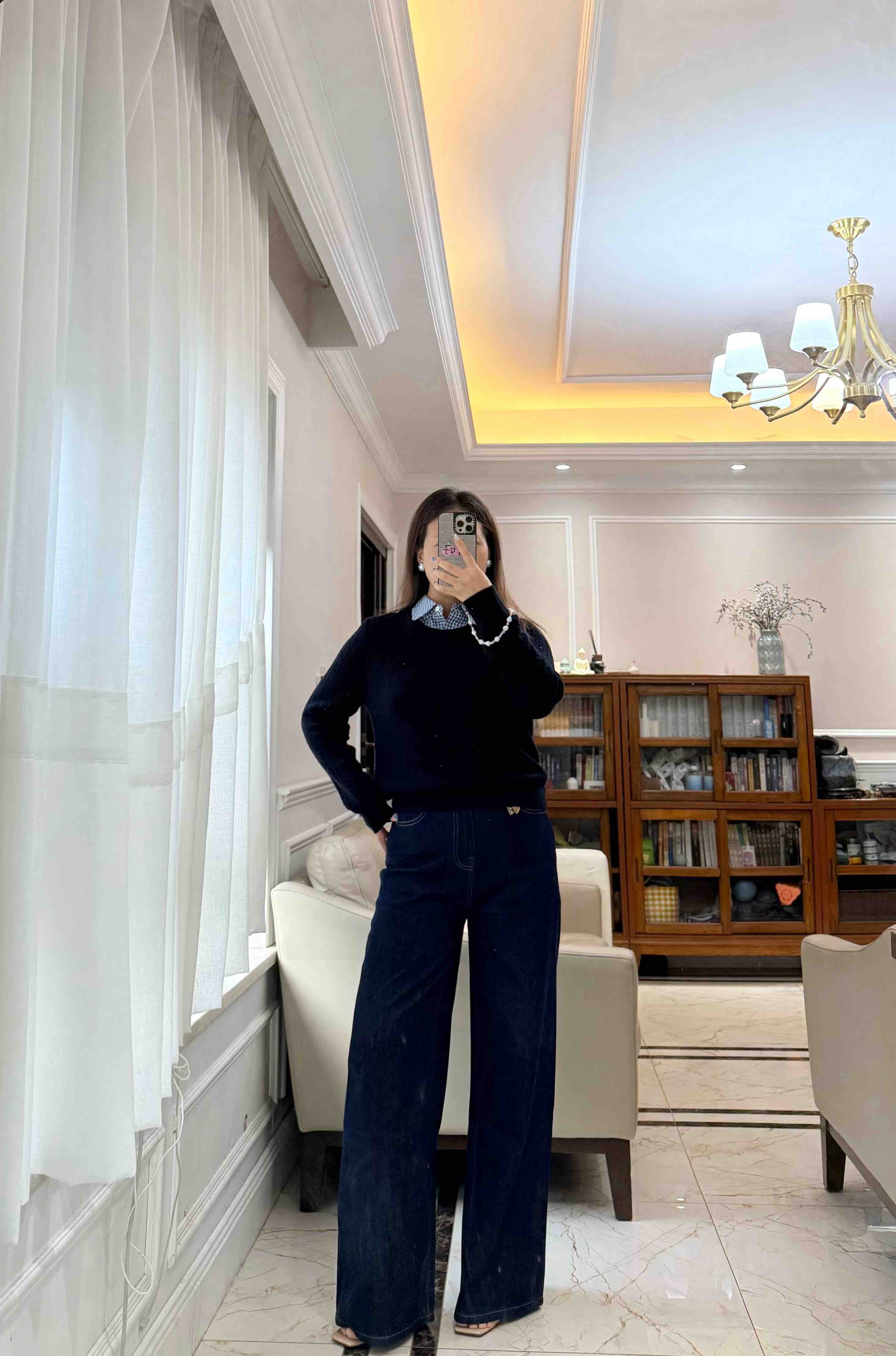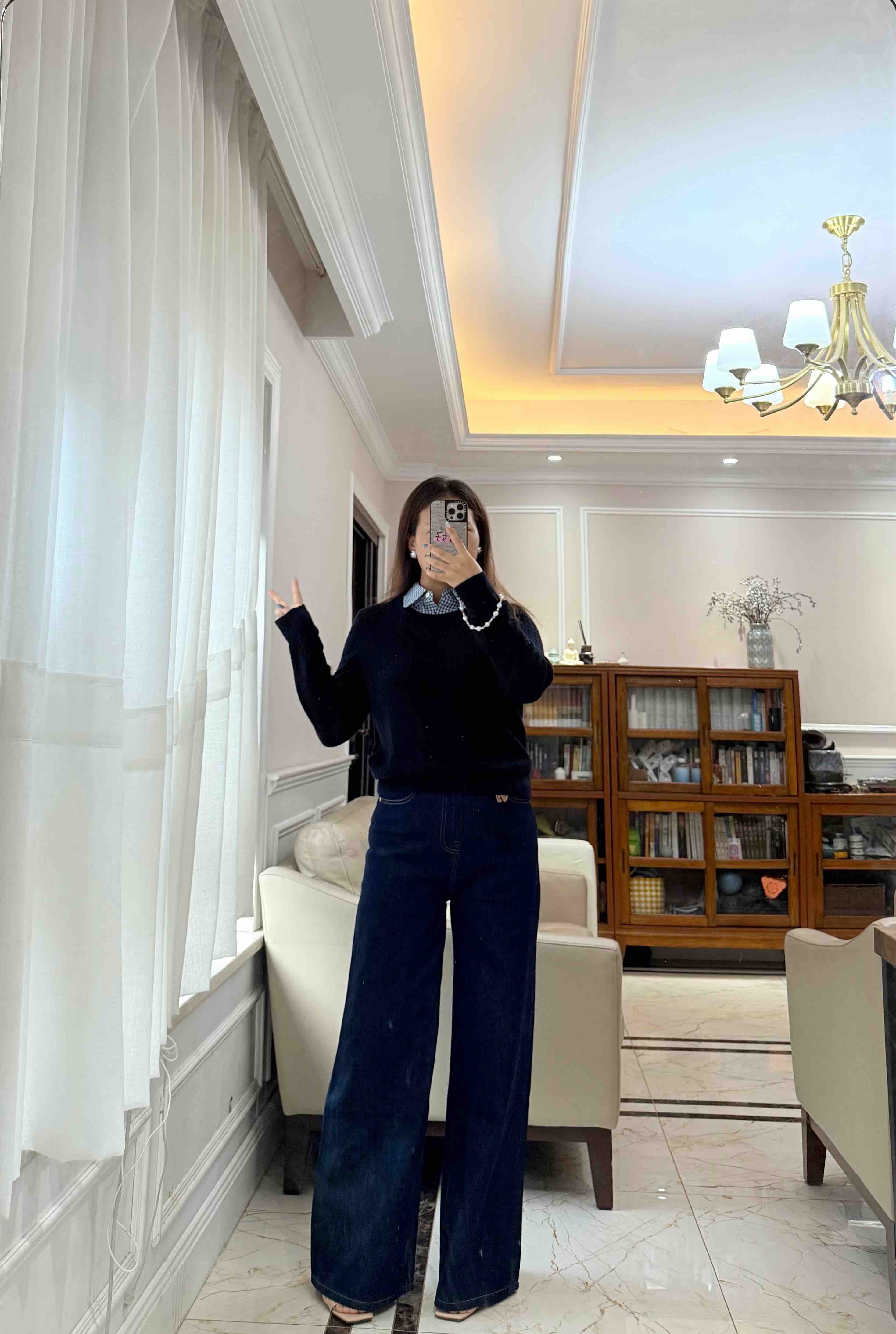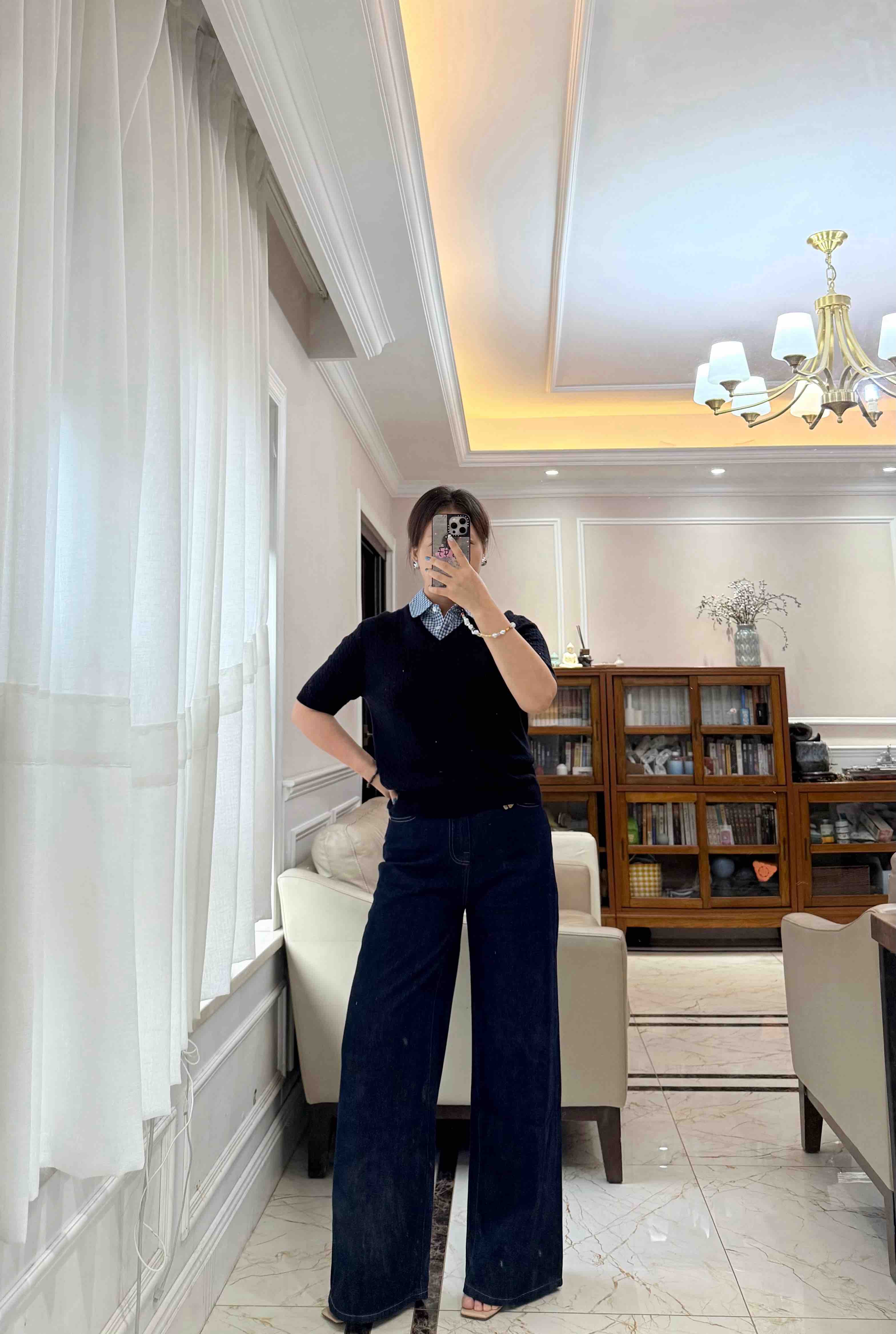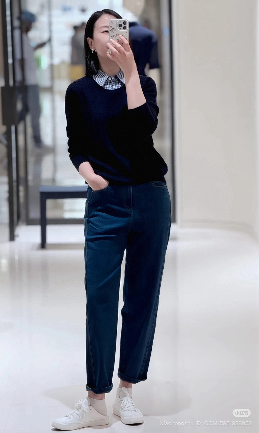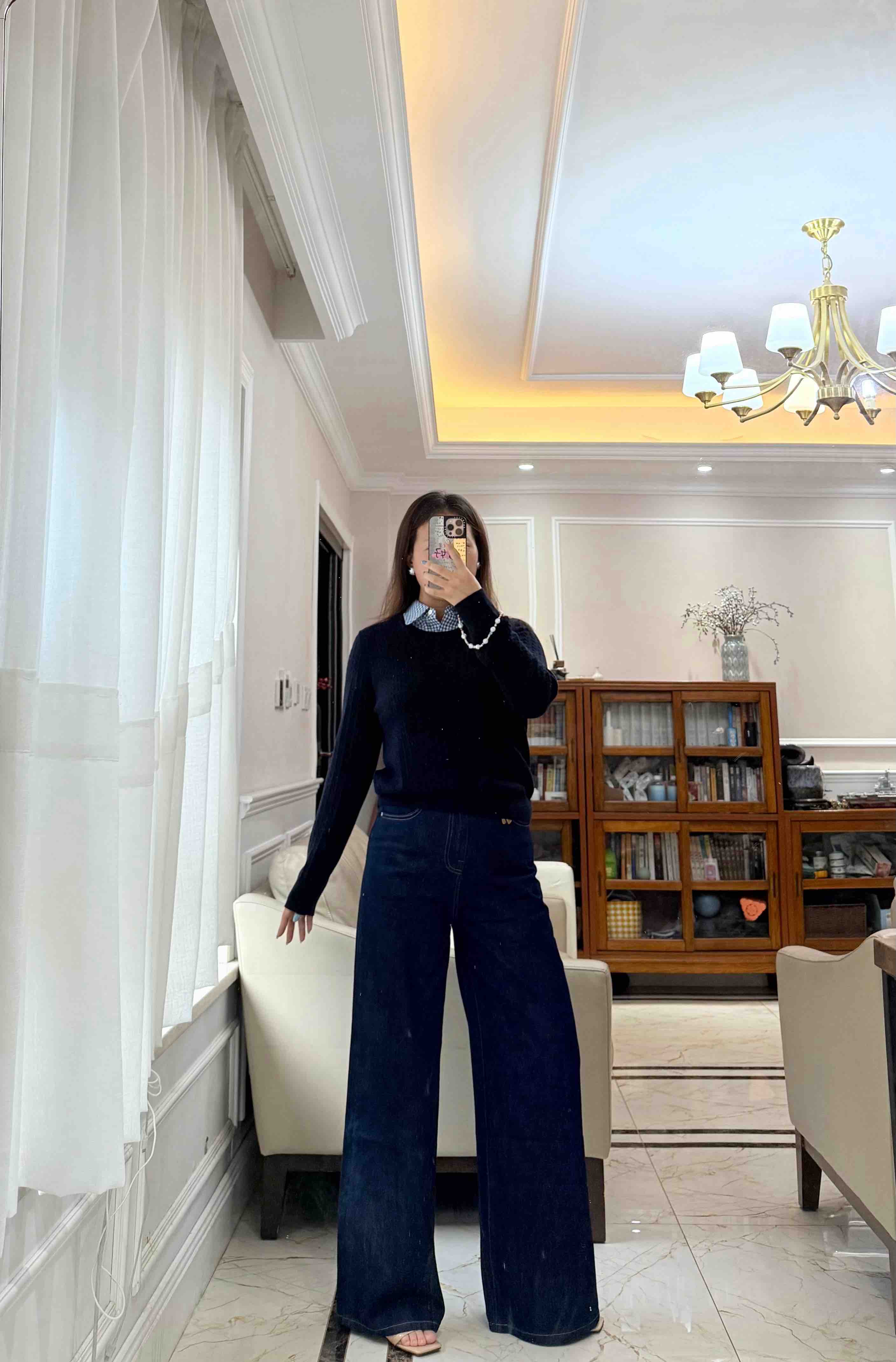 小禾 假两件 衬衫领针织长袖,真的有点miu的那种叠穿感觉。