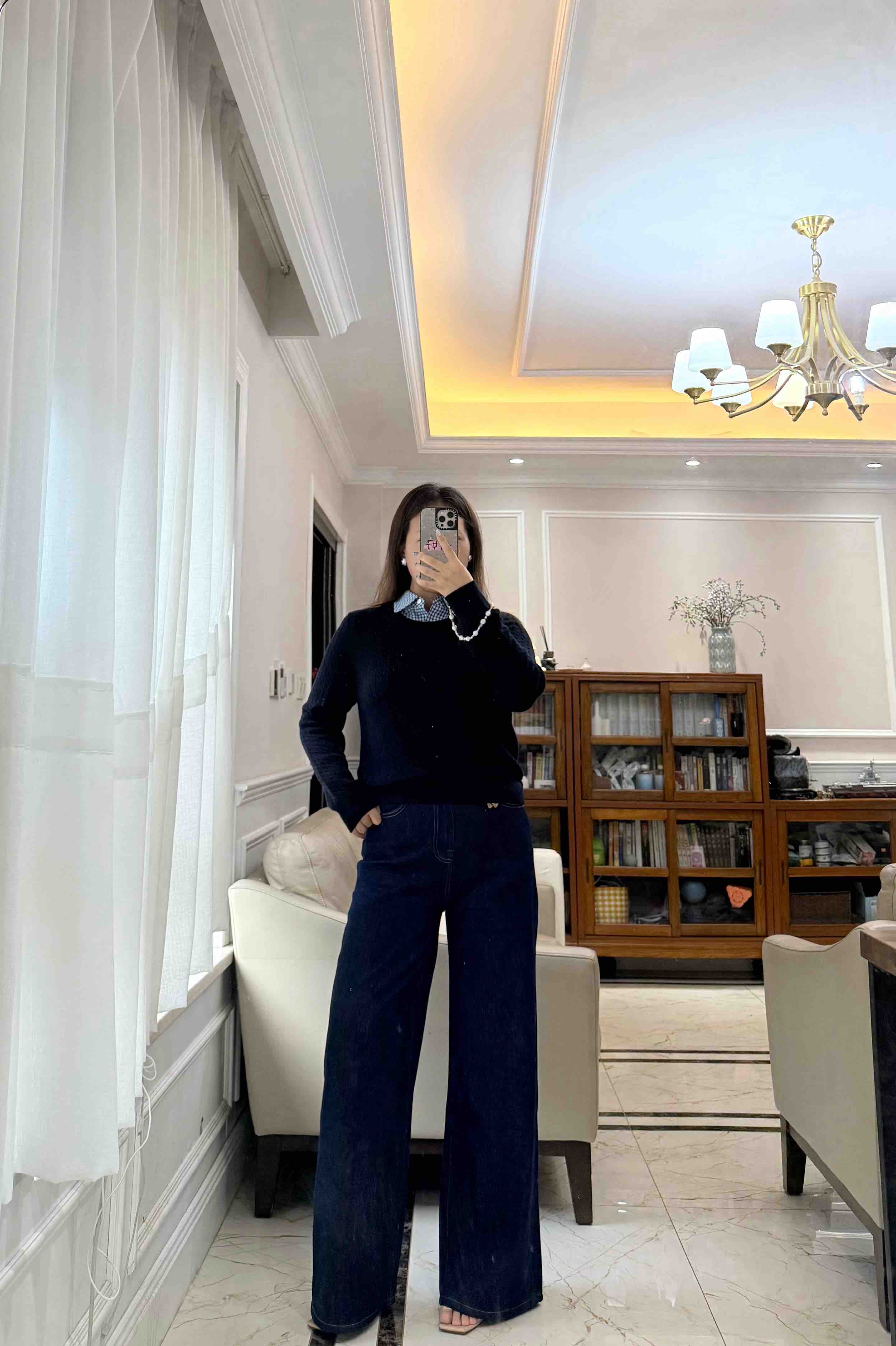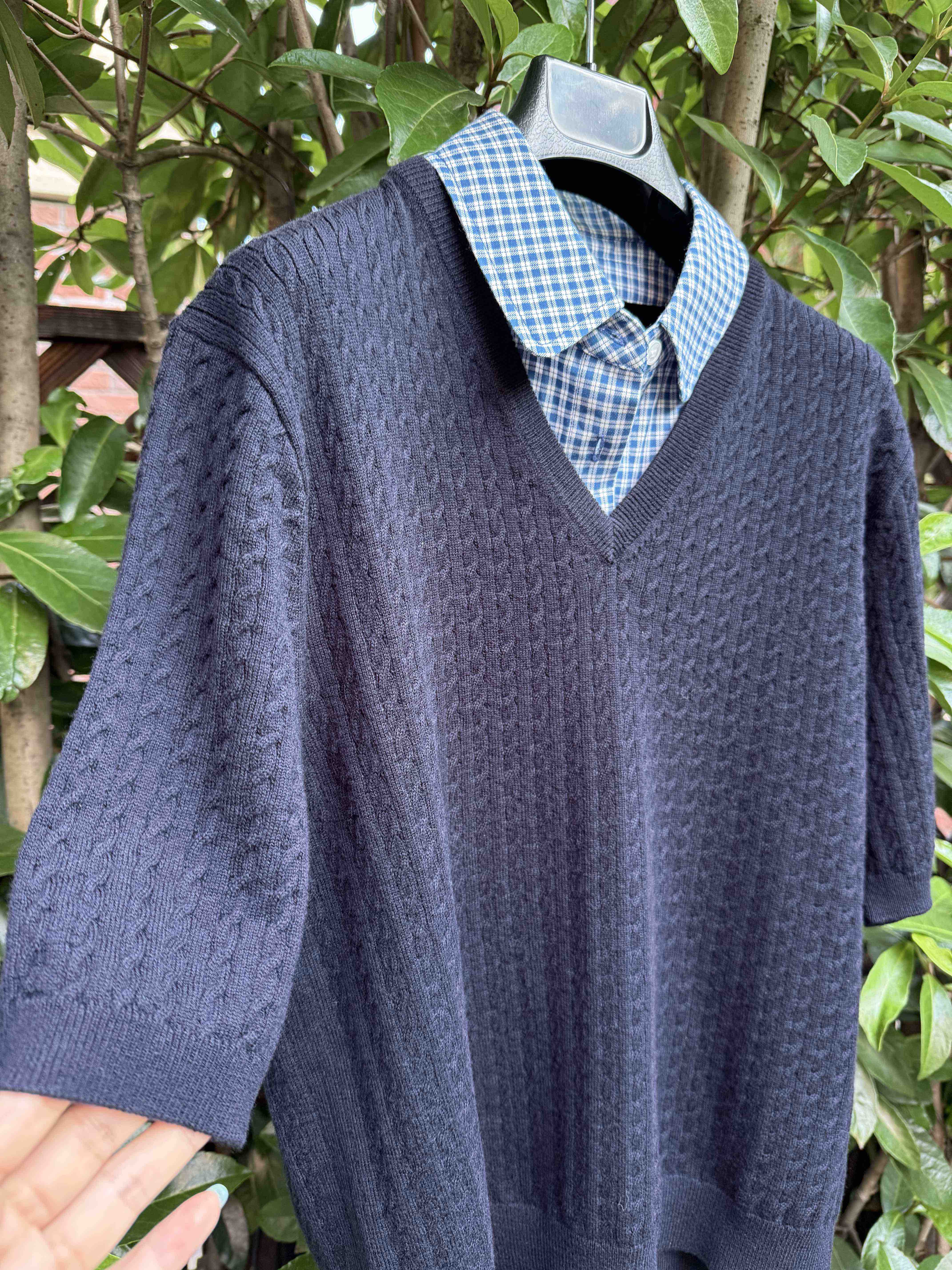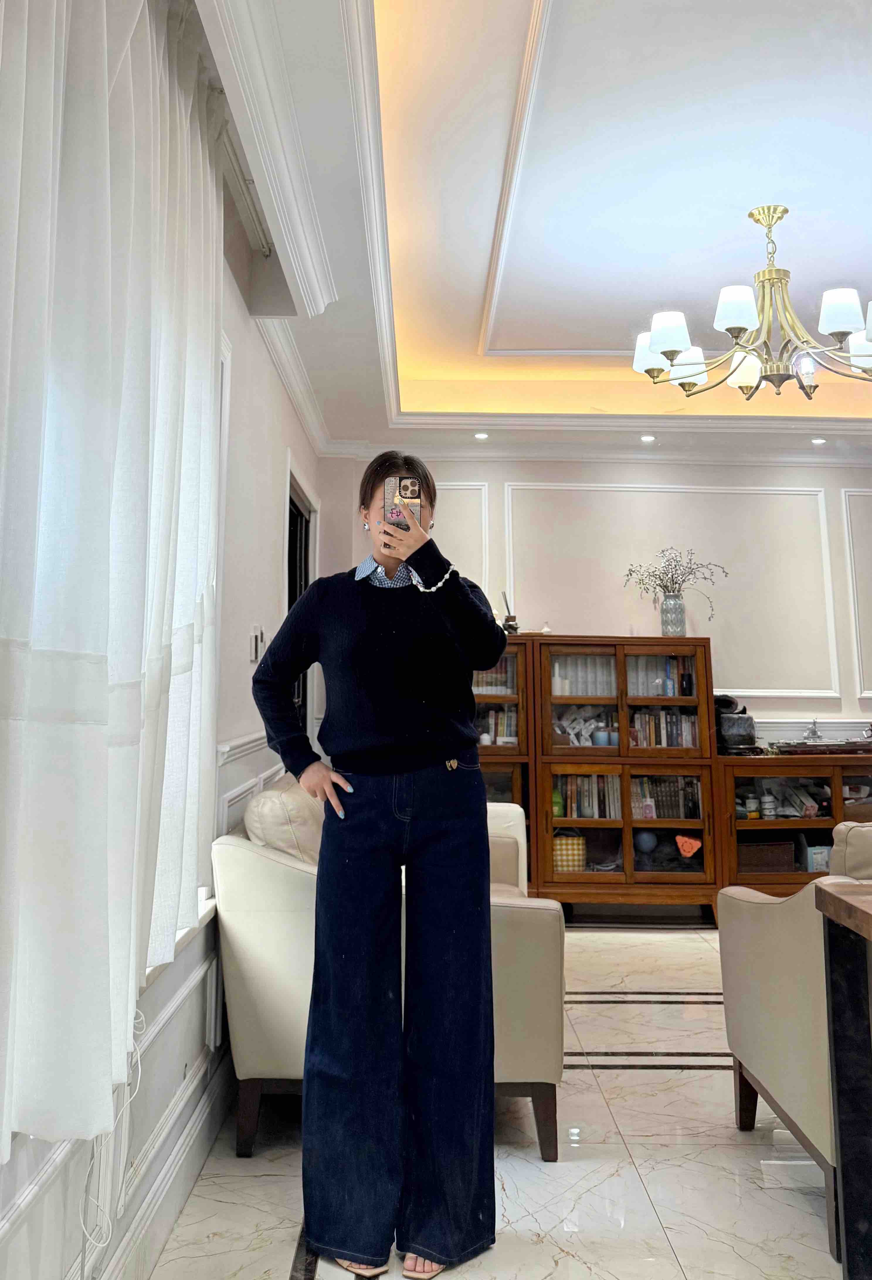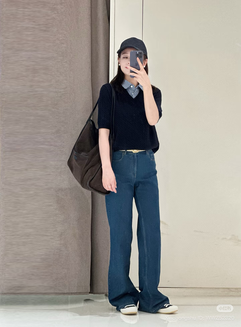 小禾 假两件 衬衫领针织长袖,真的有点miu的那种叠穿感觉。