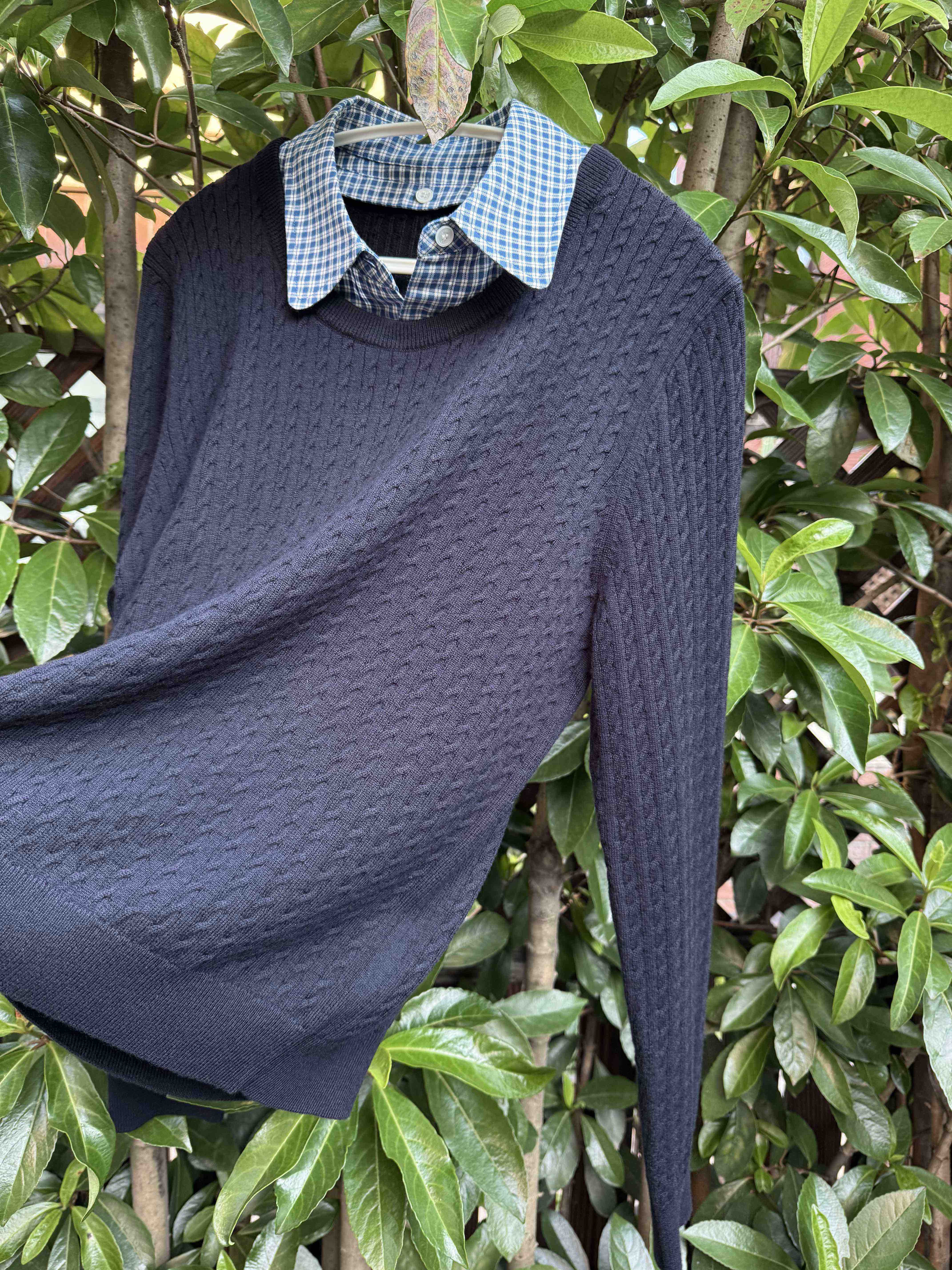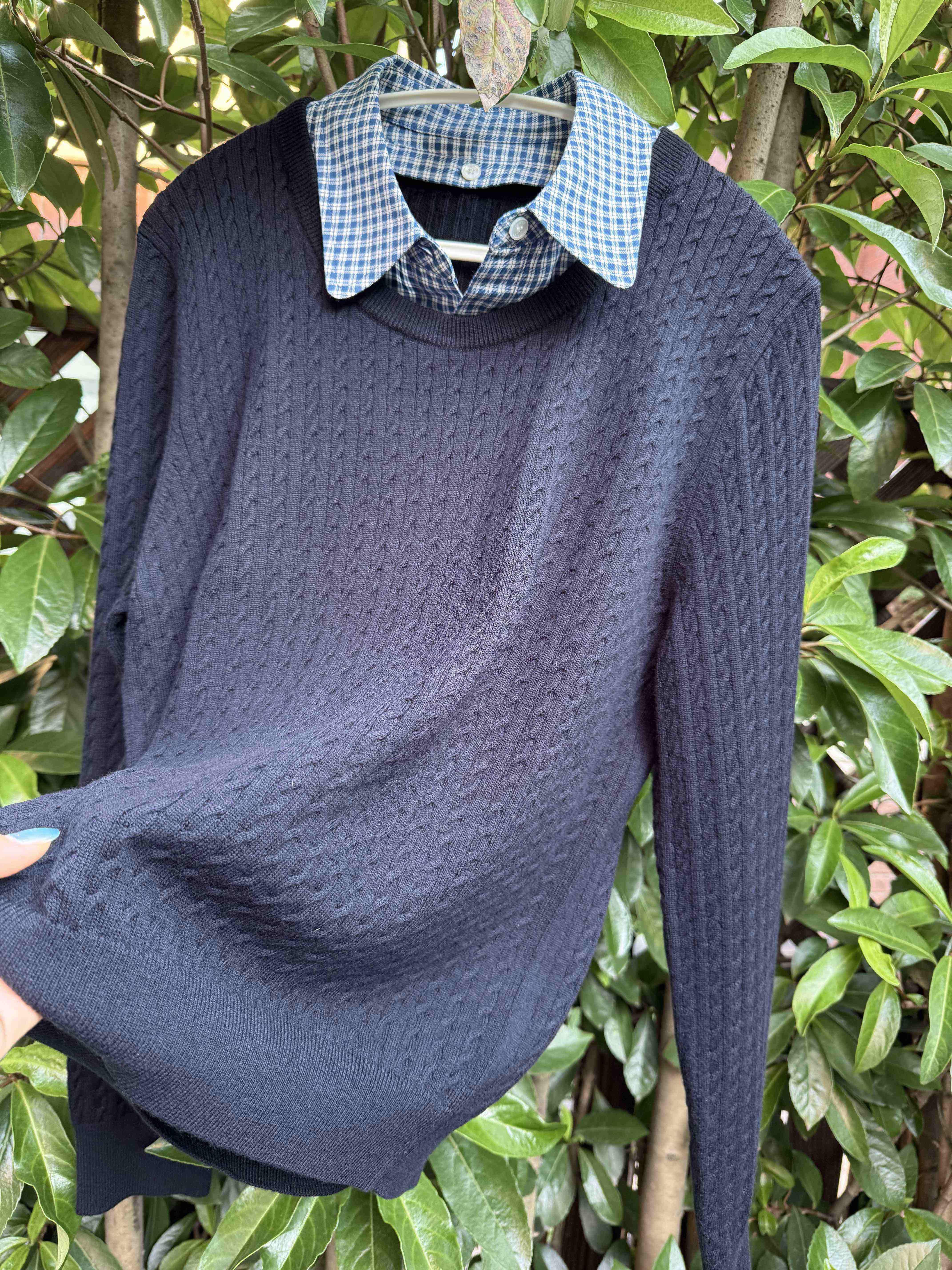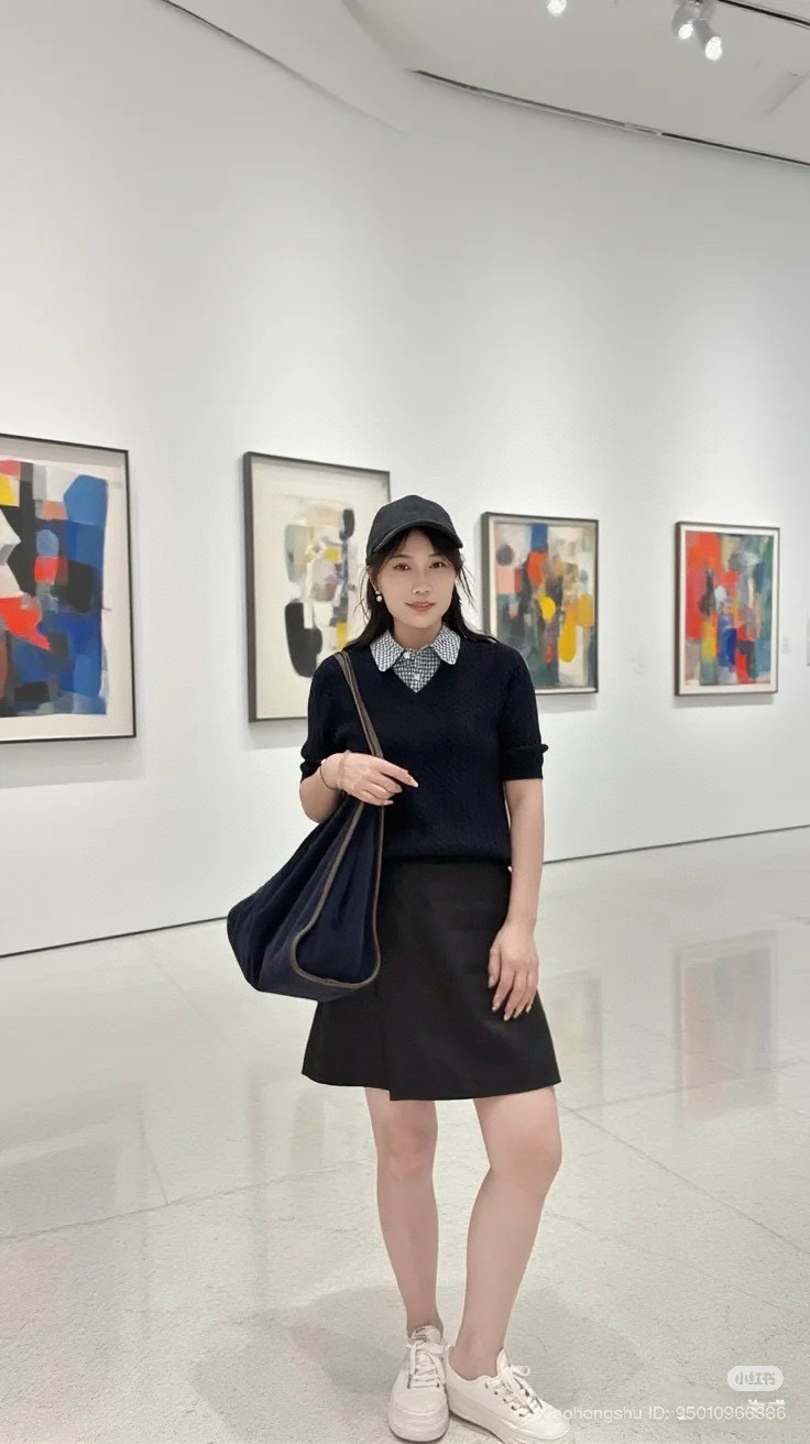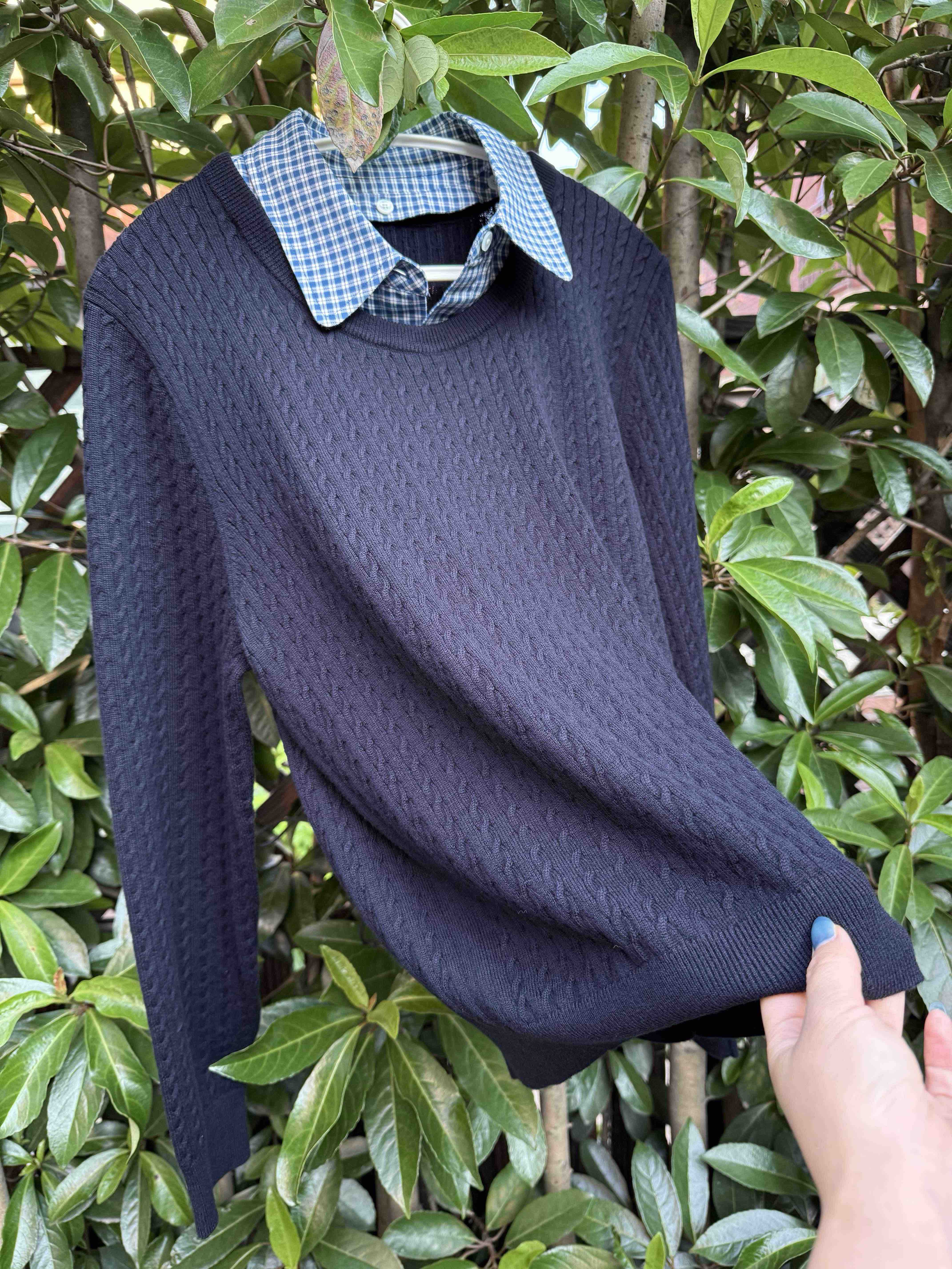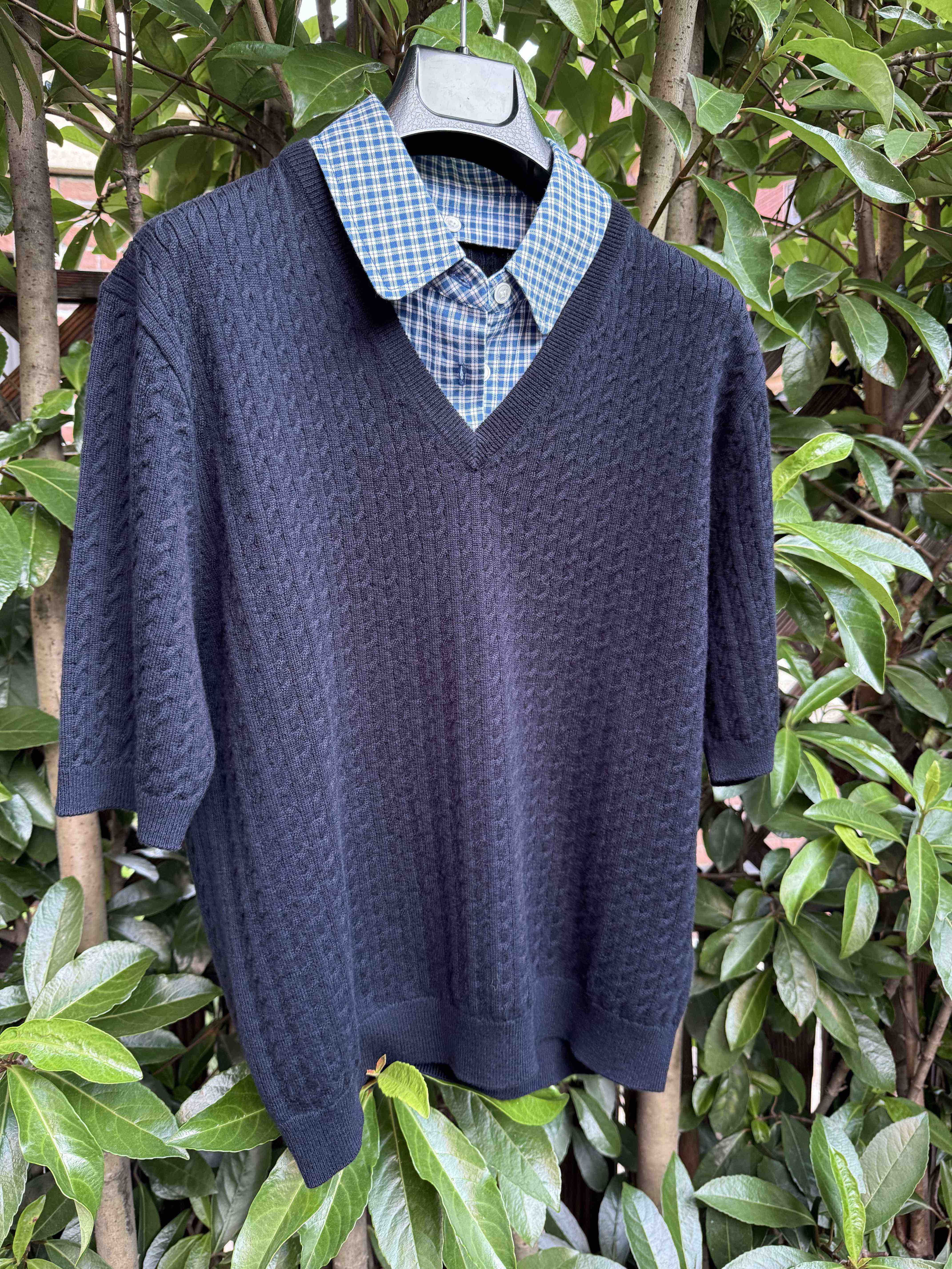 小禾 假两件 衬衫领针织长袖,真的有点miu的那种叠穿感觉。