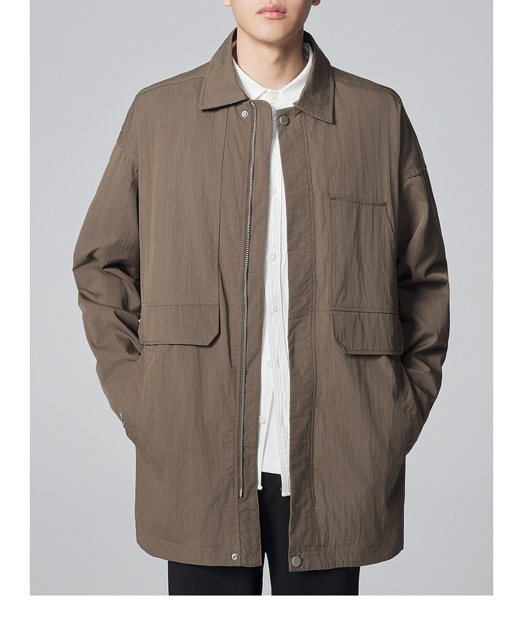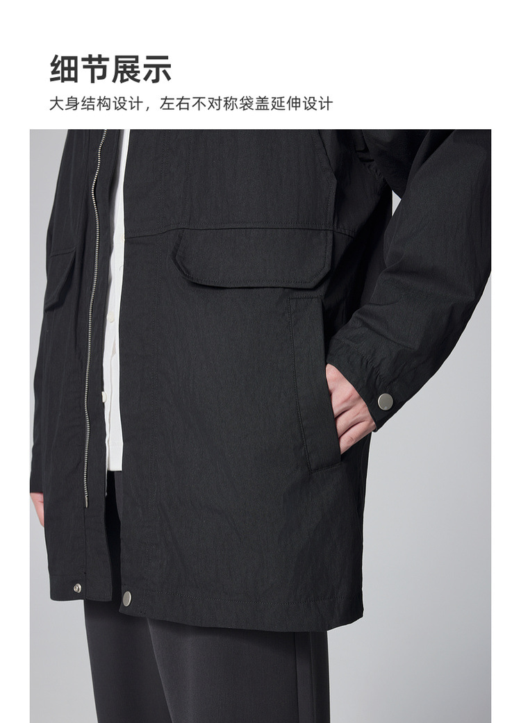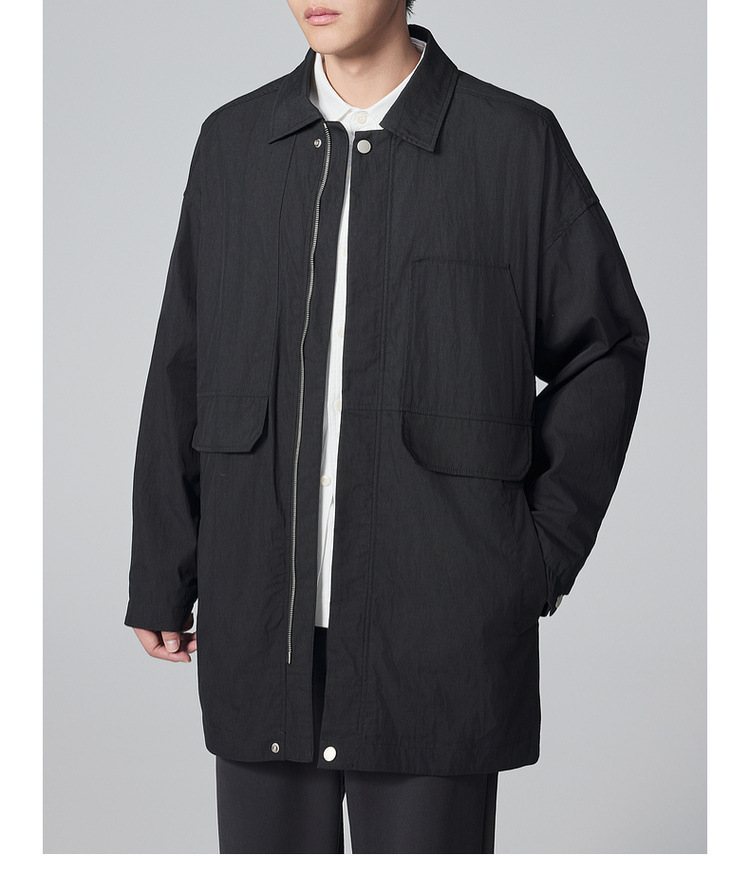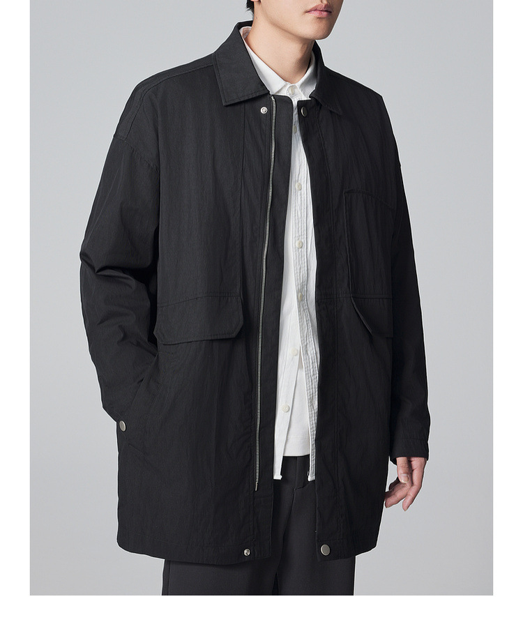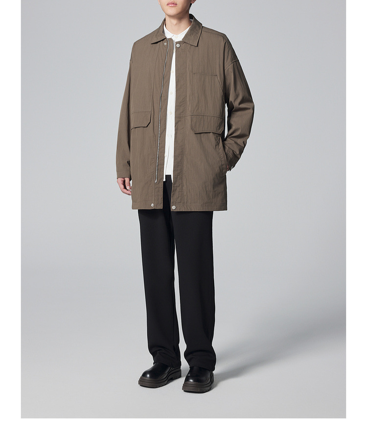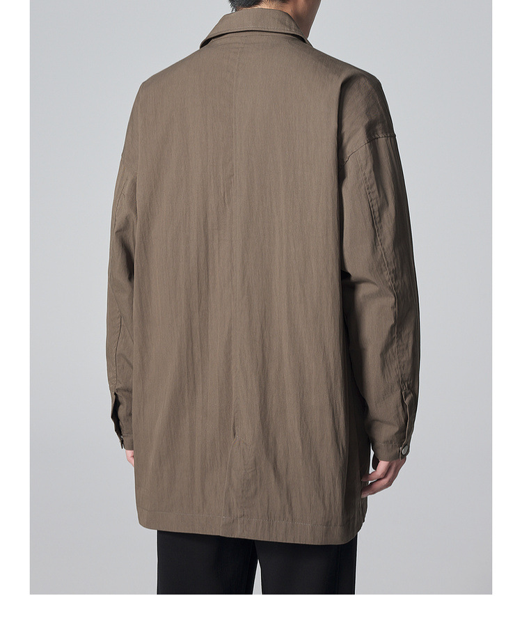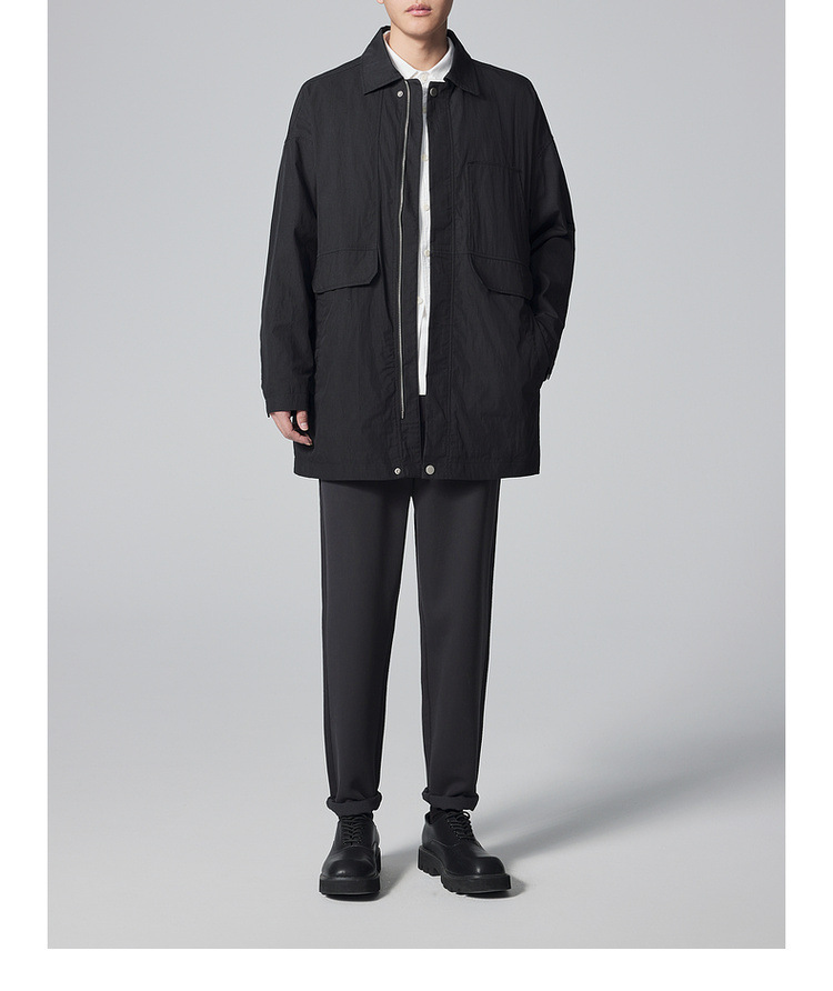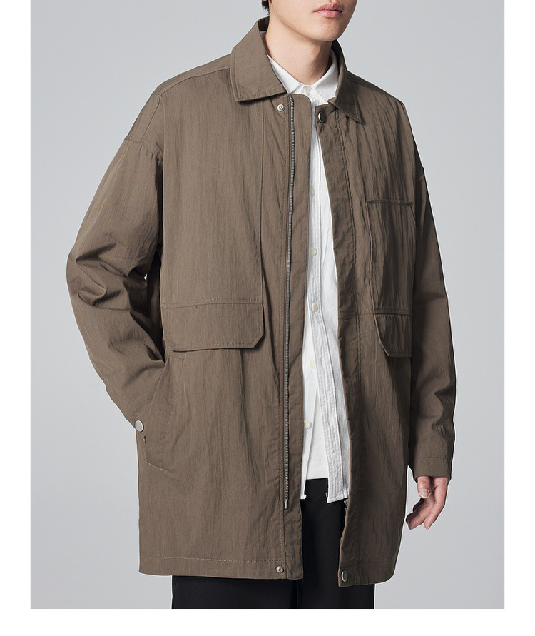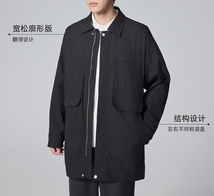 墨麦客男装斜纹肌理中长款风衣男2024秋季新款男士翻领外套81227