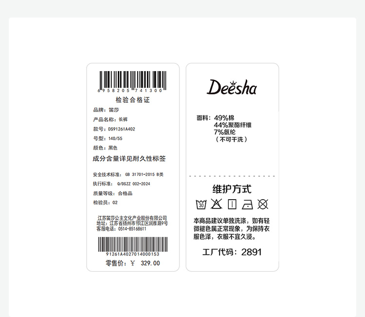 笛莎Deesha 童装女童裤子2026春新款休闲束脚运动裤