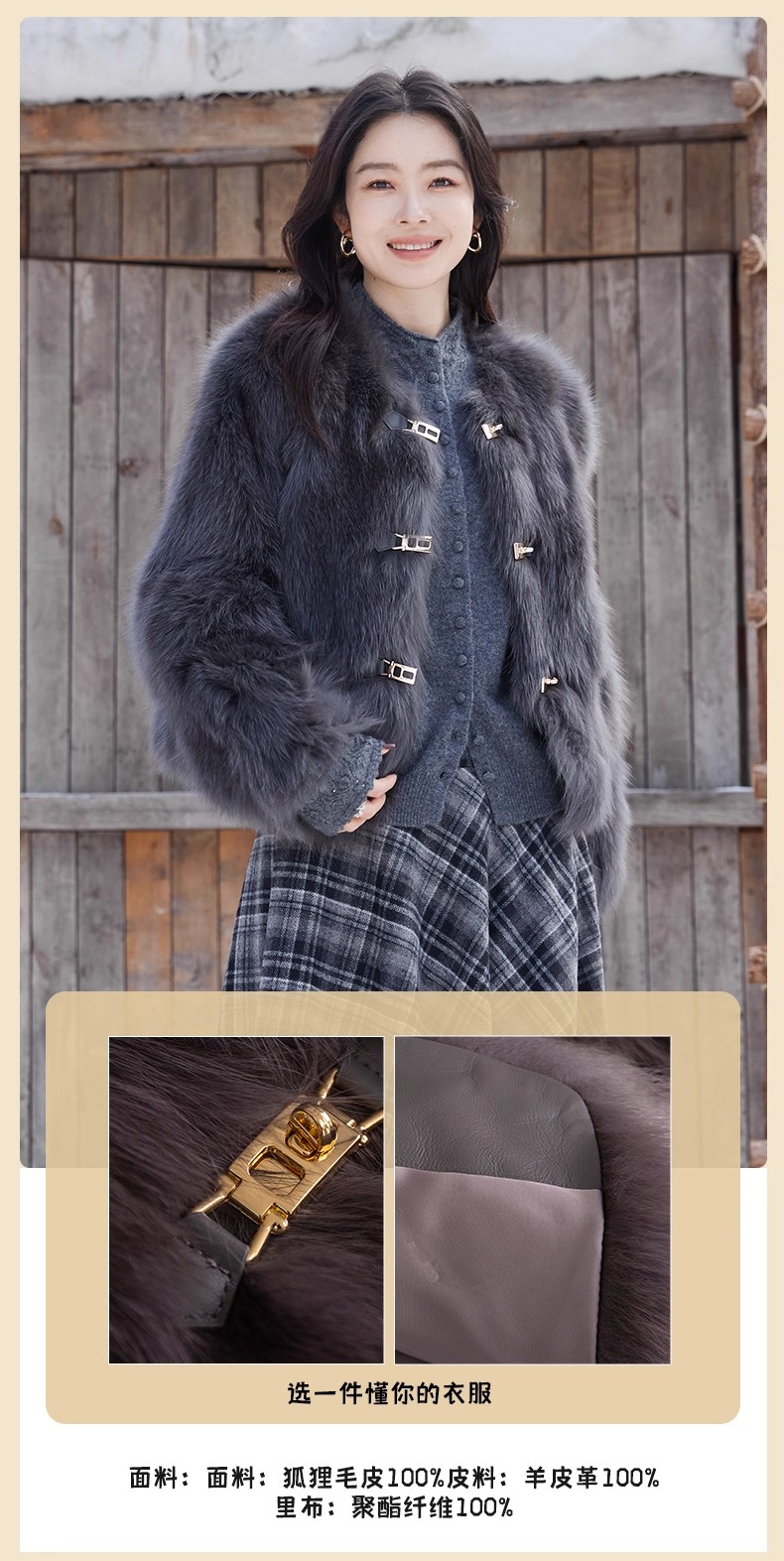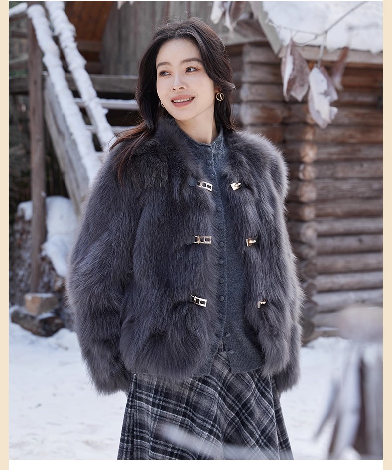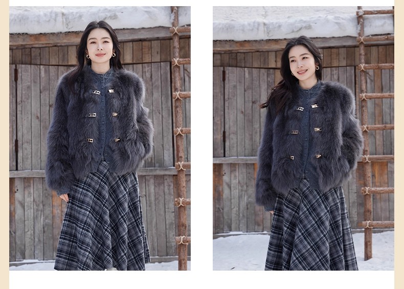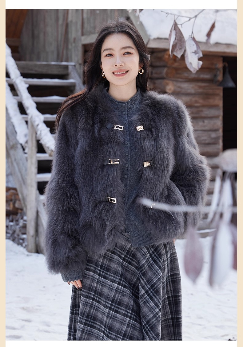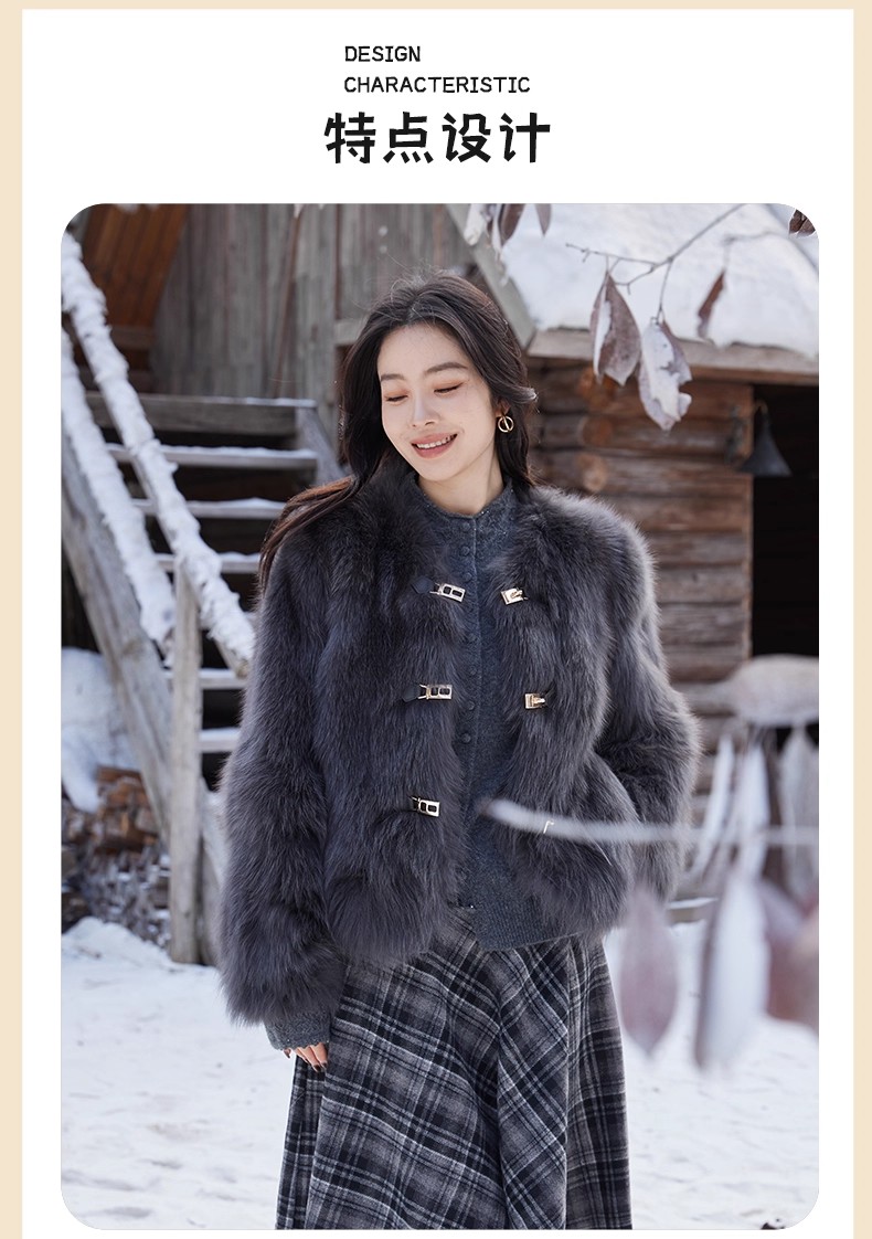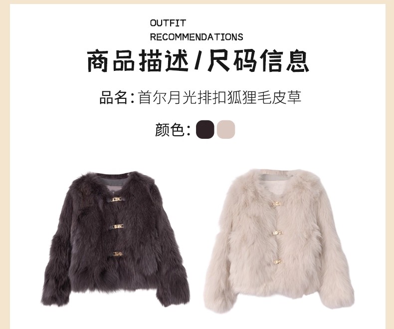 【门店同款】ENJOY冬季“暖冬软糖”首尔月光排扣狐狸毛皮草 168143321