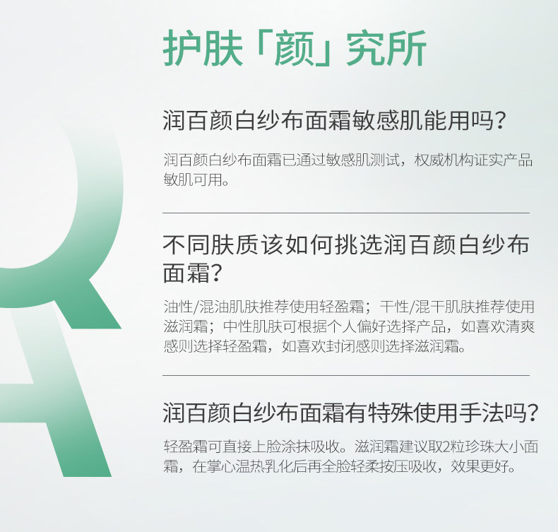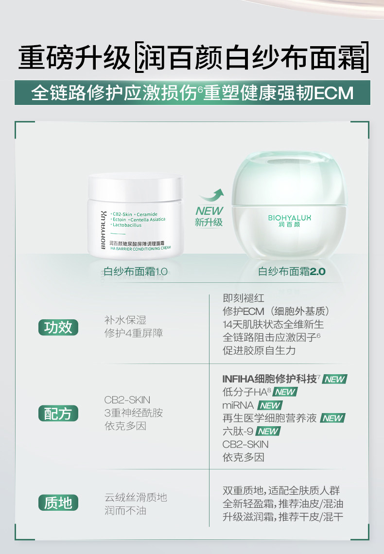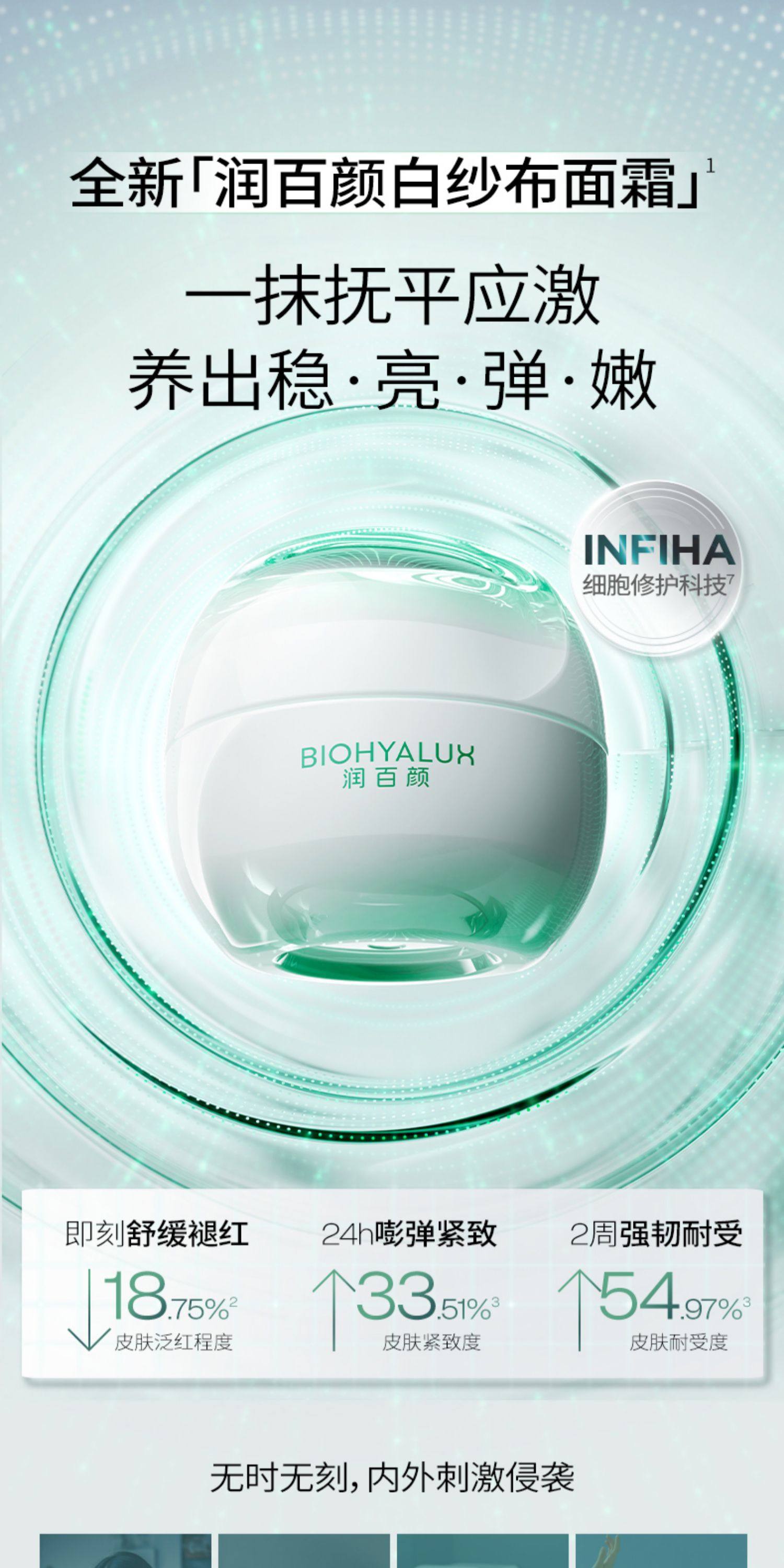 润百颜INFIHA白纱布面霜50G 敏感肌修护泛红华熙生物