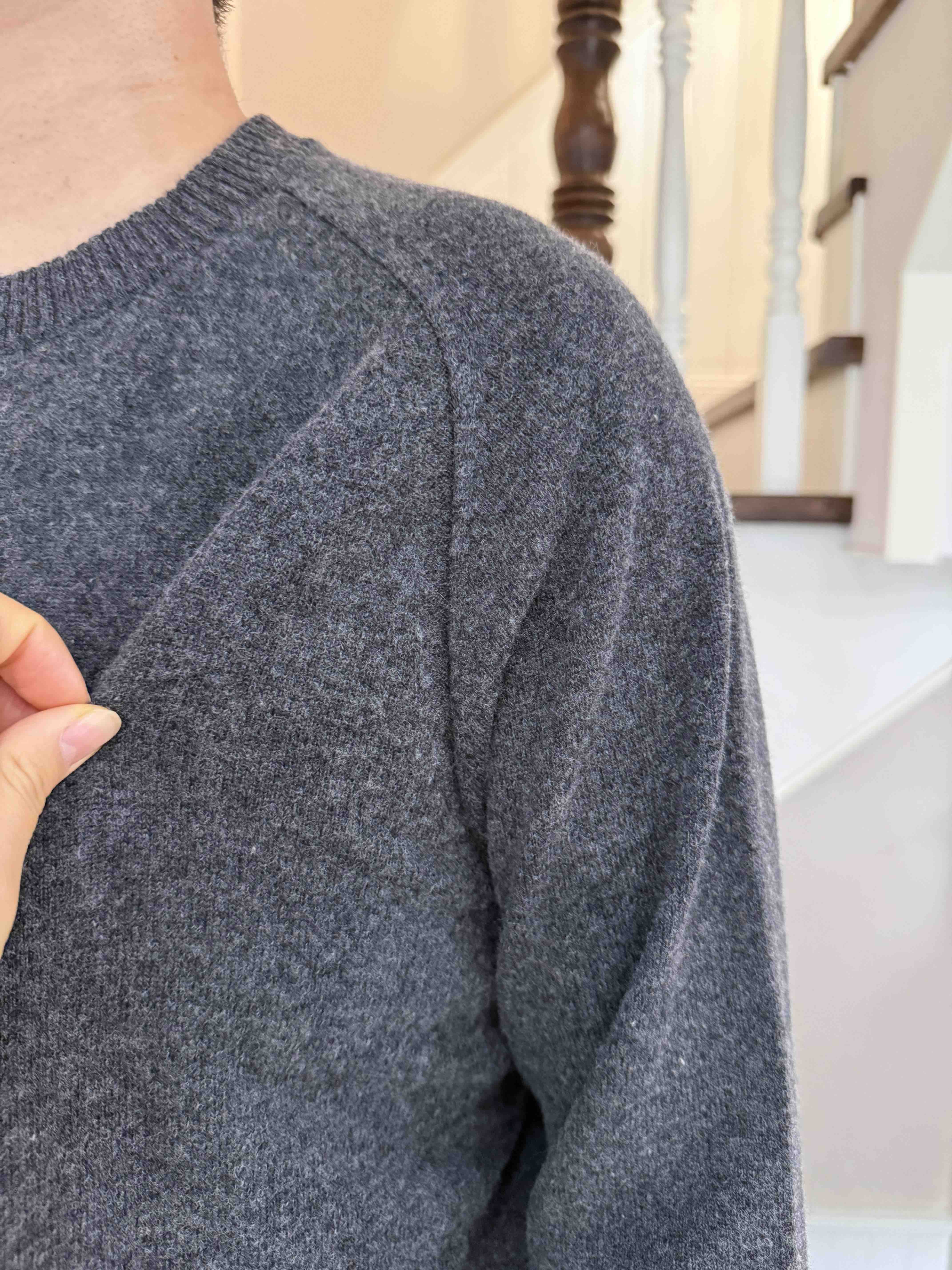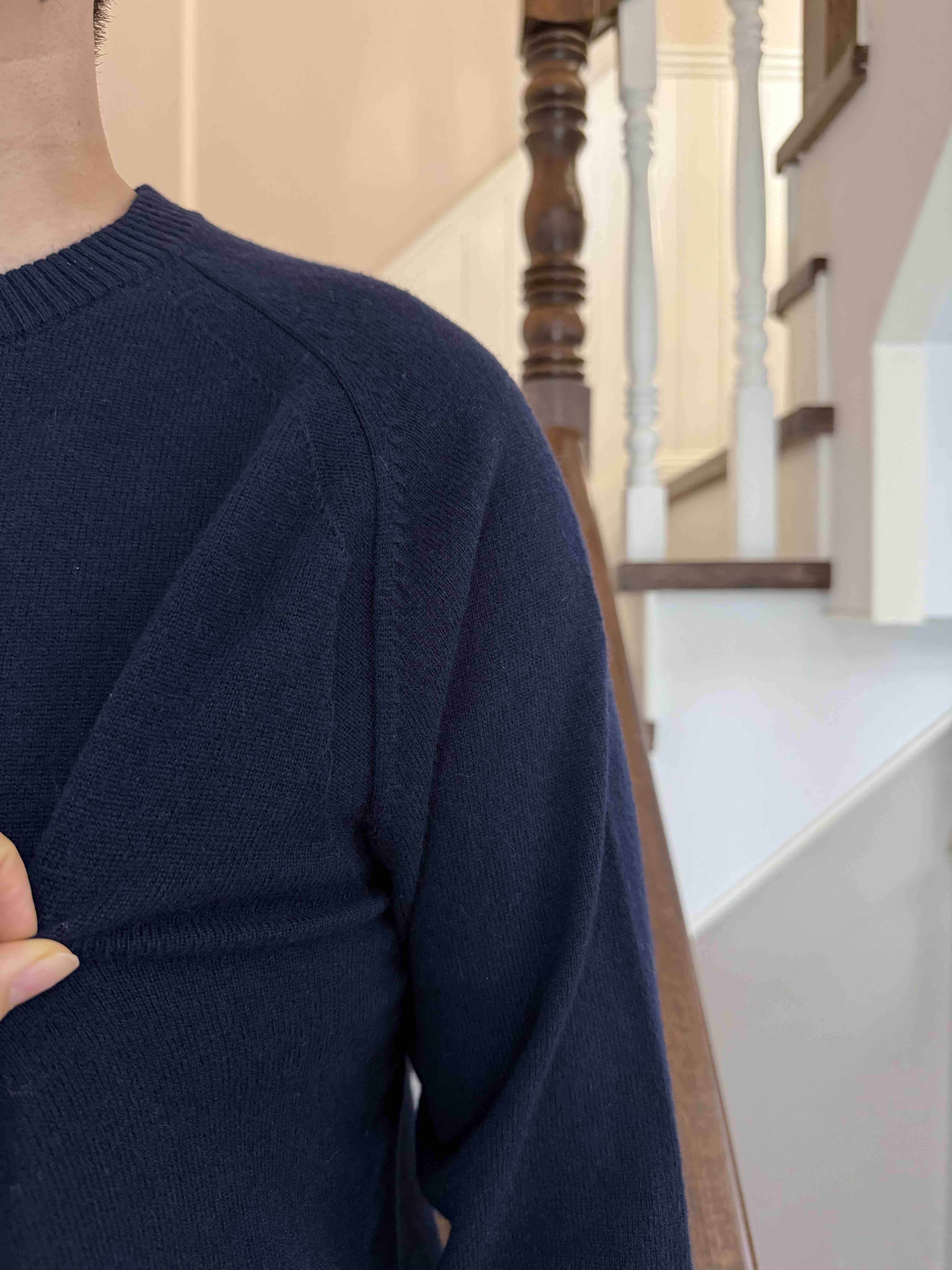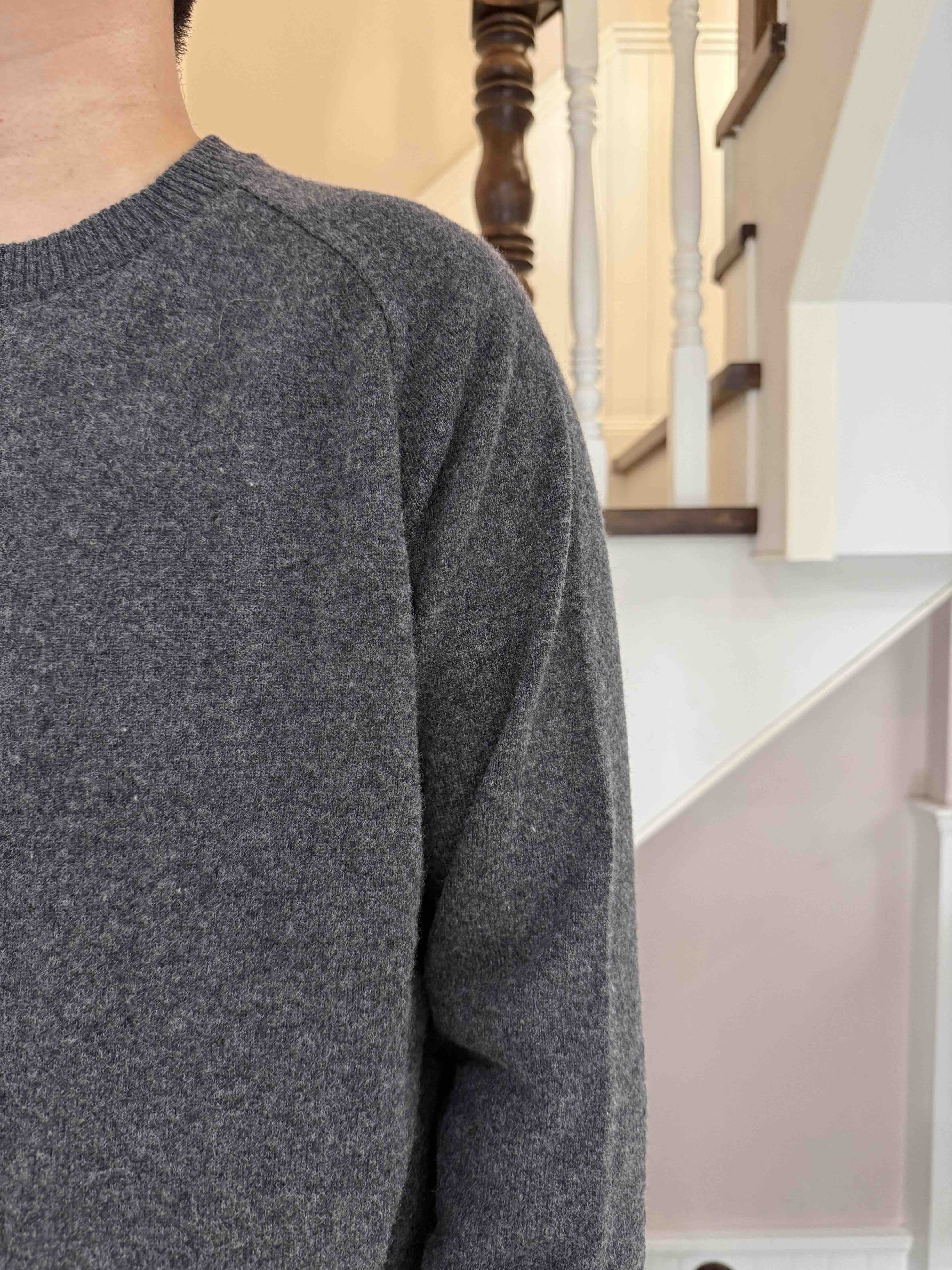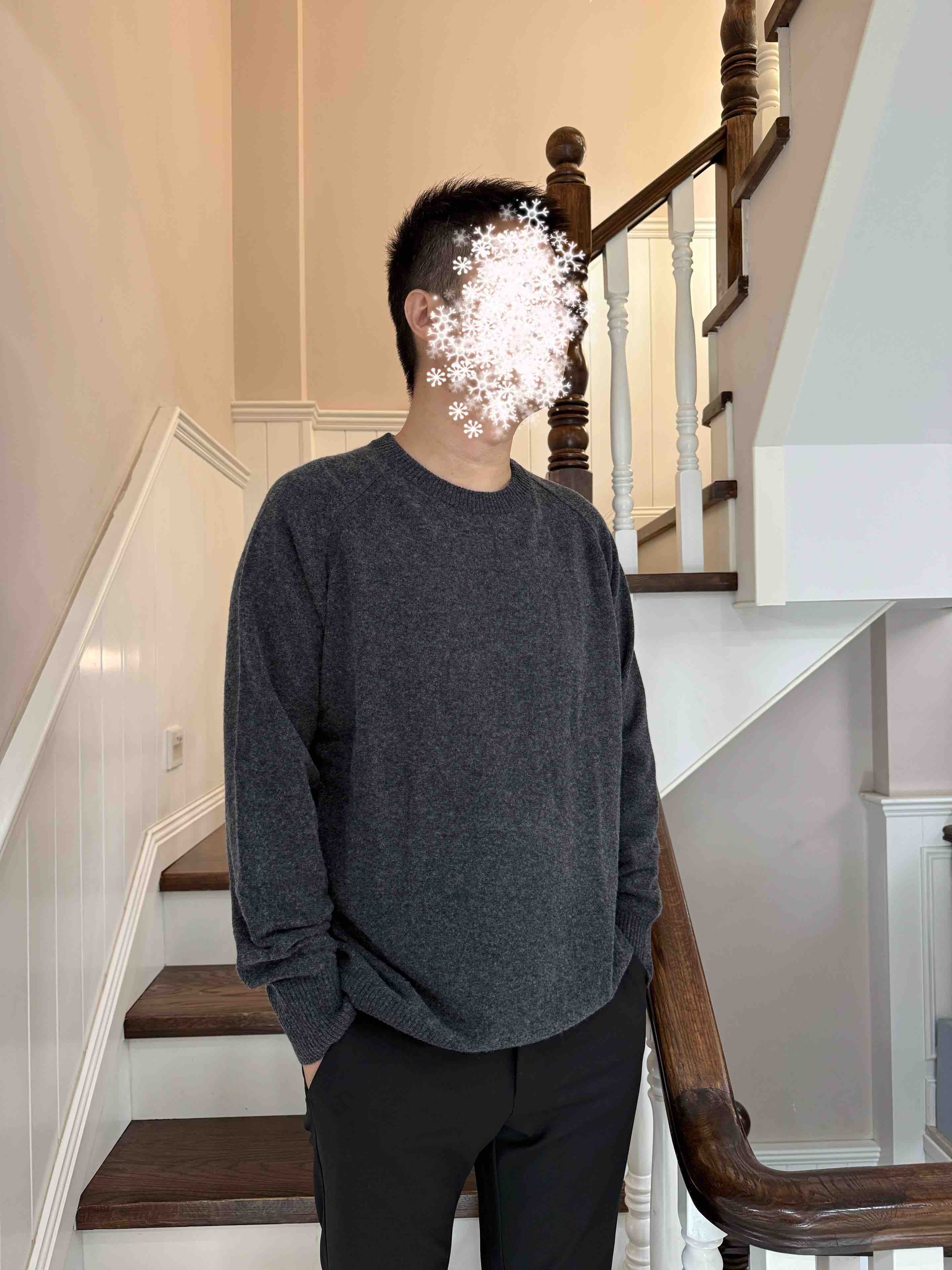 原价不提,帮实力工厂清货,纯色圆领针织套头衫,肩膀有低调的肌理分割,儒雅气质清爽,真实材质是50羊毛50羊绒。