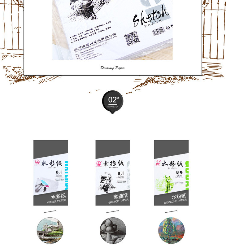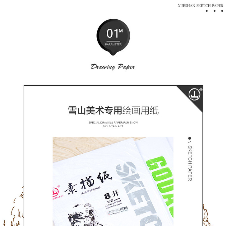 雪山素描纸 水彩纸 水粉纸 8开160g(20张) 38cm*27cm