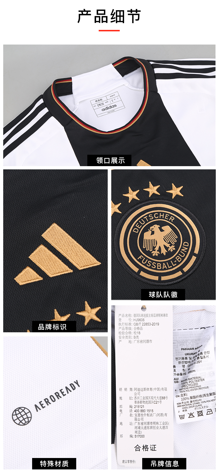 ADIDAS/阿迪达斯DFB H JSY2022世界杯德国队球迷版主场比赛球衣HJ9606