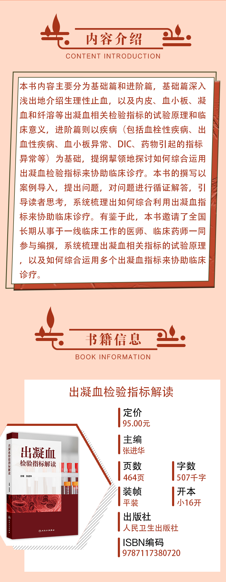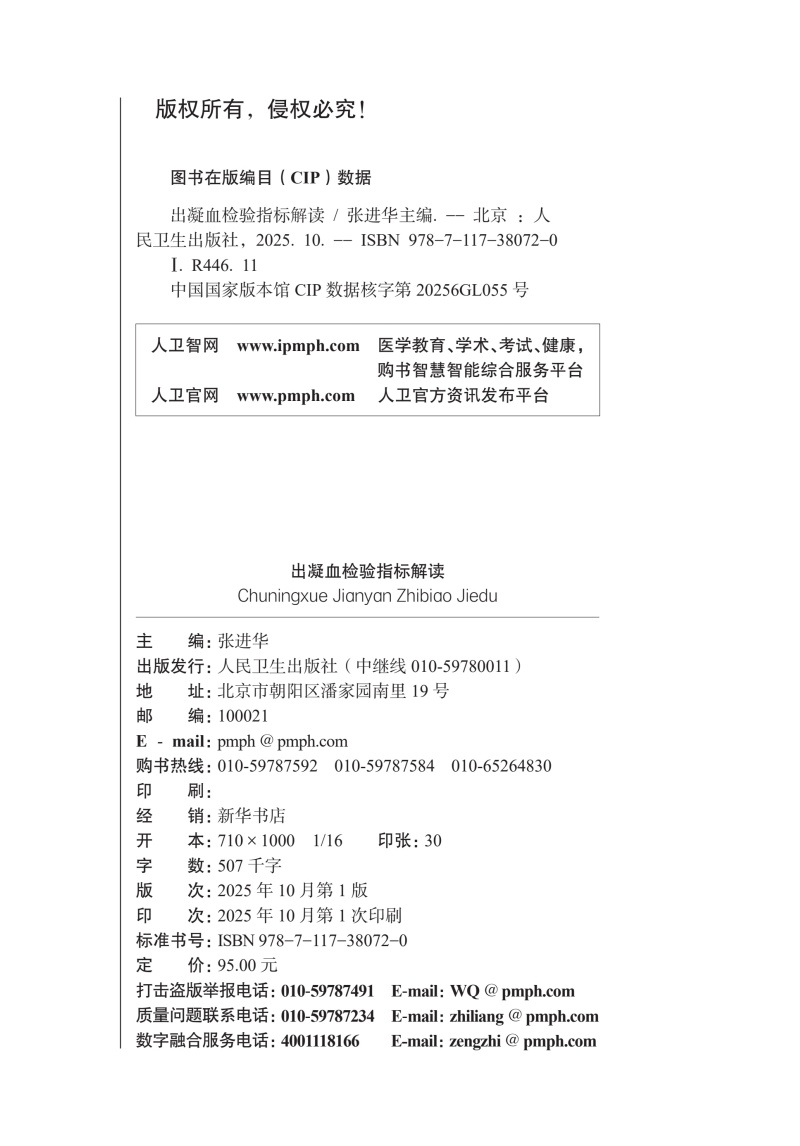 出凝血检验指标解读 张进华 主编 系统梳理出如何综合利用出凝血指标来协助临床诊疗 西医 药学 9787117380720 人民卫生出版社