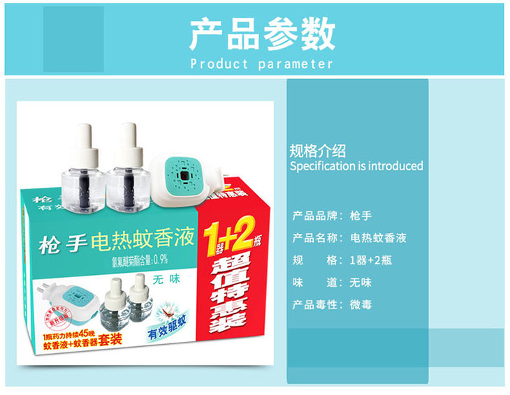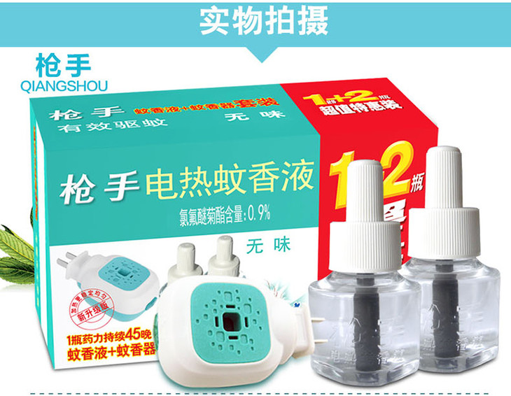 【枪手】电热蚊香液1加热器+2瓶液套装 无味儿童灭蚊药水驱蚊酒店防蚊
