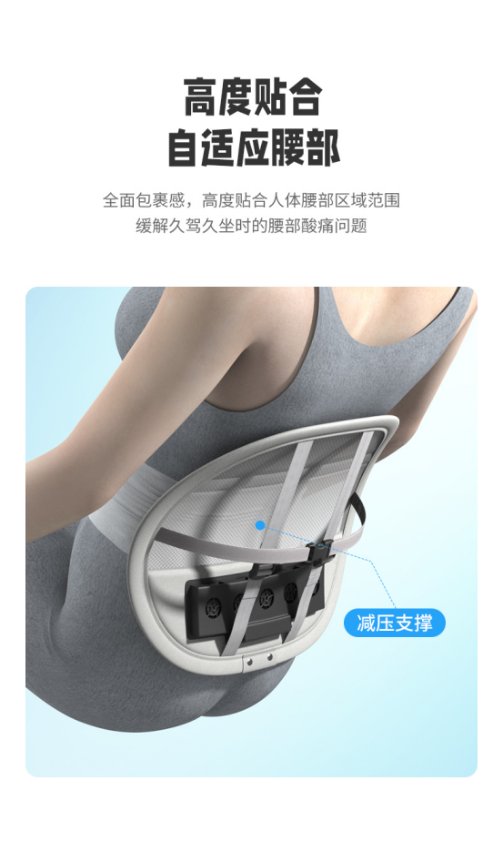减压支撑更能稳稳撑住大家的腰部,给腰部提供全面包裹感~ 腰部从此再也不悬空,久驾久坐时的腰部酸痛问题也统统消失不见了!