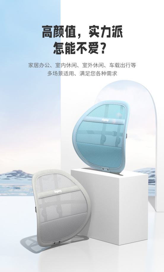 双层镂空冰丝网覆盖表面,柔化风力,让轻柔的凉风拂过背部的每一寸肌肤