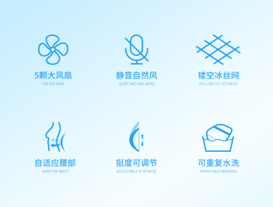 背部隐藏式风扇,风力大、风量足、风面广,给你五倍凉爽,炎热的夏天再也不热了~