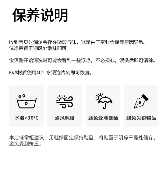 EVA防水外壳,防溅水, 适宜多场景穿搭~ EVA材质贴合鞋身, 不易变形,长久使用仍具质感 可拆卸内里,方便清洗晾晒,适配多鞋型属性, 一壳多搭,解锁鞋柜风格新篇 为鞋款注入个性灵魂~